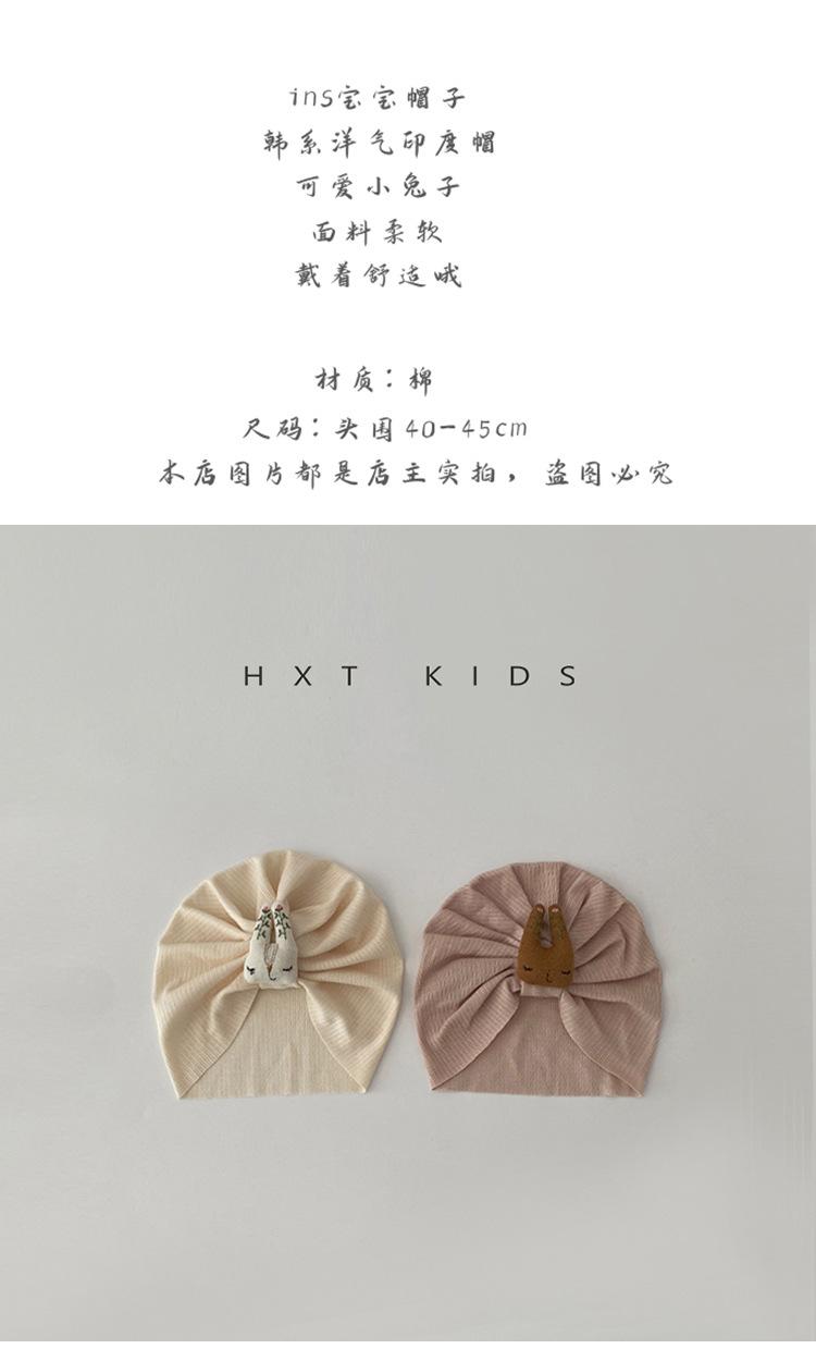 Gorro indio para bebé, de verano, fino y bonito, con diseño de conejo, gorro fetal para bebé, estilo extranjero, gorro de salmuera.