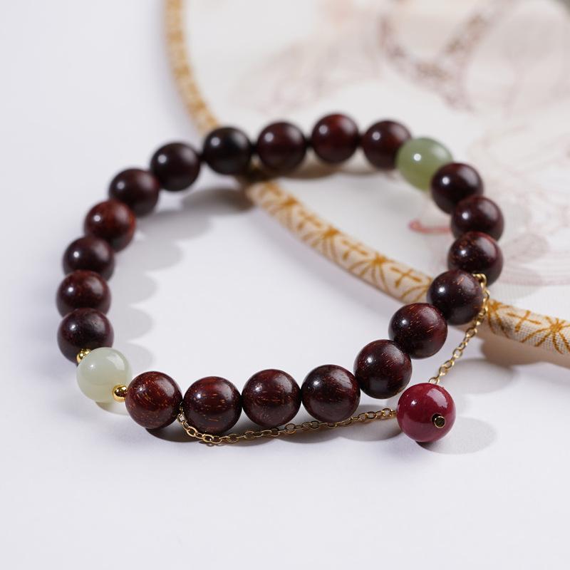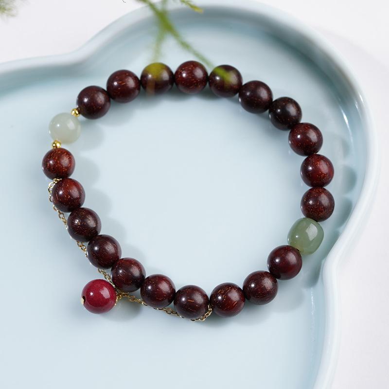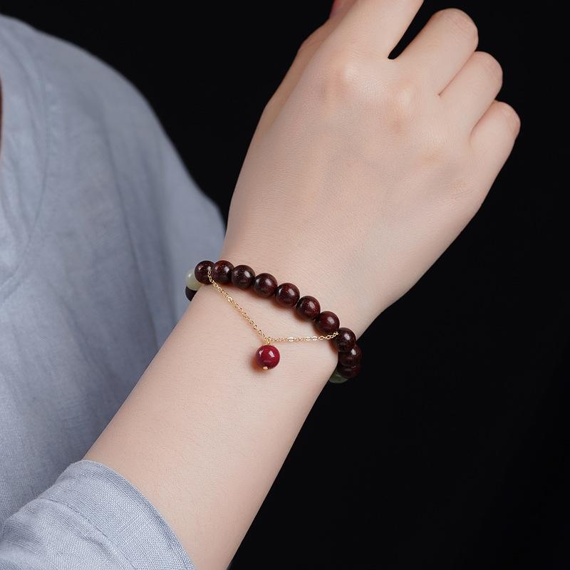 Compra Pulsera de un círculo de Sándalo Rojo Natural con Cuentas Antiguas de Jade Hetian Cuentas Redondas de Jade Blanco para Niñas Pulsera de Moda y Atmosférica al por mayor en Joom.pro