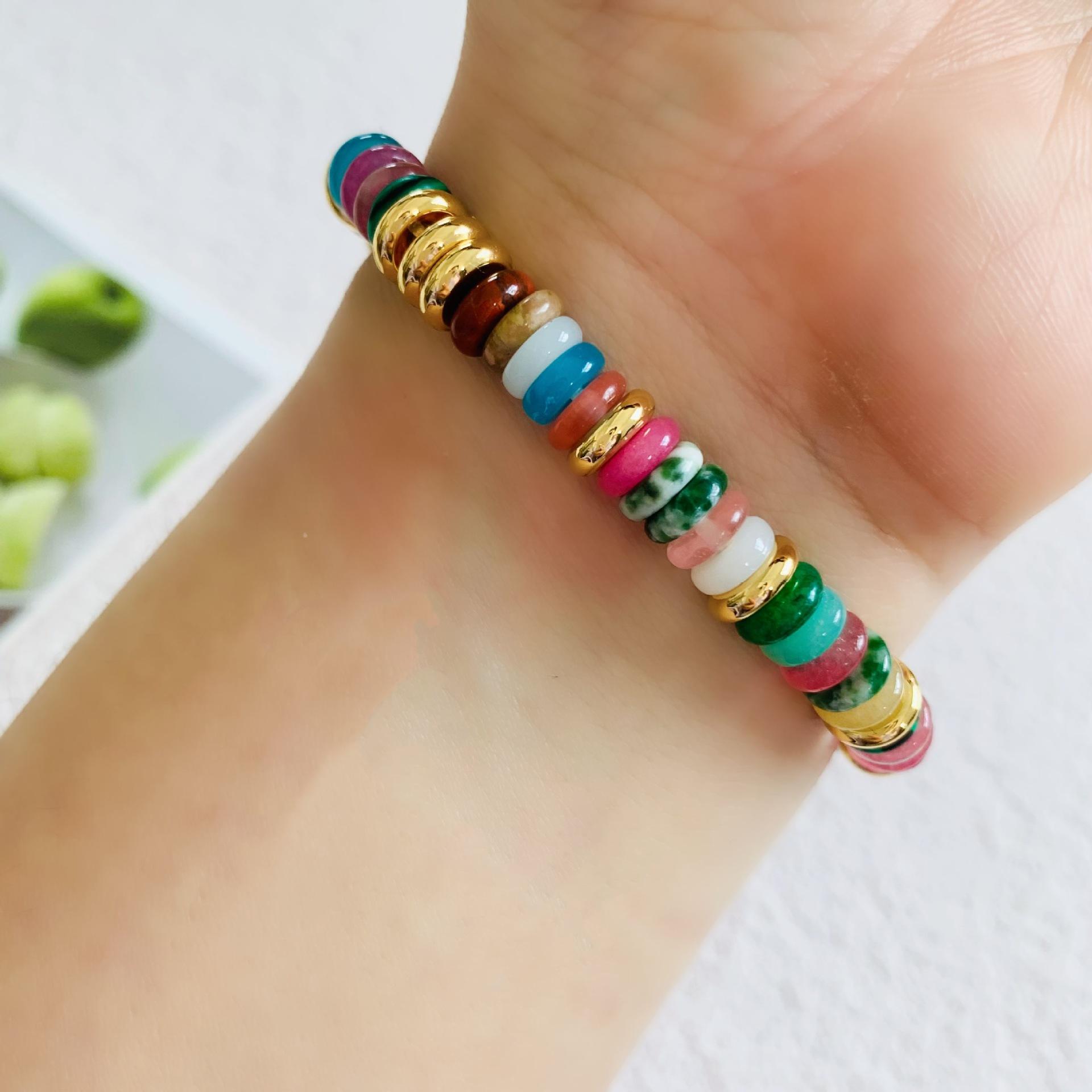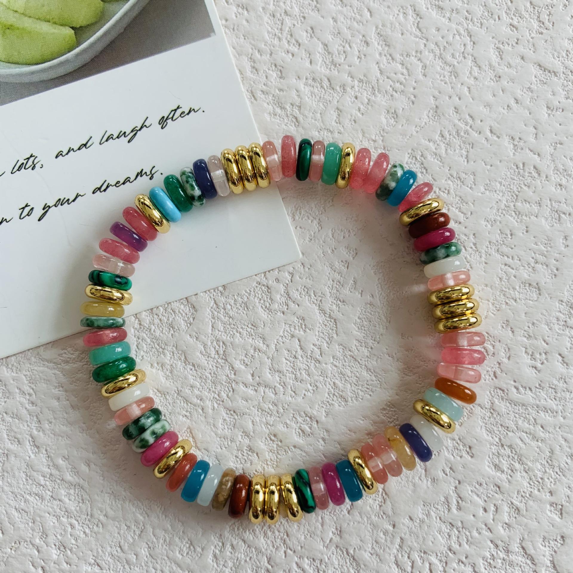 Pulsera de Piedras Coloridas para Mujer, Diseño Nicho de Lujo Ligero, Pulsera de Joyería Retro de Color Mixto, Accesorios de Joyería Nicho de Alta Gama