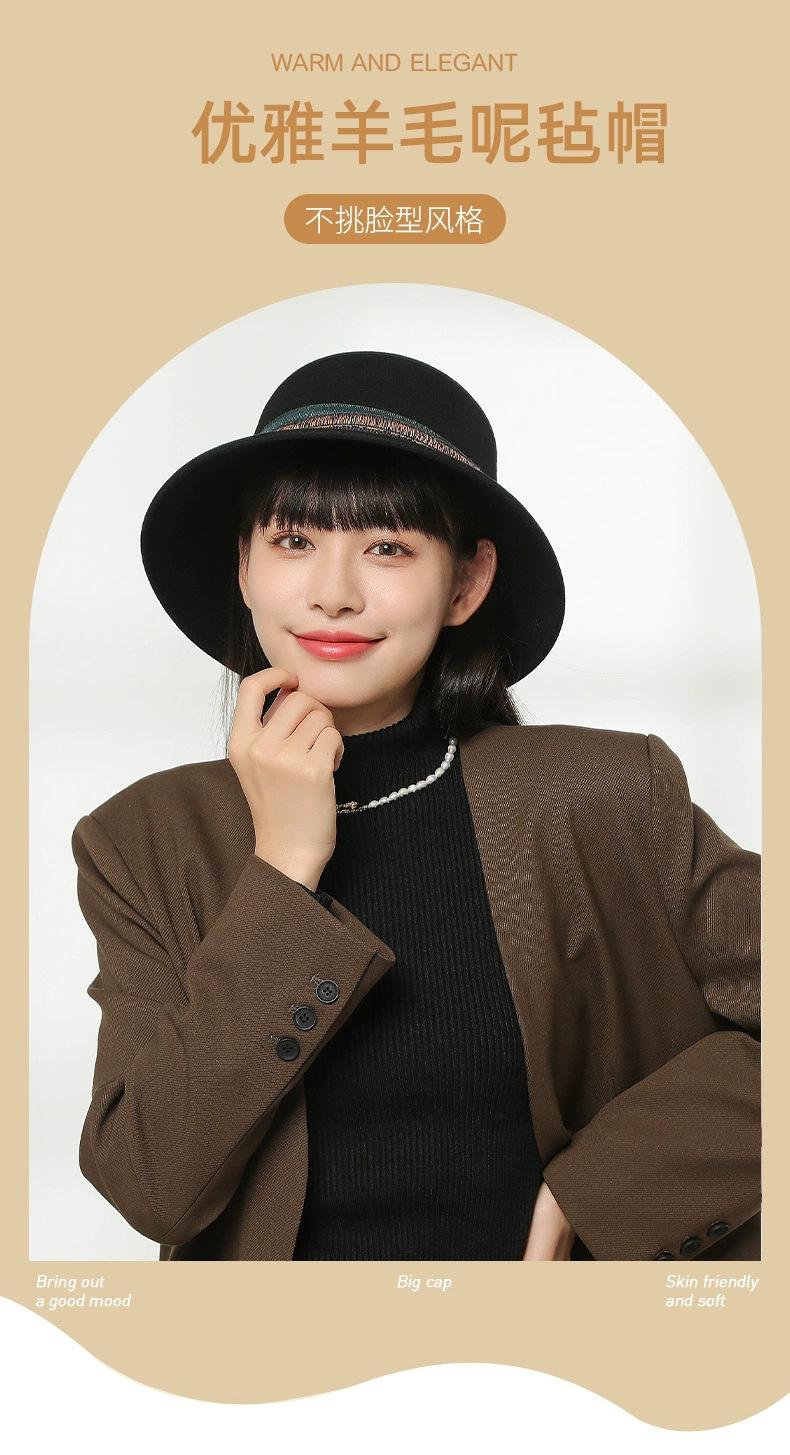 Sombrero de lavabo de estilo británico para otoño e invierno, elegante sombrero bombín de fieltro de lana, moda femenina, estilo coreano, combina con todo, sombrero de jazz, venta al por mayor