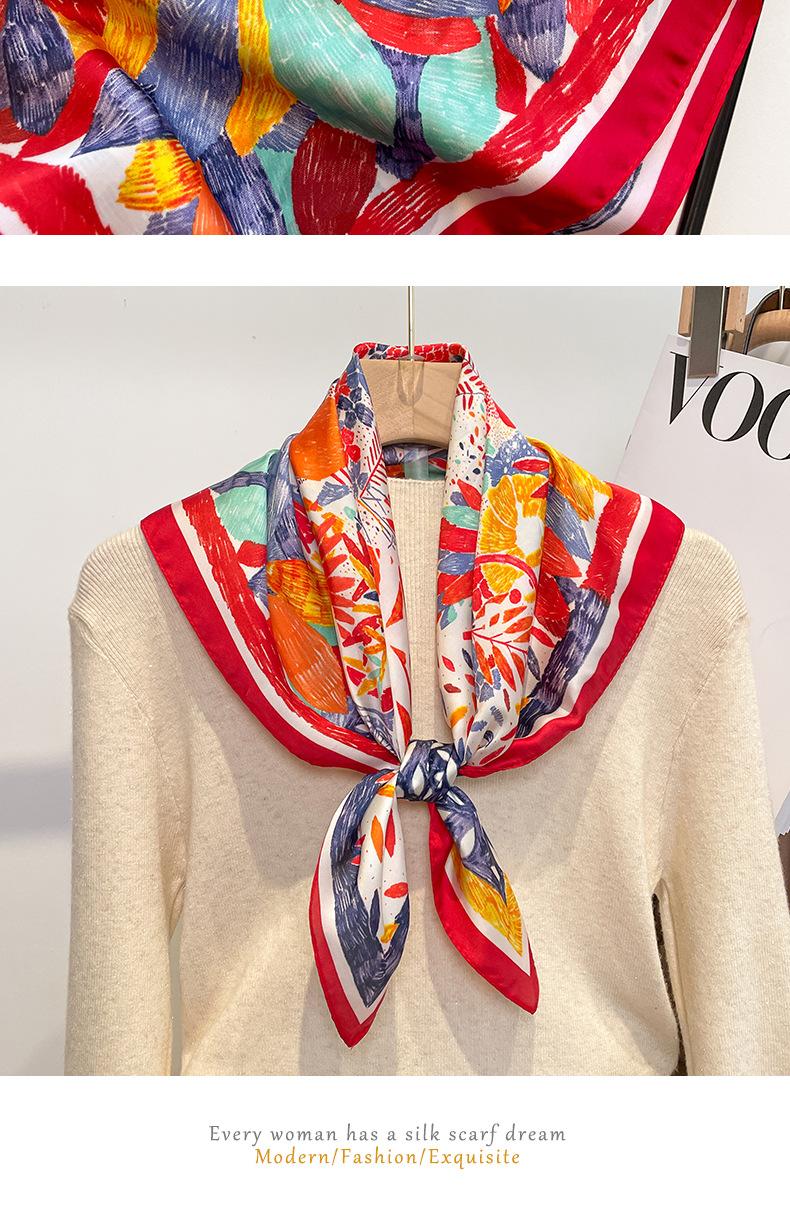 Pañuelo cuadrado pequeño retro francés de celebridades de Internet para mujer, bufanda de protección solar de verano combinable, chal playero con sombrilla para la playa.