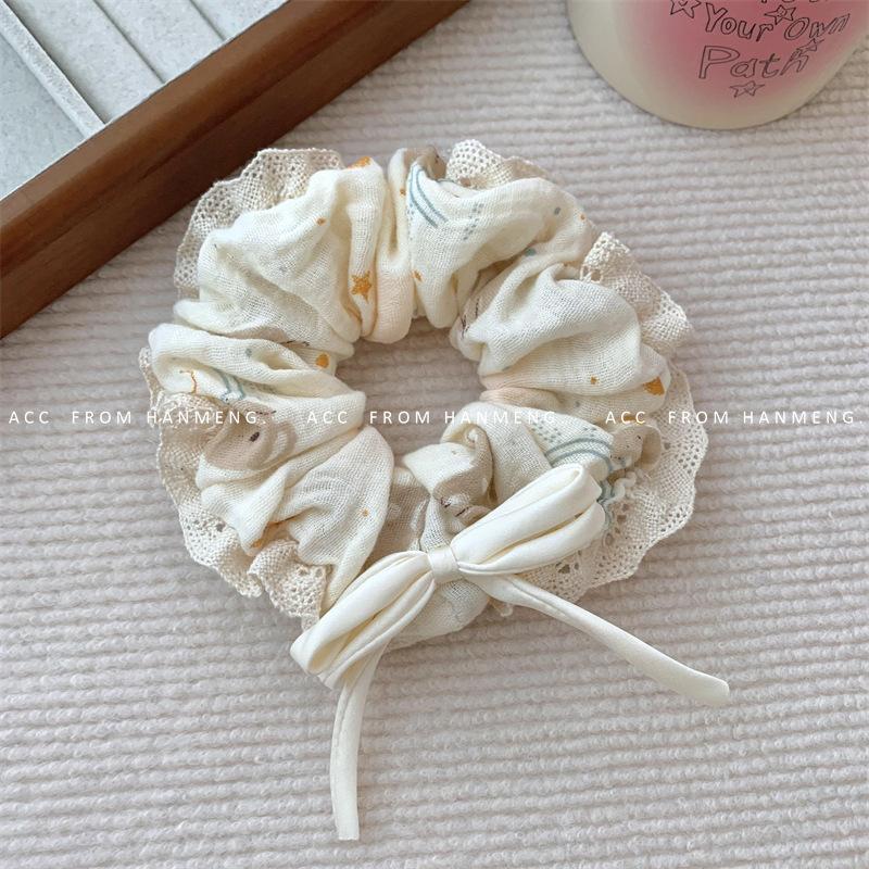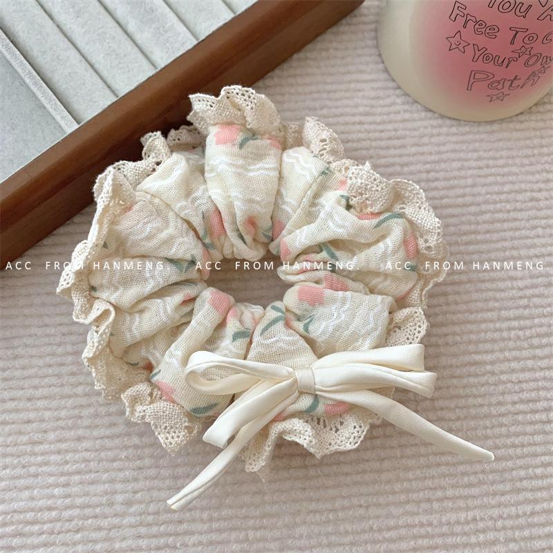 Rice White Tulip Flower Bow Hair Rings, Rice White Bow Hair Ring