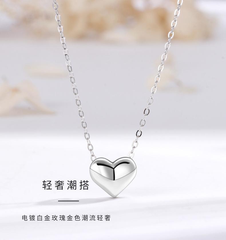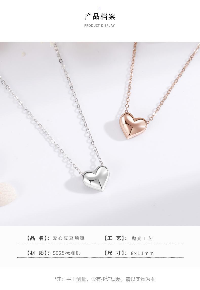 Collar de plata de ley S925 con diseño de frijol Love Love Love para mujer, con colgante de frijol de oro rosa y diseño de nicho, cadena para clavícula.