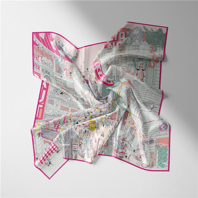 Bufanda de seda de sarga para el Día de la Madre, bufanda de primavera, bufanda cuadrada vintage francesa, bufanda para mujer, chal protector solar de verano