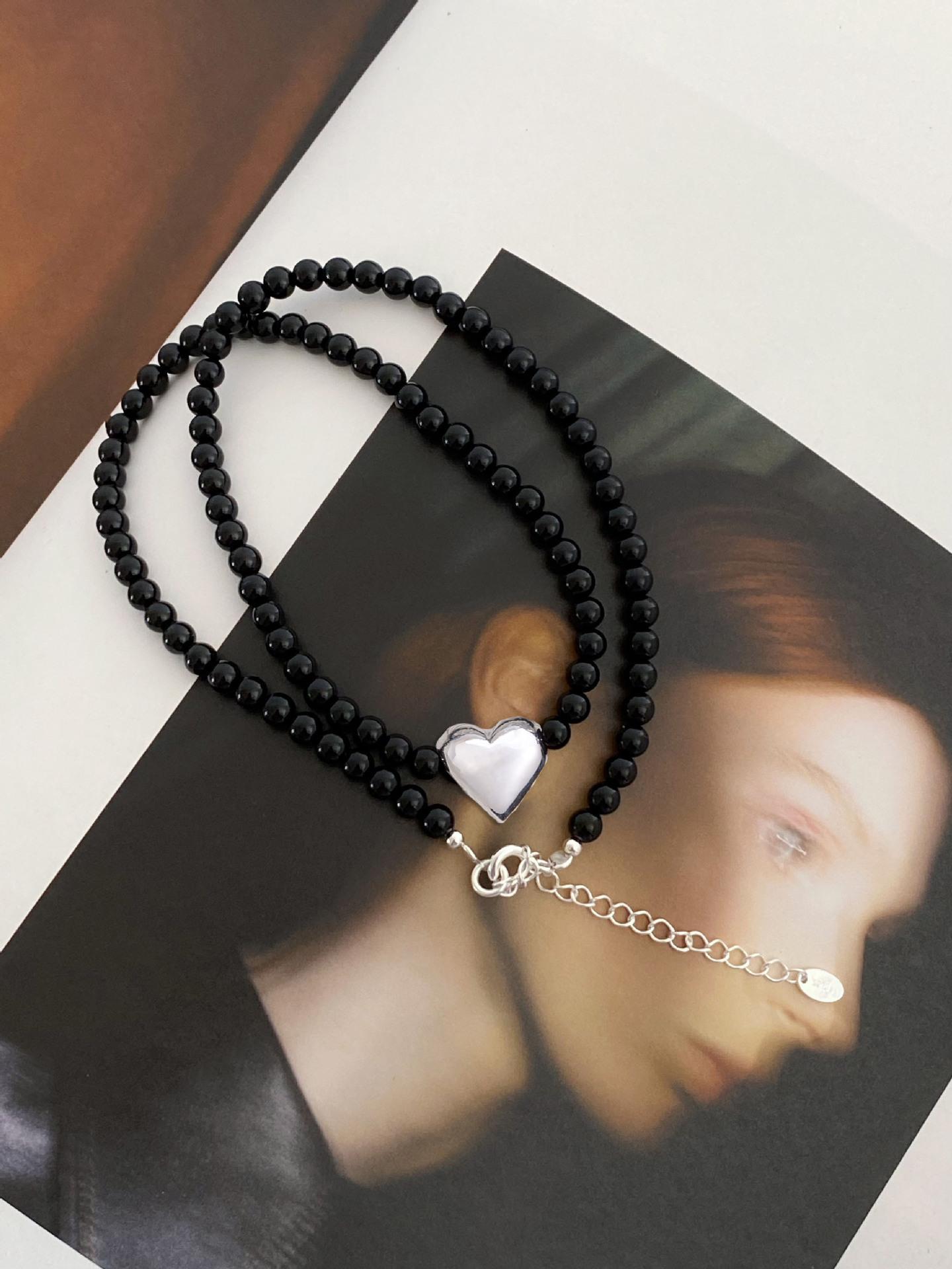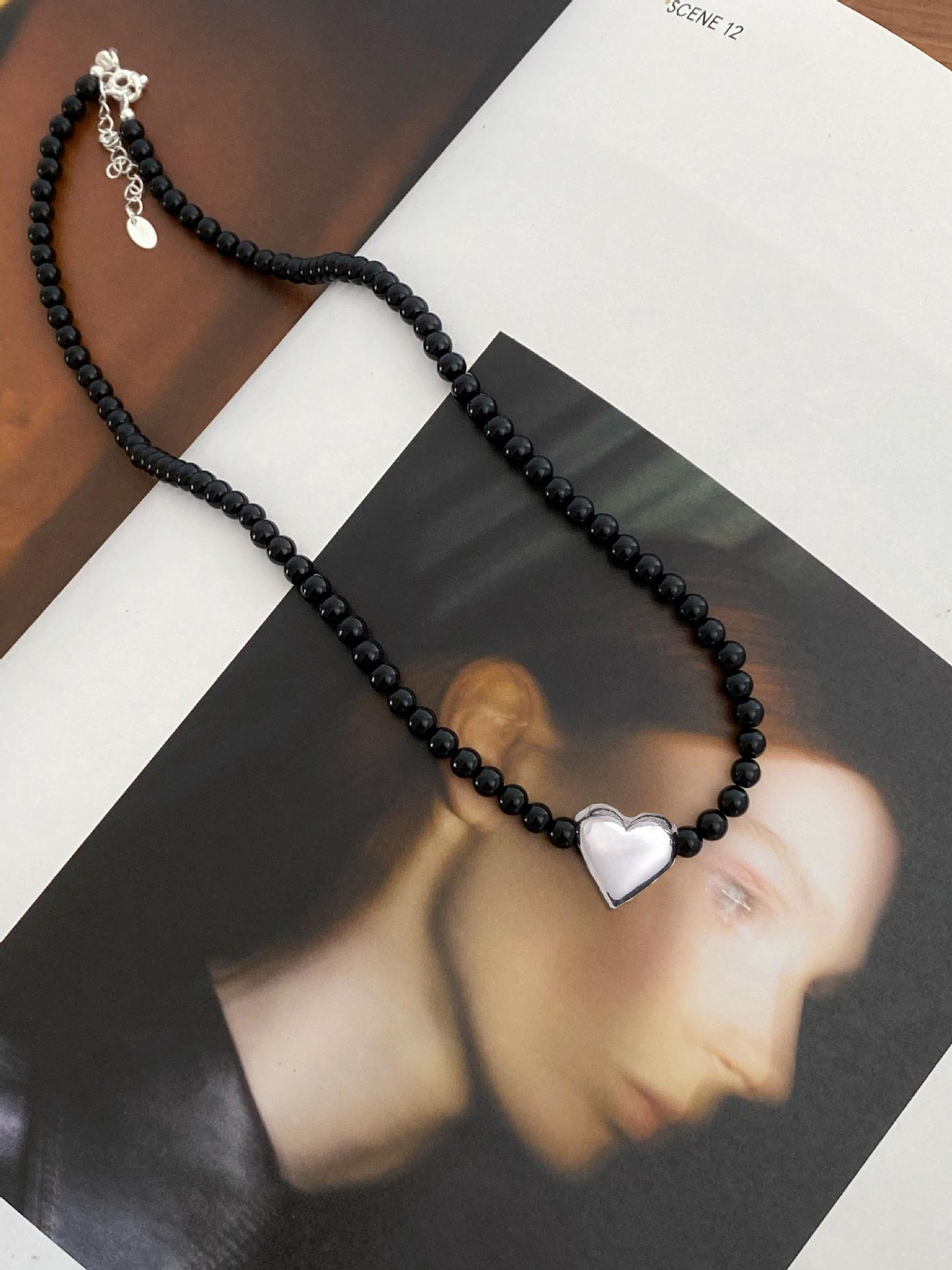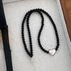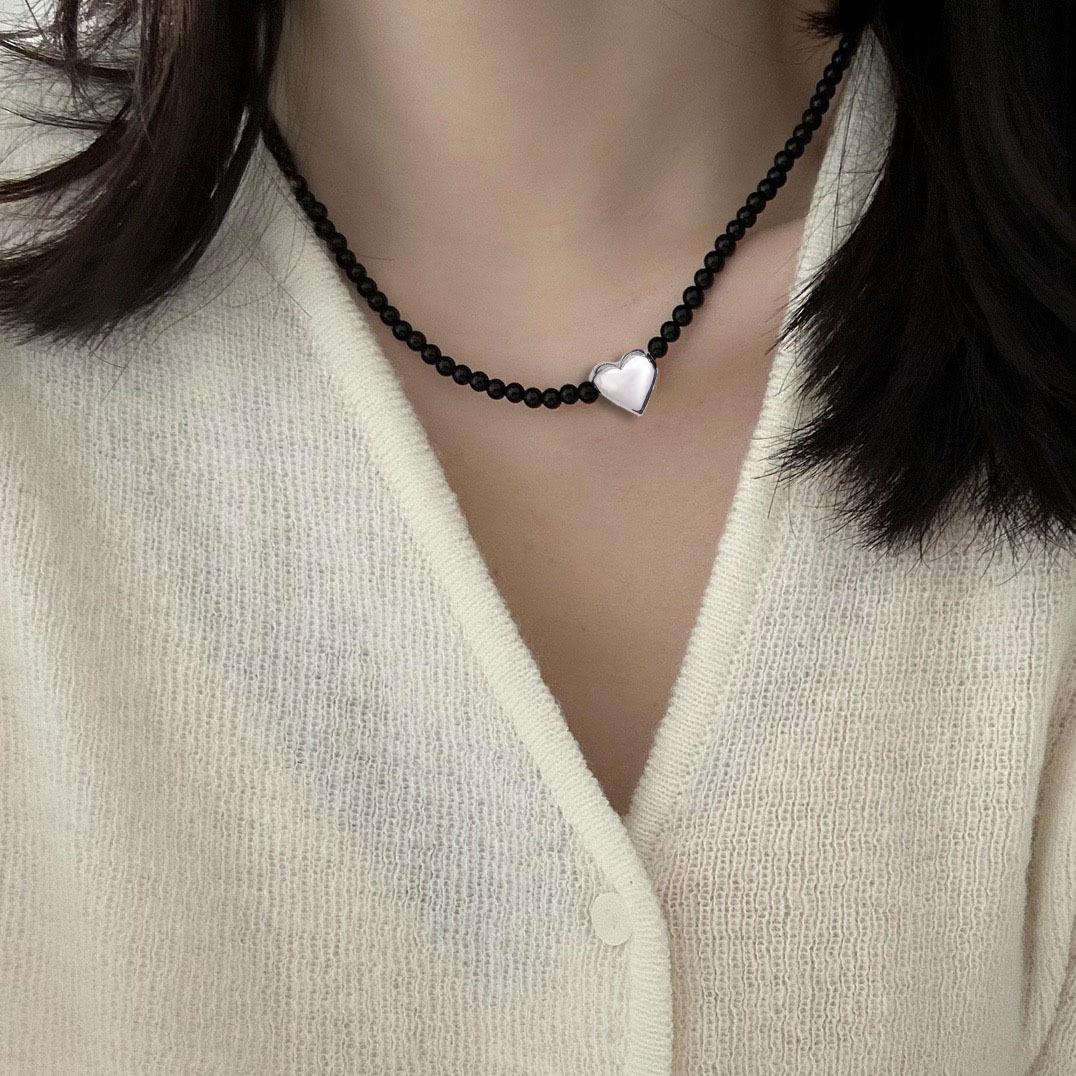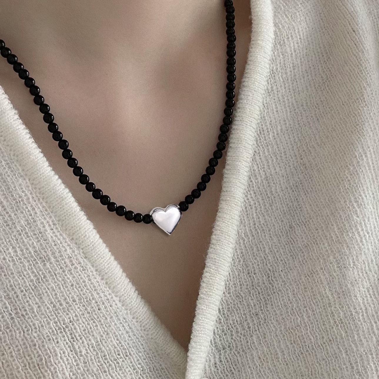 Collar de corazón de ágata negra en plata esterlina s925, accesorios de alta calidad, diseño de nicho, cadena de clavícula, collar de corazón de melocotón dulce y fresco.