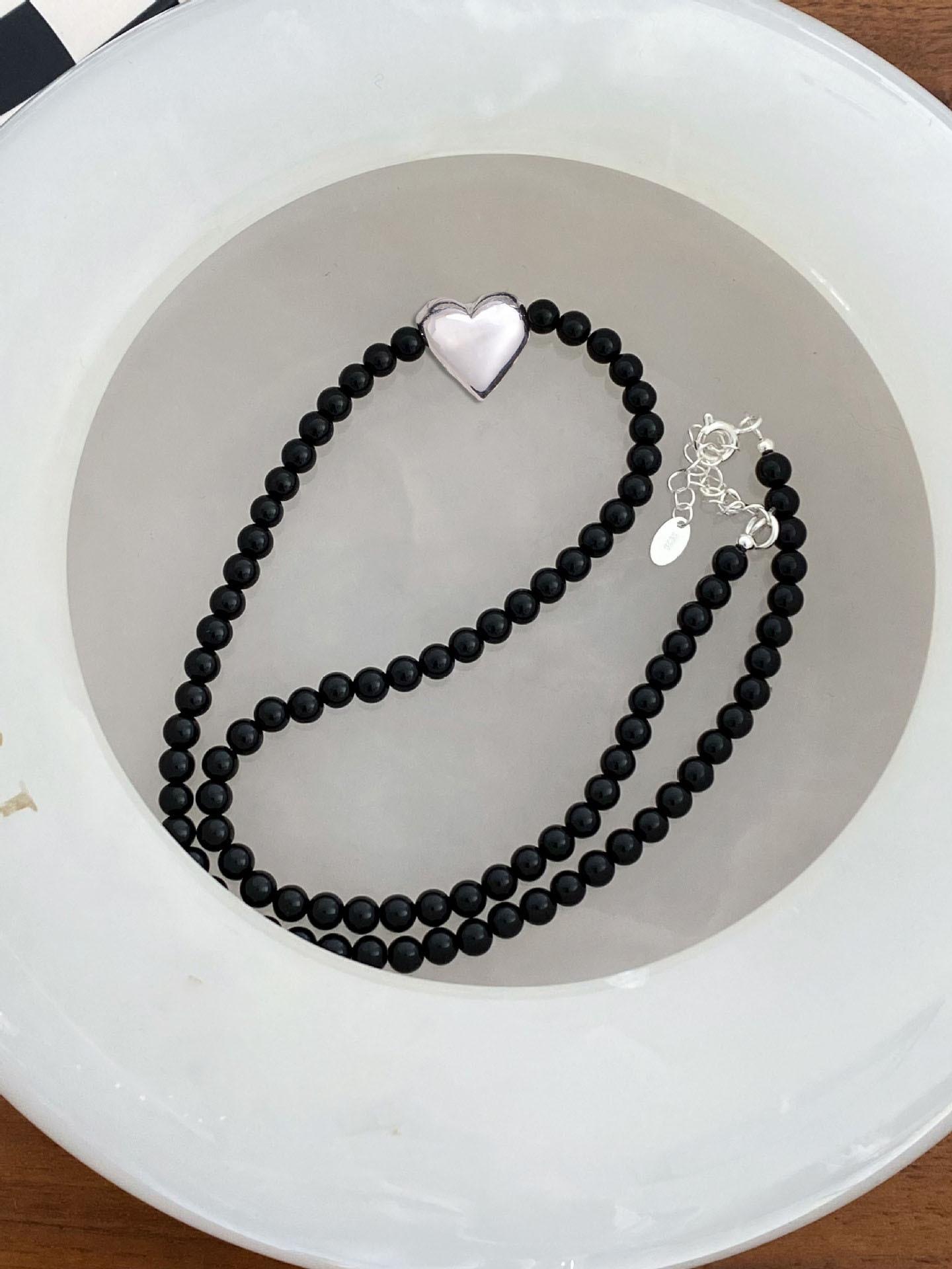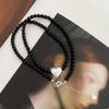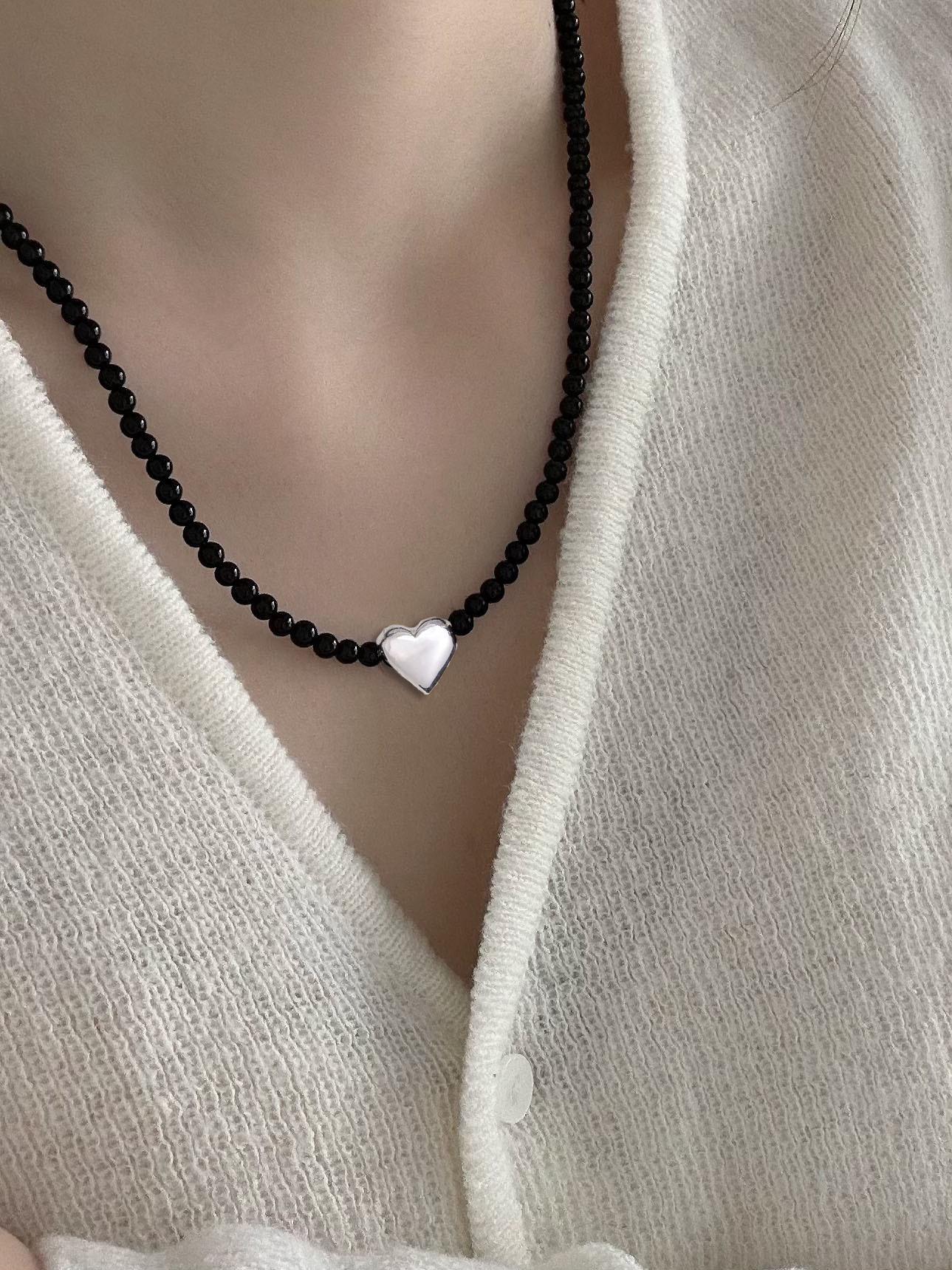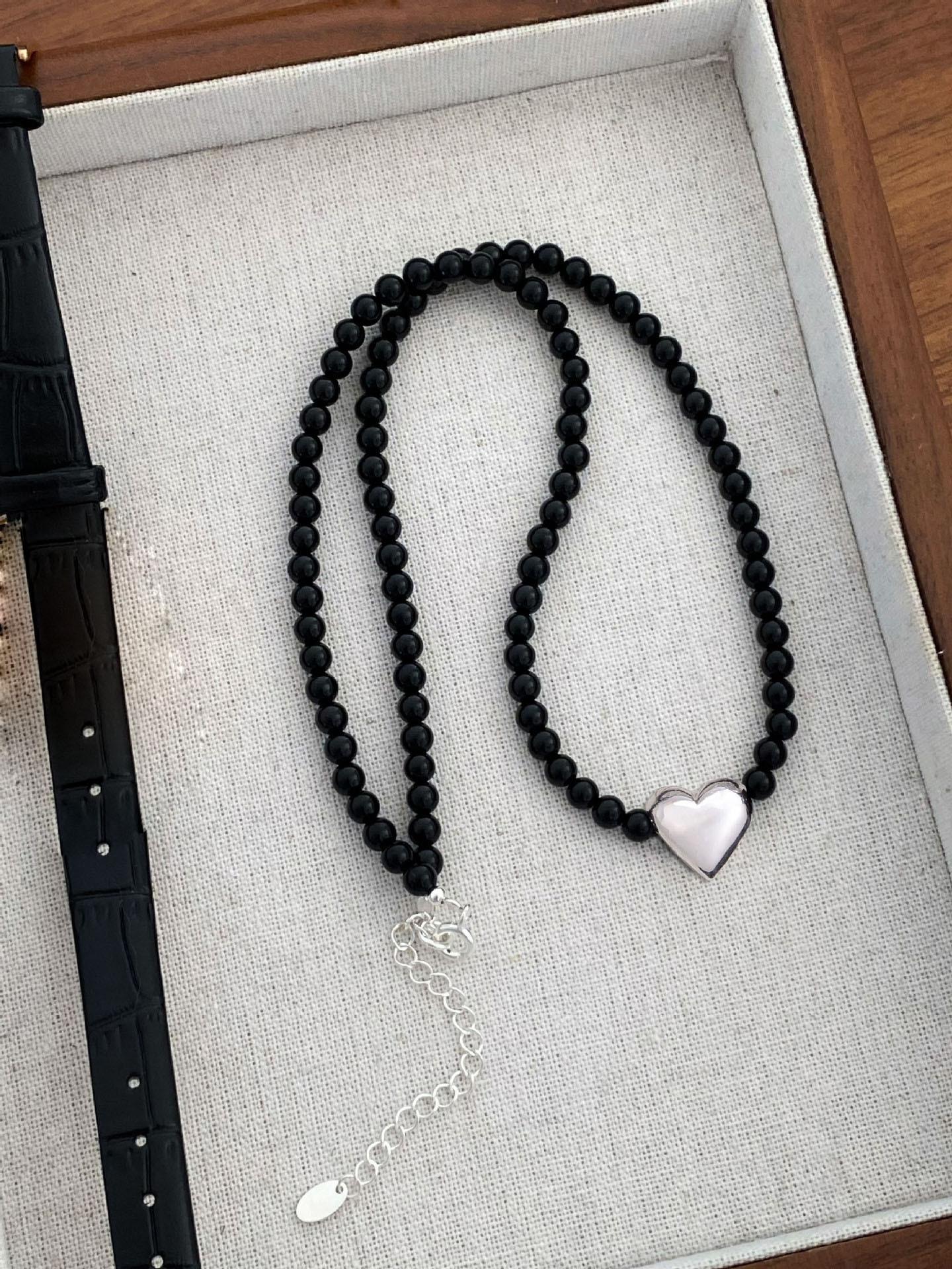 Collar de corazón de ágata negra en plata esterlina s925, accesorios de alta calidad, diseño de nicho, cadena de clavícula, collar de corazón de melocotón dulce y fresco.