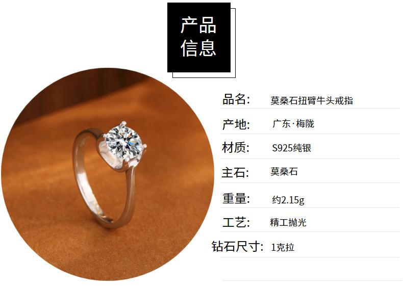 Anillo de Moissanita S925 Plata Esterlina Quilate Twist Niutou para Mujer Europeo y Americano Lujo Ligero Alta Gama Anillo de la Muerte para Anillo de Bodas