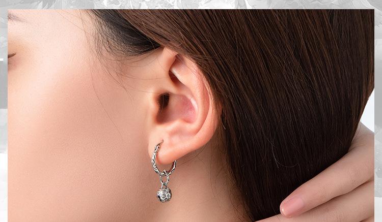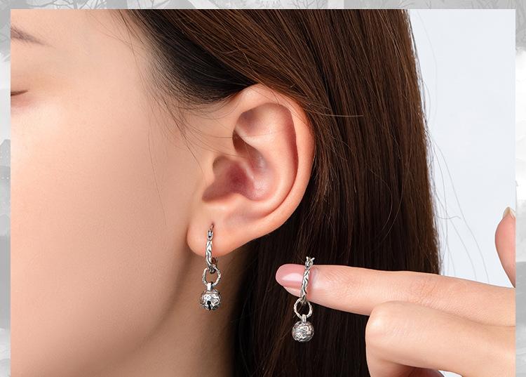 Pendientes de rayas de plata S925, pendientes de campana antiguos para hombres y mujeres, pendientes de pareja con personalidad, diseño simple al por mayor