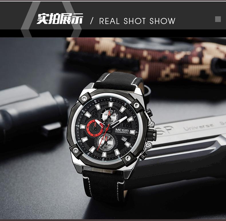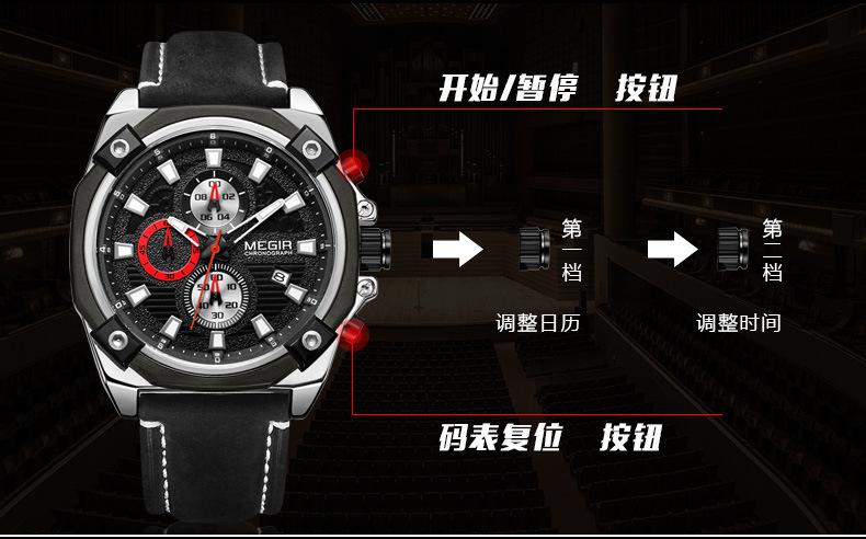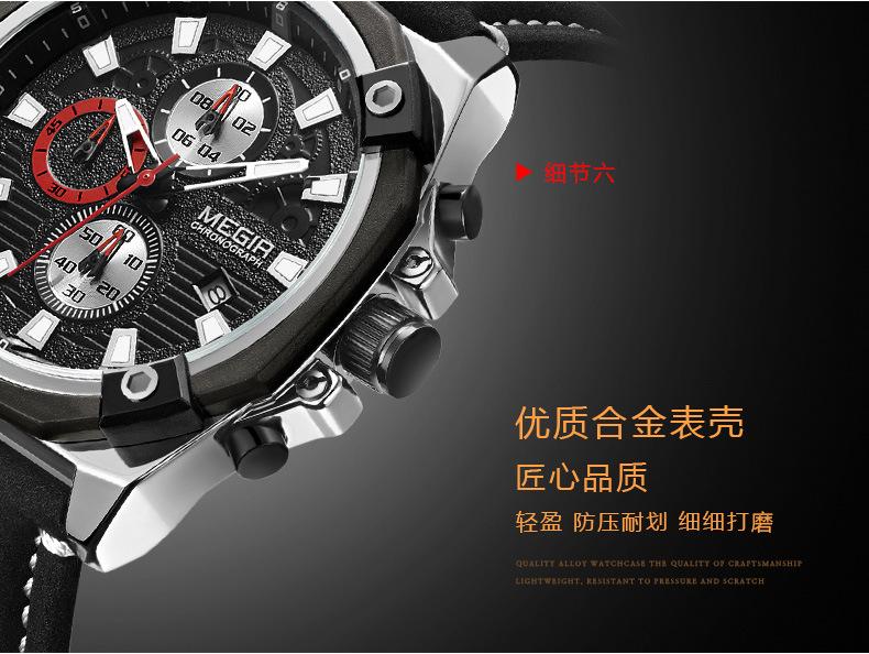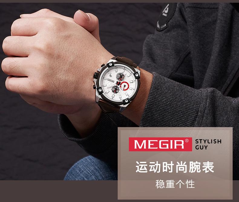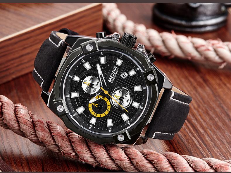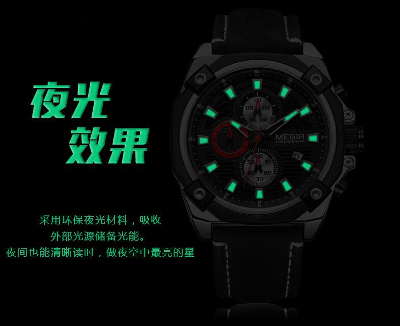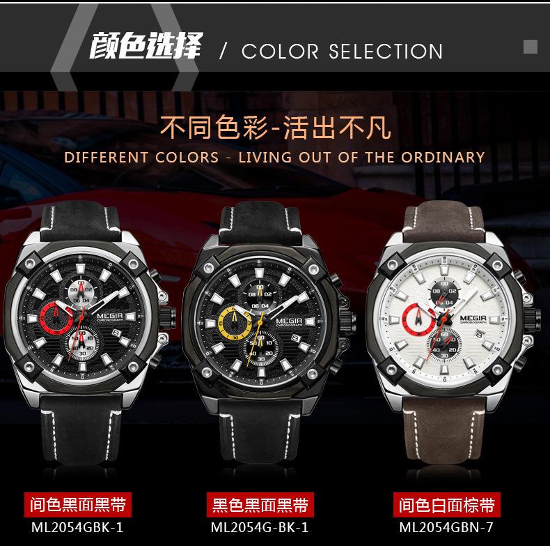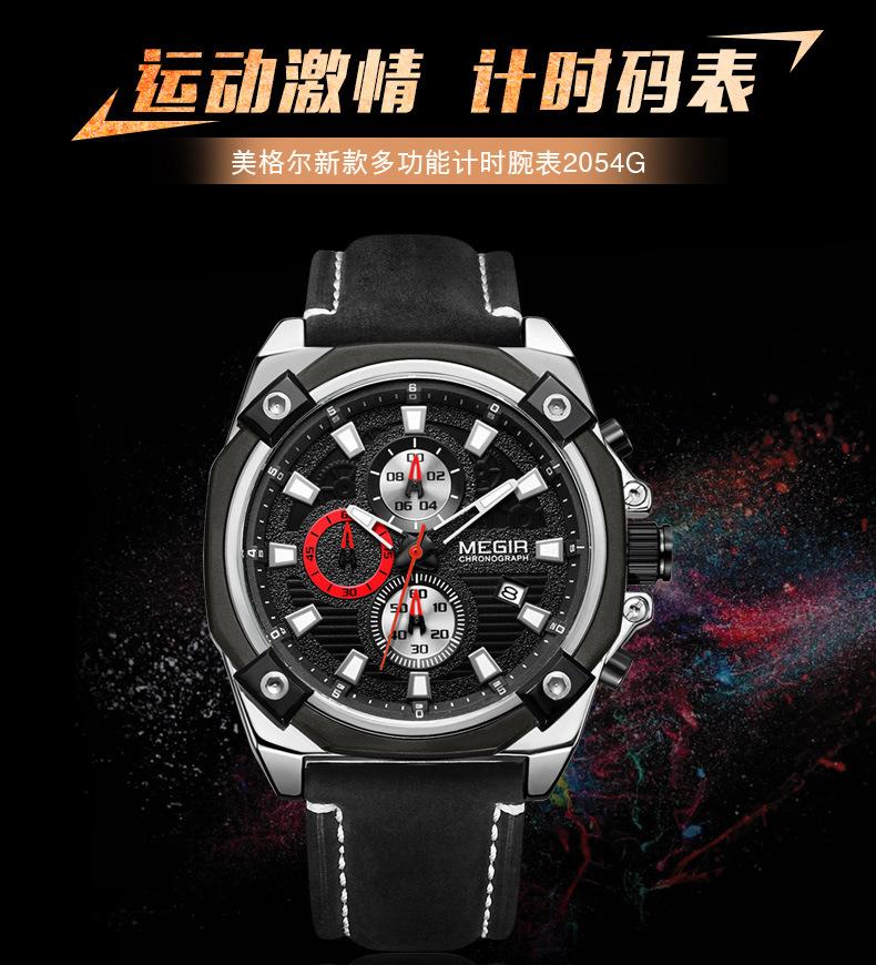 [Nuevo reloj deportivo de cuarzo luminoso, resistente al agua, con calendario y cronógrafo multifuncional para hombre] Modelo: 2054