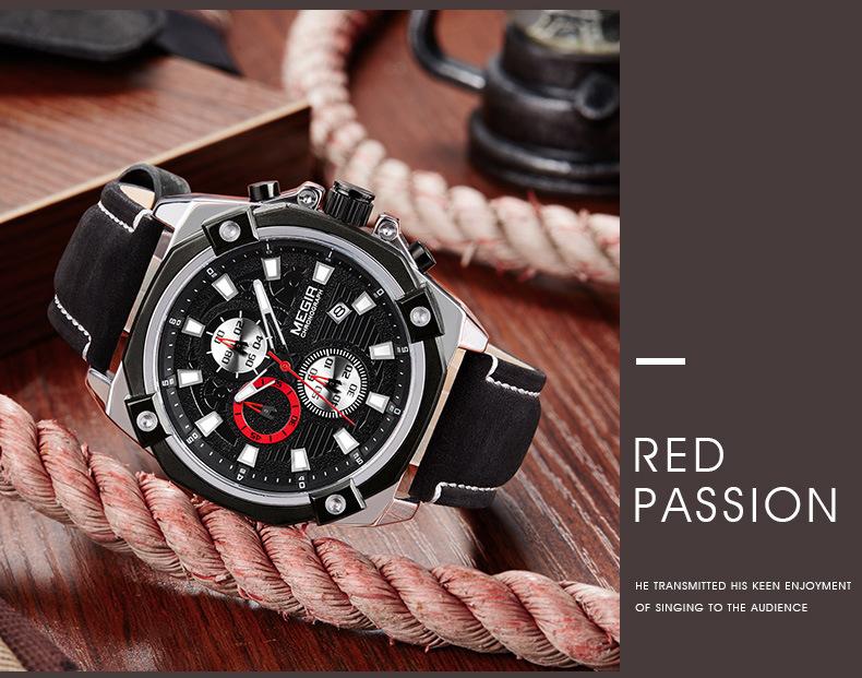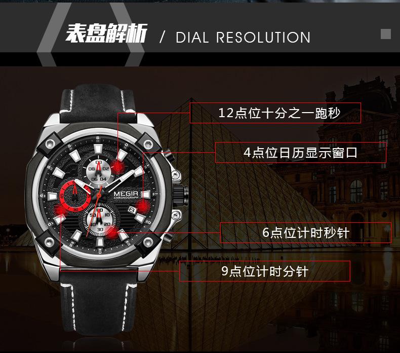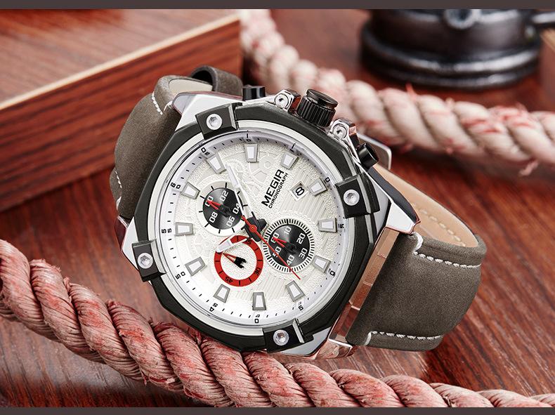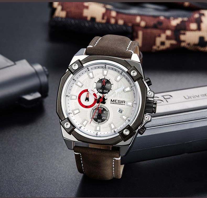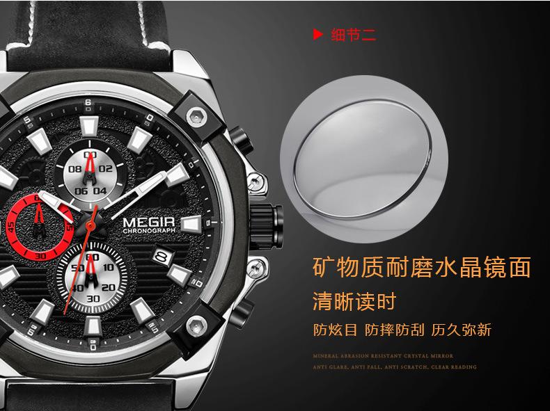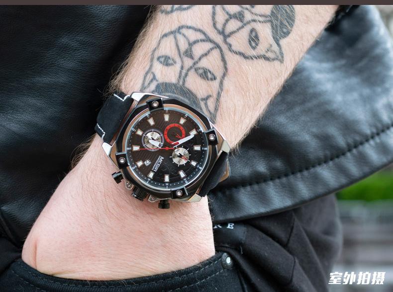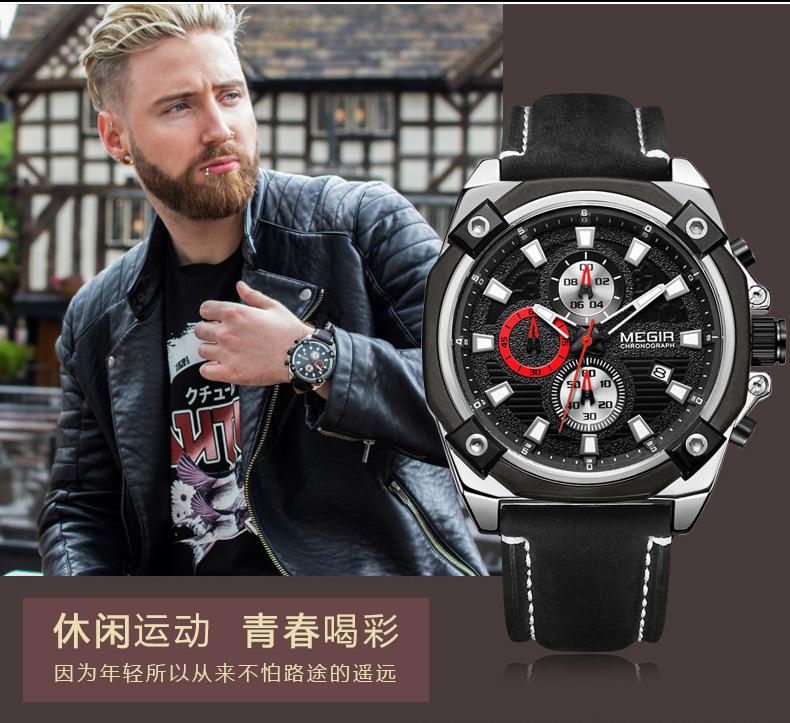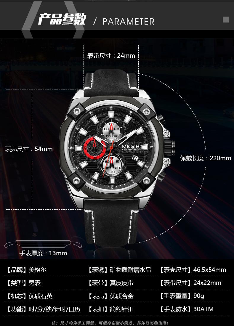 [Nuevo reloj deportivo de cuarzo luminoso, resistente al agua, con calendario y cronógrafo multifuncional para hombre] Modelo: 2054