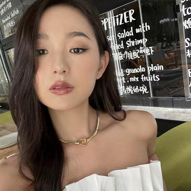 Collar de corazón de acero de titanio popular ins europeo y americano para mujer, nicho de lujo ligero, estilo frío, joyería de personalidad, collar versátil de moda