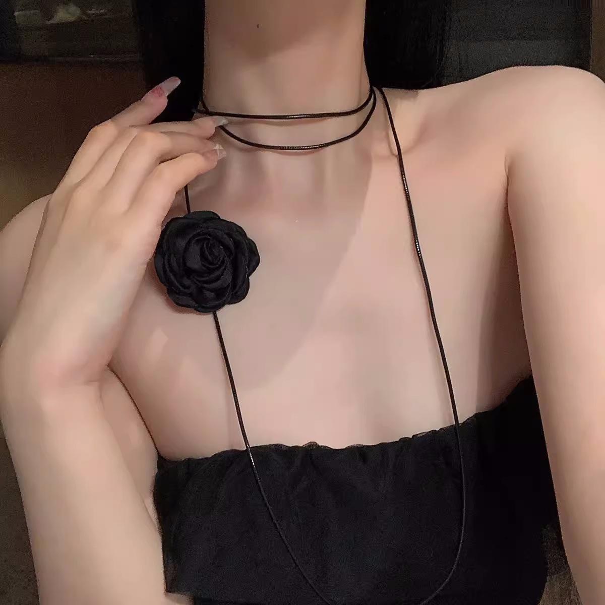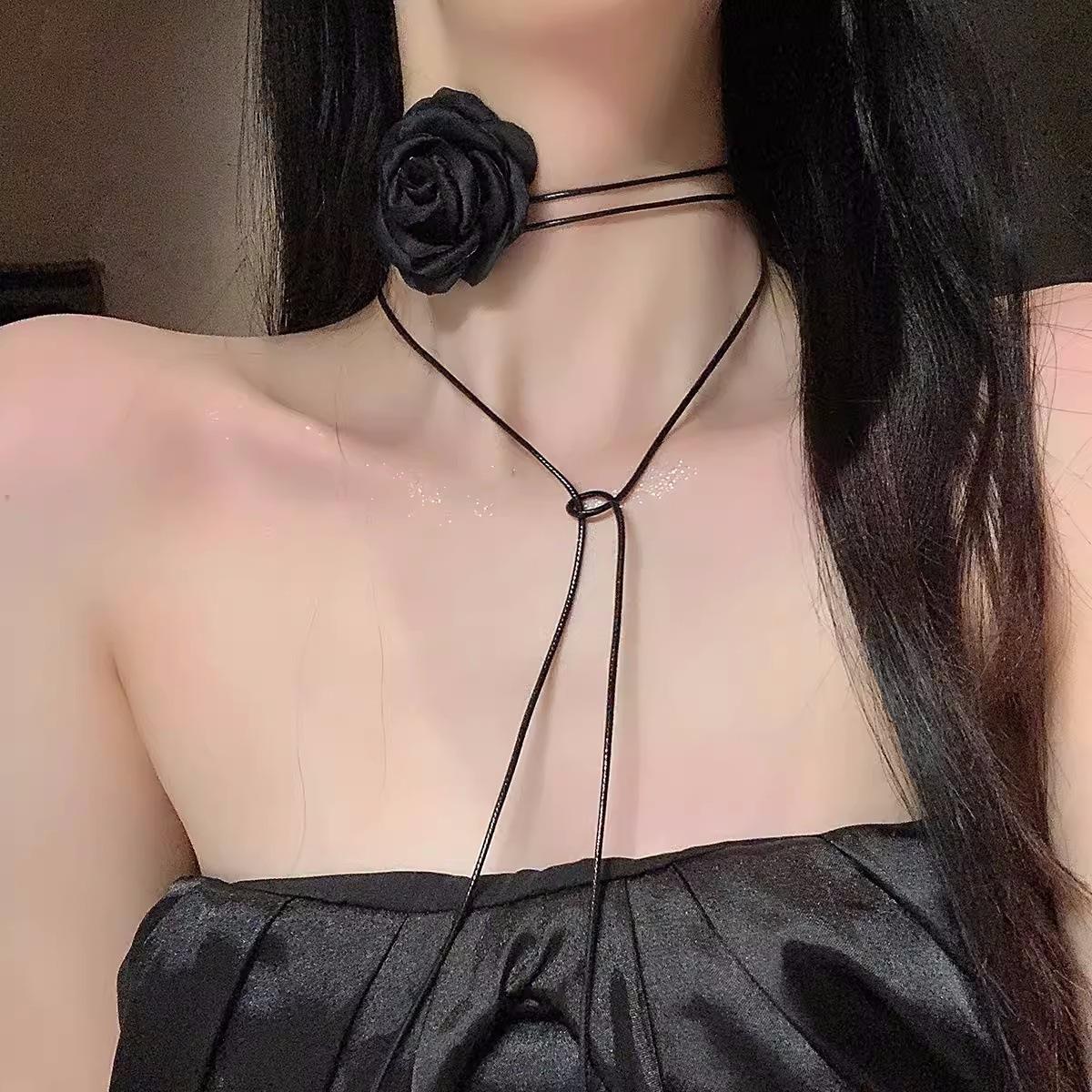 Collar de camelia para mujer, gargantilla de rosa negra, correa para clavícula, cadena de enredadera, accesorios para el cuello, flor