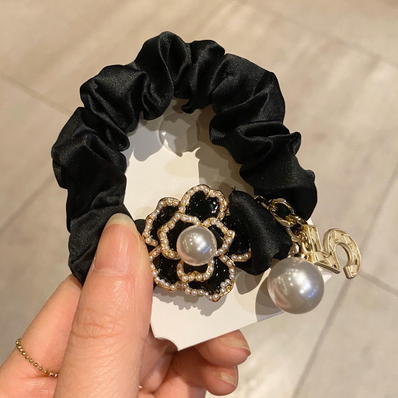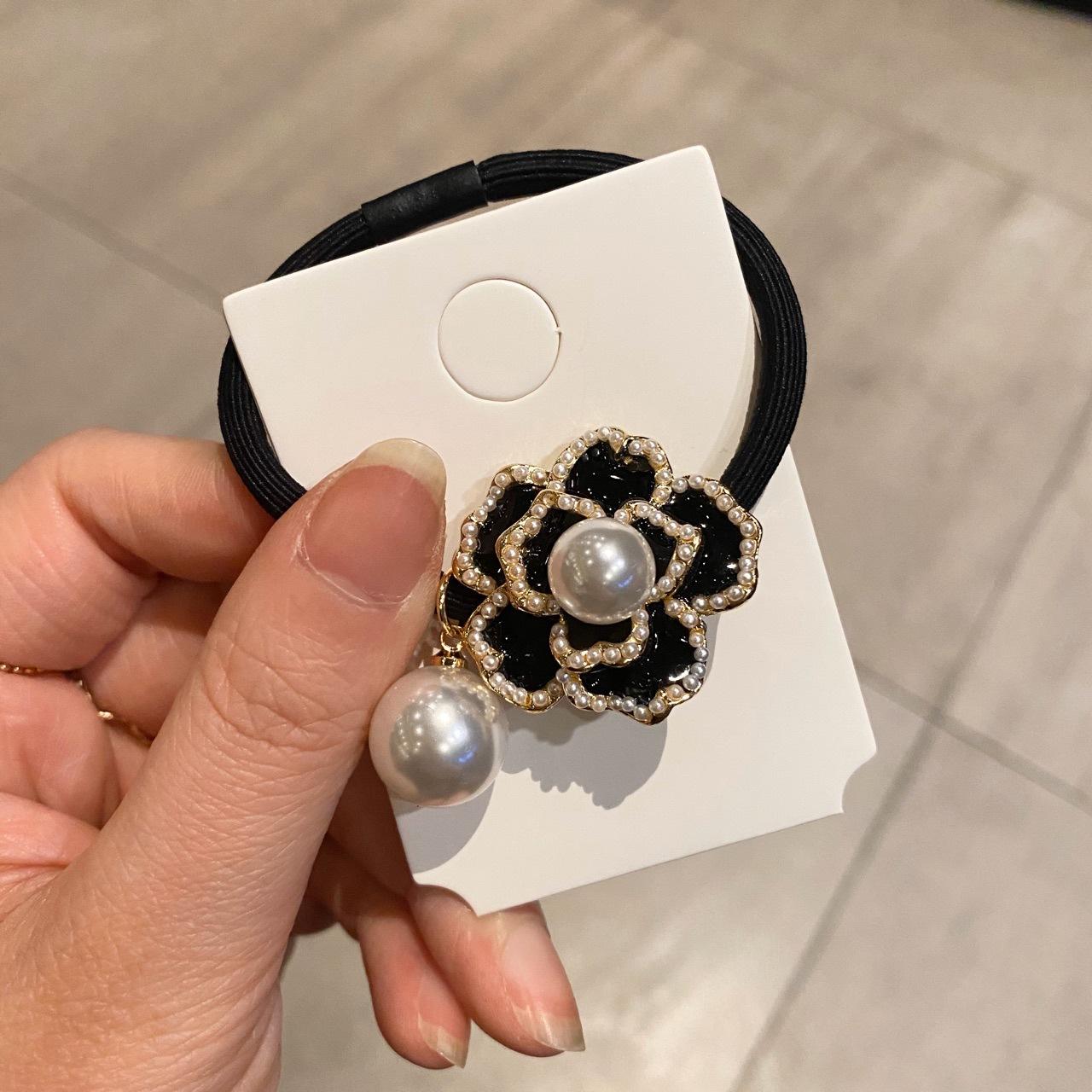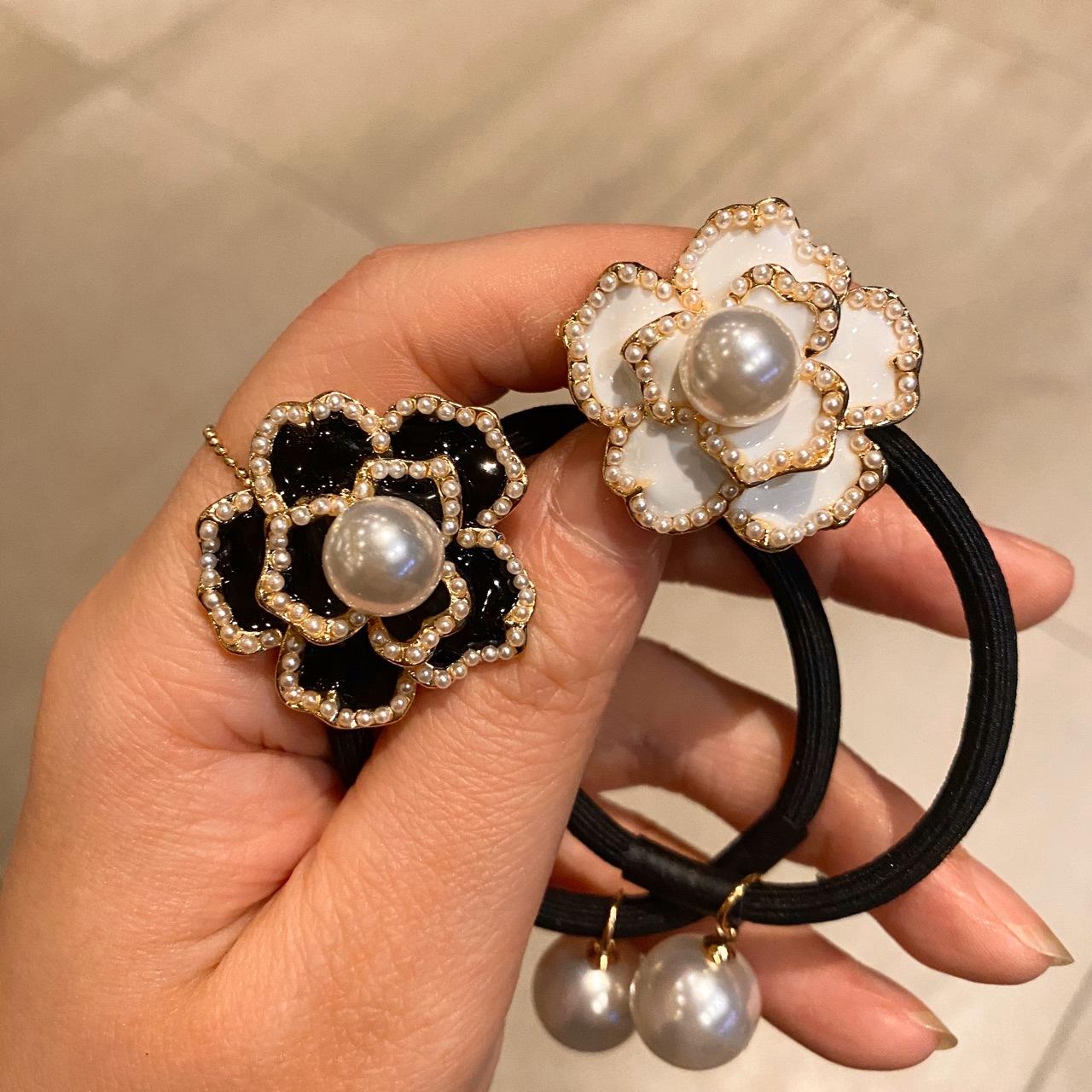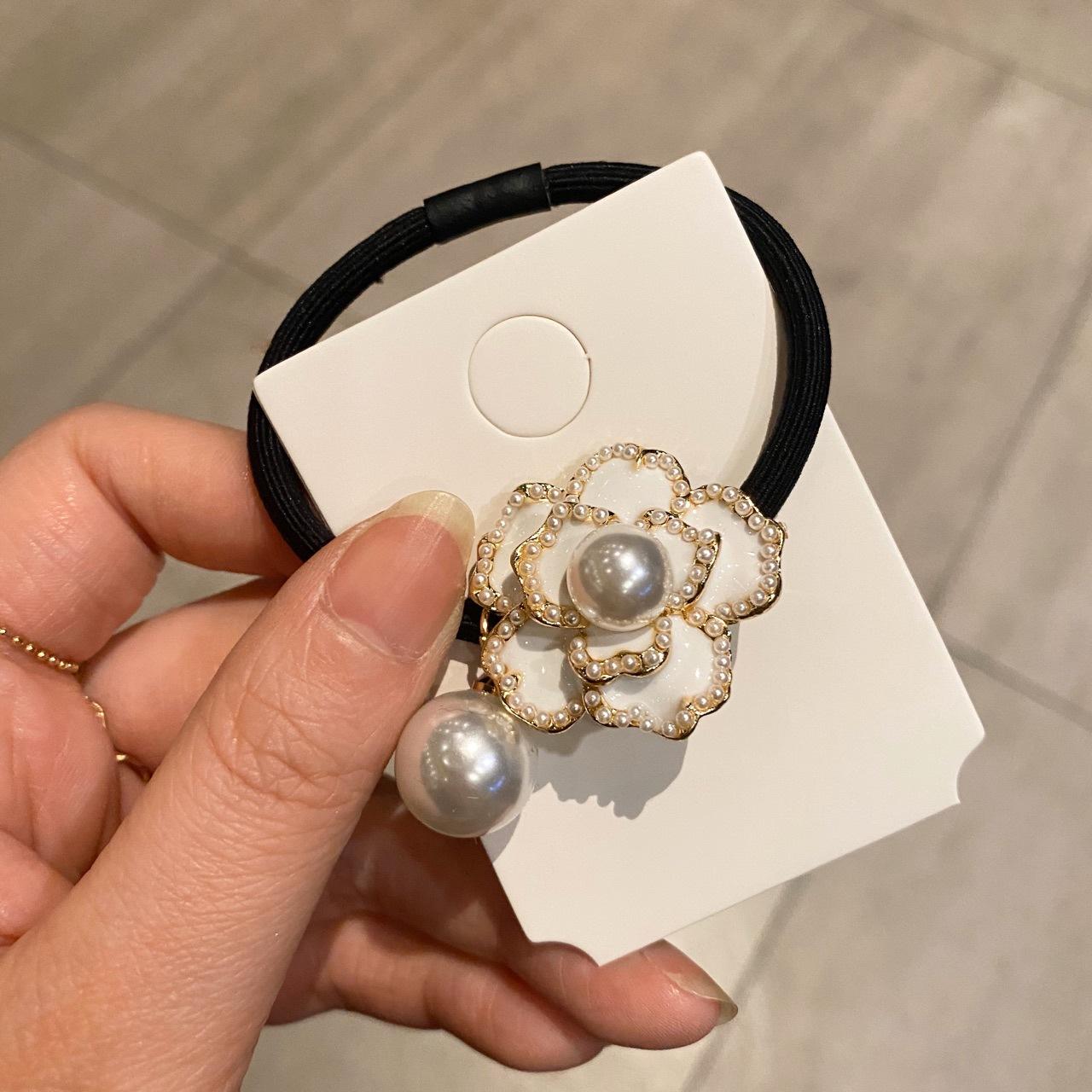 2020 Estilo Coreano Estilo Pequeño Fragante Camelia Perla Anillo para el Cabello Moda Elegante Chica Cuerda para Moño Rojo de Red Mismo Estilo Accesorios para el Cabello