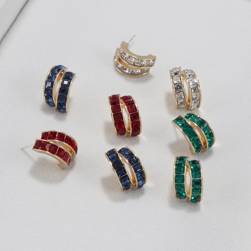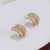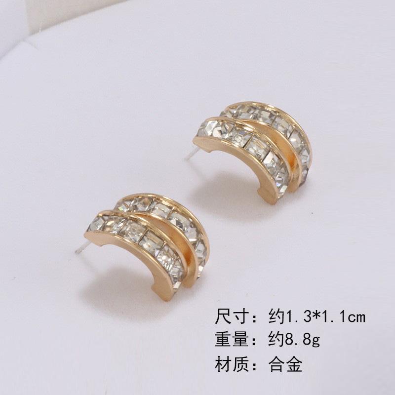 Compra Pendientes de doble capa en forma de C con diseño de nicho de circonita cuadrada y aguja de plata 925, geométricos y huecos, ideales para el verano. al por mayor en Joom.pro