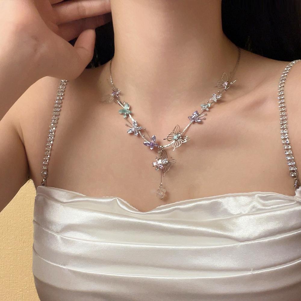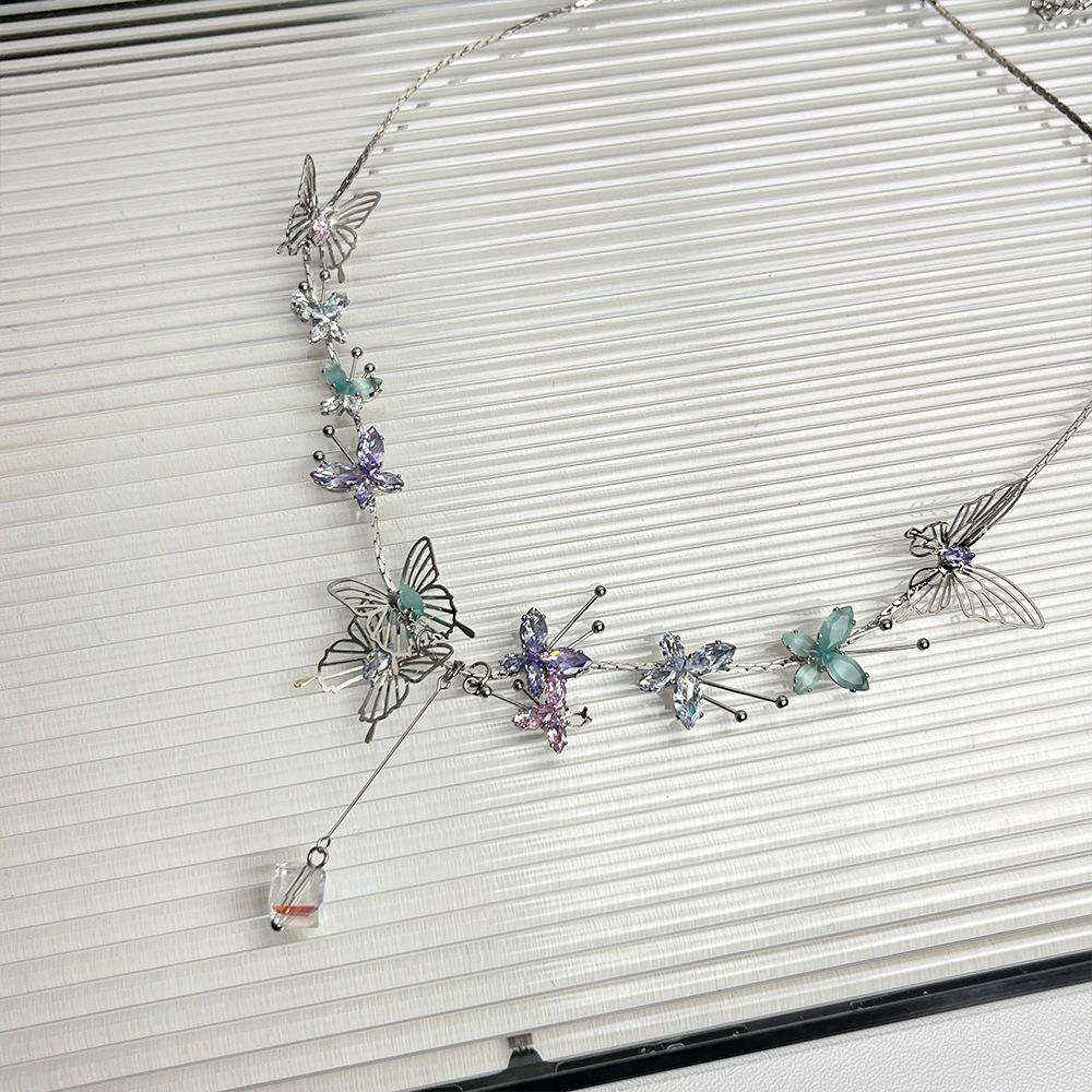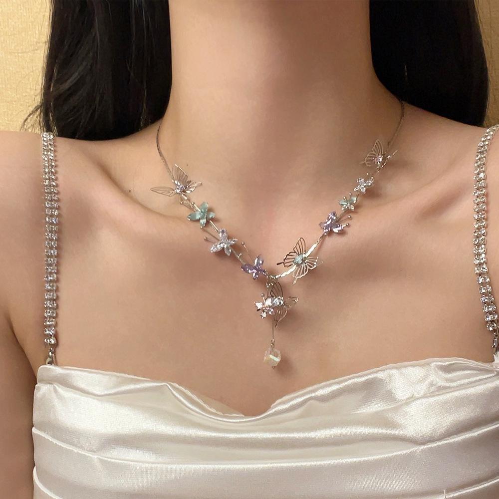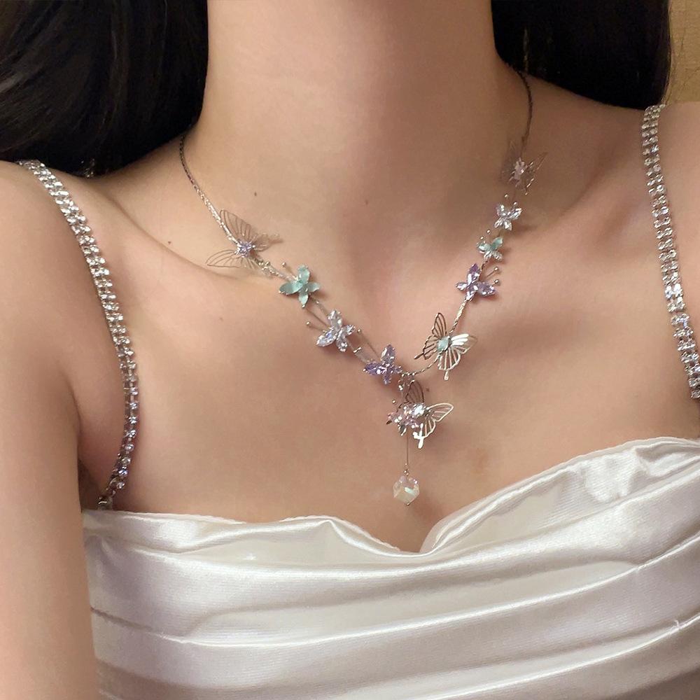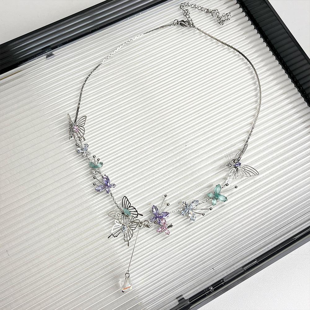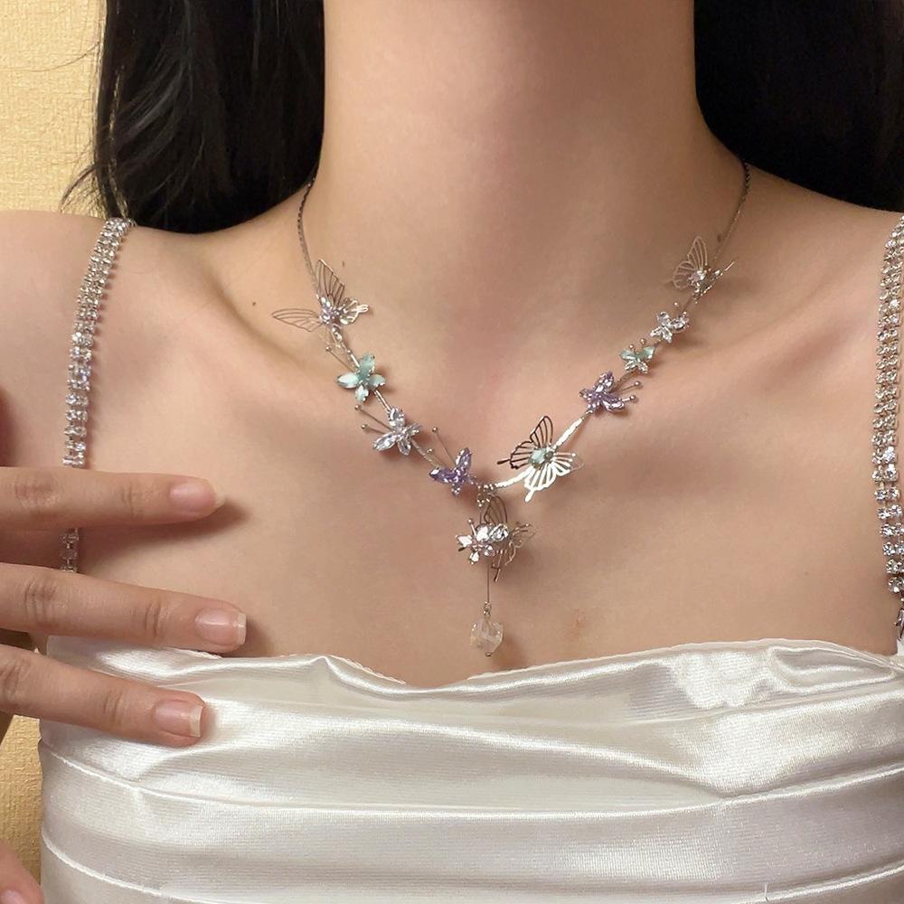 Compra Collar con colgante de mariposa de cristal tridimensional hueco de color dulce, diseño de nicho, cadena de clavícula avanzada, collar de súper hada al por mayor en Joom.pro