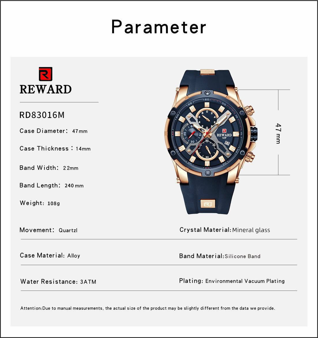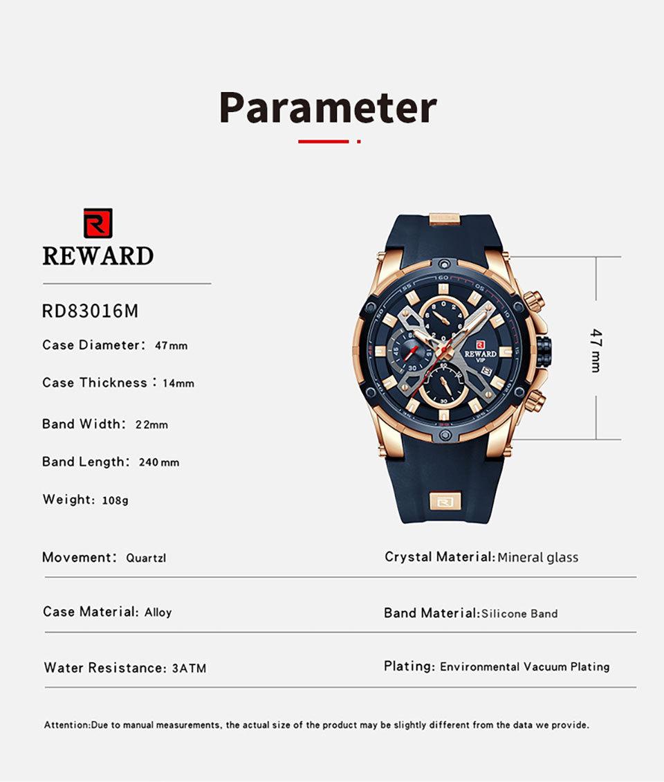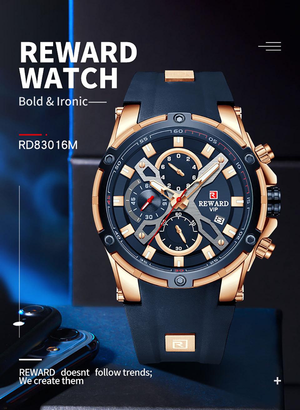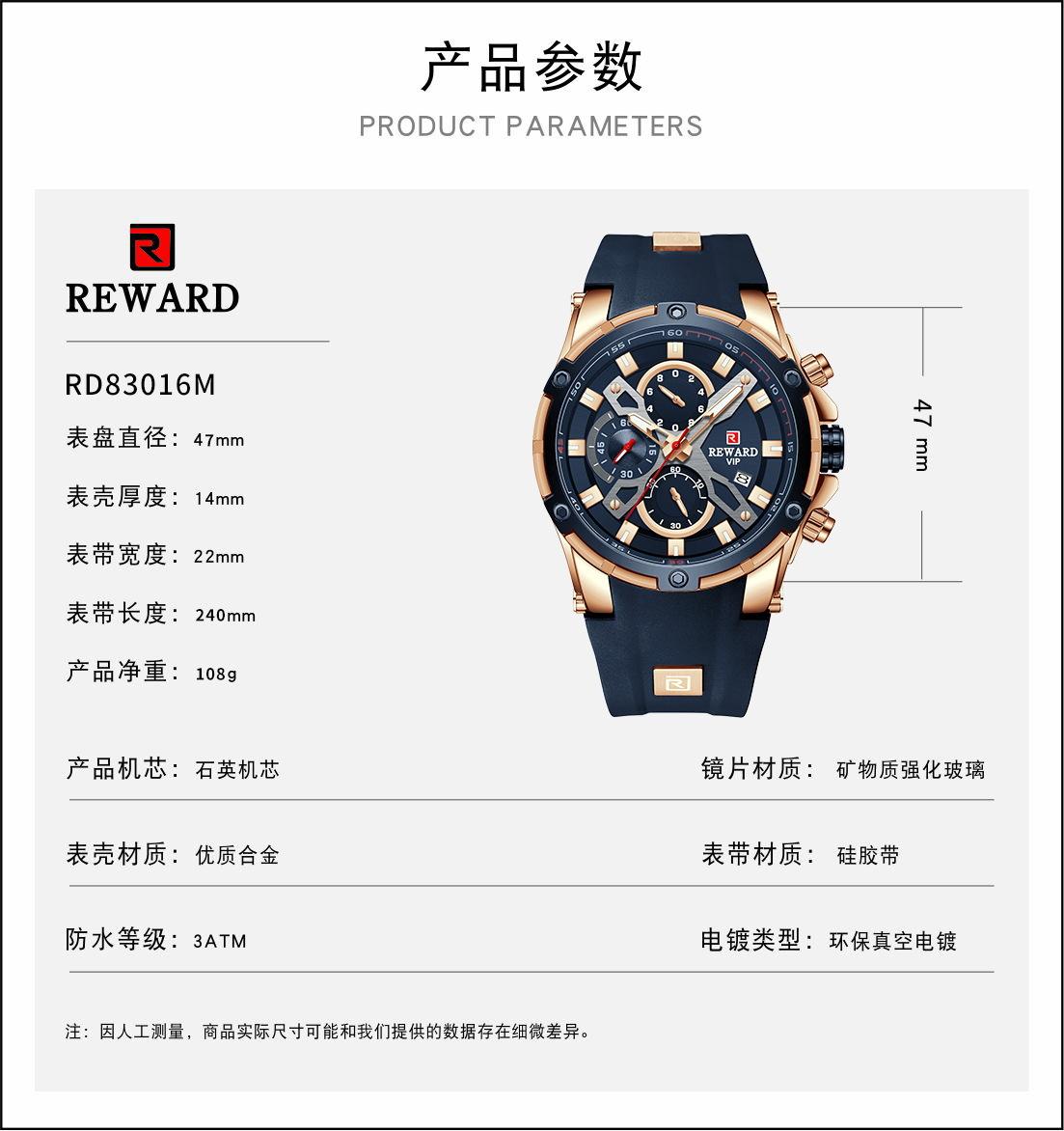 Reloj REWARD83016 para hombre, reloj calendario, reloj de cinta, reloj de cuarzo, reloj de seis agujas, reloj deportivo para hombre.