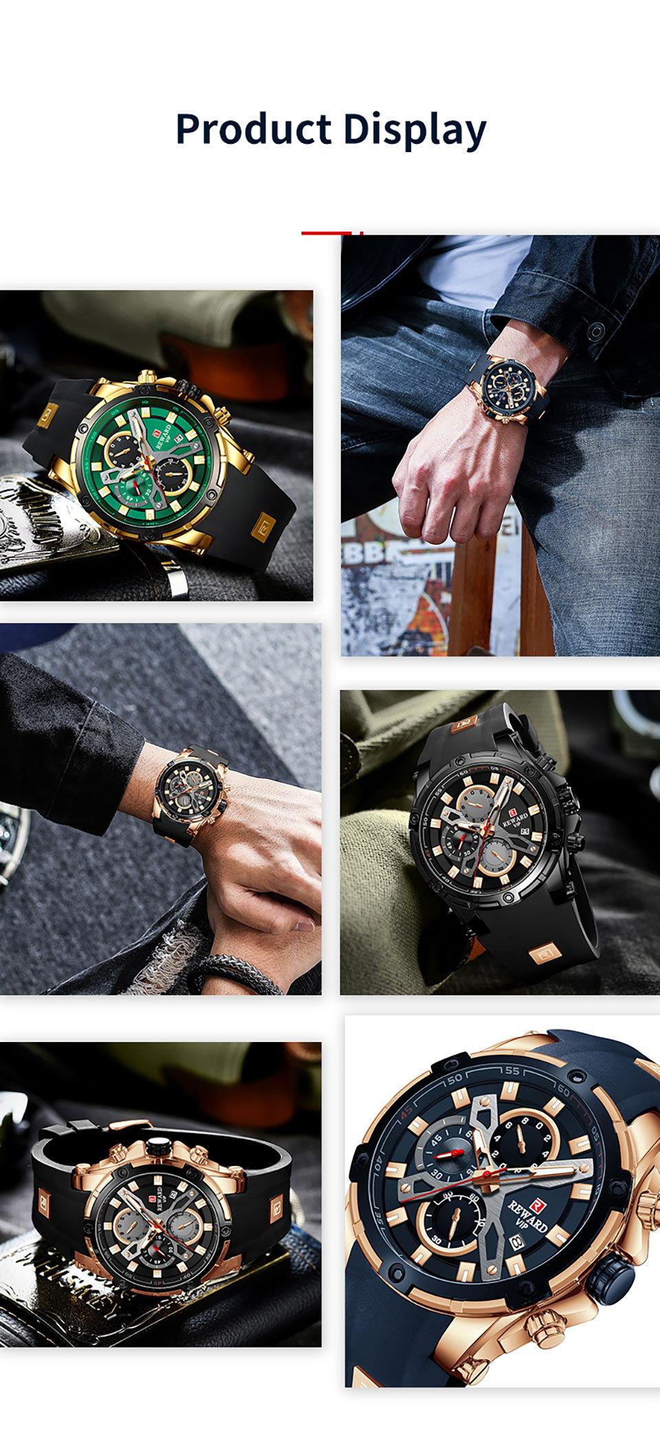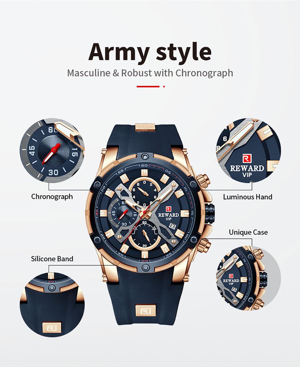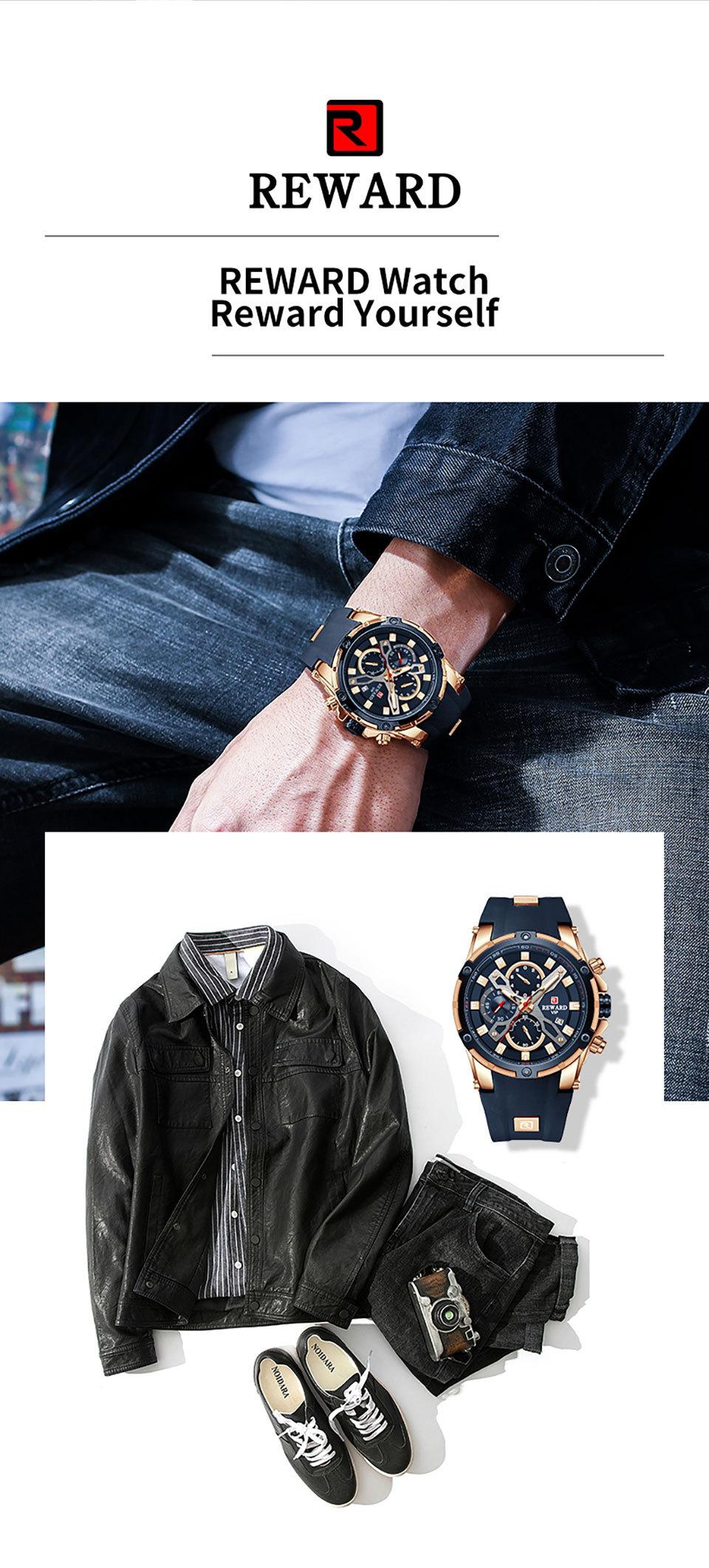 Reloj REWARD83016 para hombre, reloj calendario, reloj de cinta, reloj de cuarzo, reloj de seis agujas, reloj deportivo para hombre.