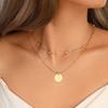 Collar de Cadena Multicapa de Moda Transfronteriza Europea y Americana para Mujer, Simple Elegante, Colgante de Disco Estilo Frío, Collar de Clavícula de Aleación