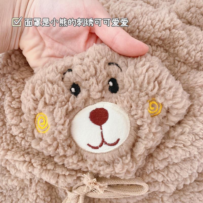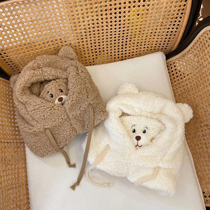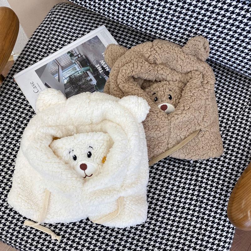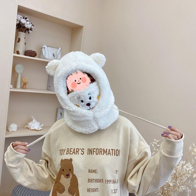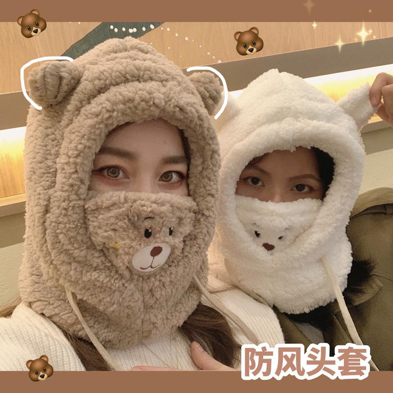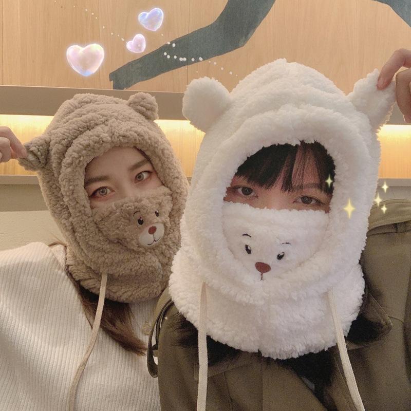 Otoño e Invierno Máscara de Oso Sombrero de Una Pieza Calentadores de Orejas Cálidos para Mujer Engrosado Lindo Combinable a Todo Prueba de Viento a Prueba de Frío Cuello Lei Feng Gorro Moderno