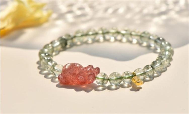 Compra Pulsera Fantasma Verde Natural Oso de Cristal de Fresa Bolso de 14K Accesorios de Oro Pulsera de Mujer Moda Simple Grande Cong al por mayor en Joom.pro