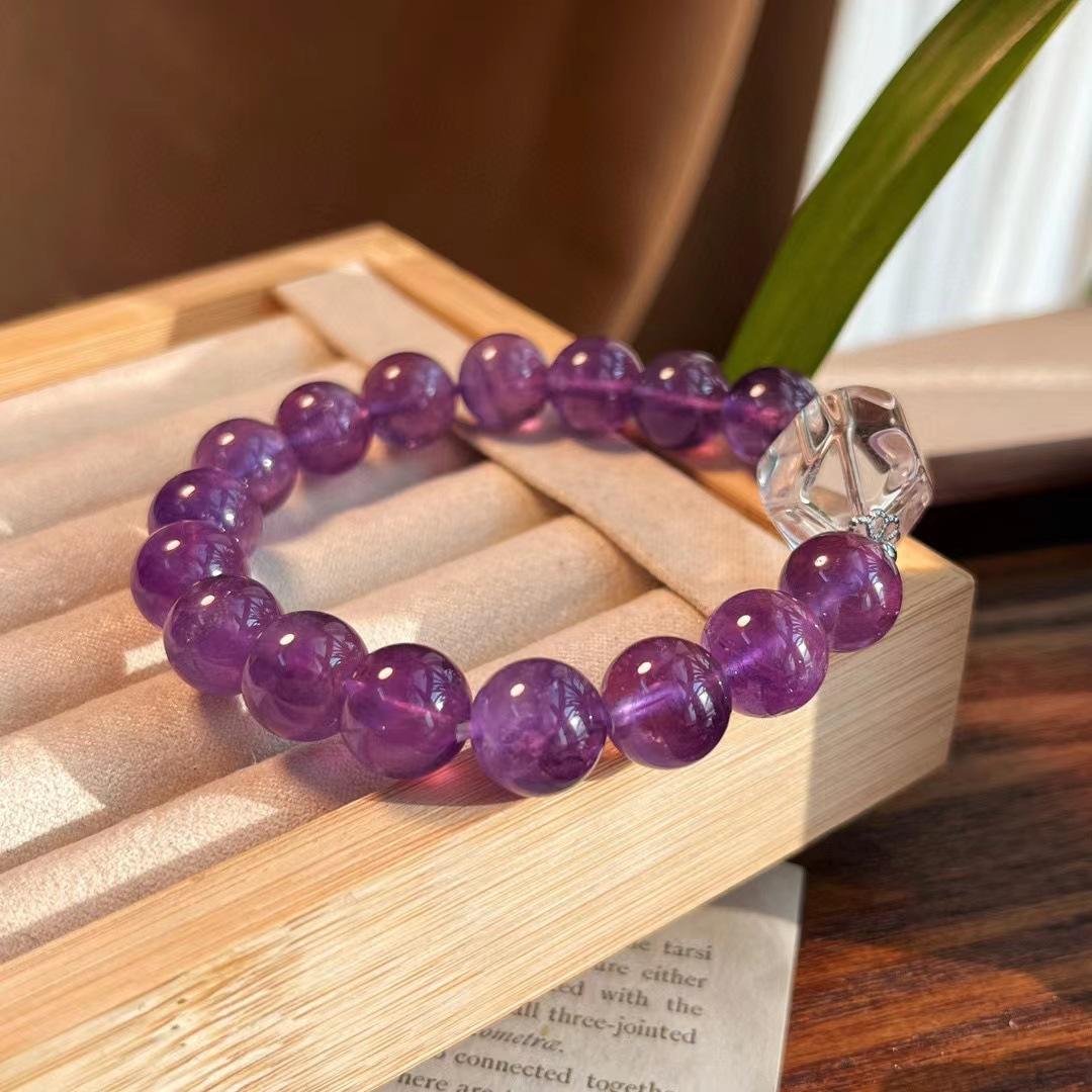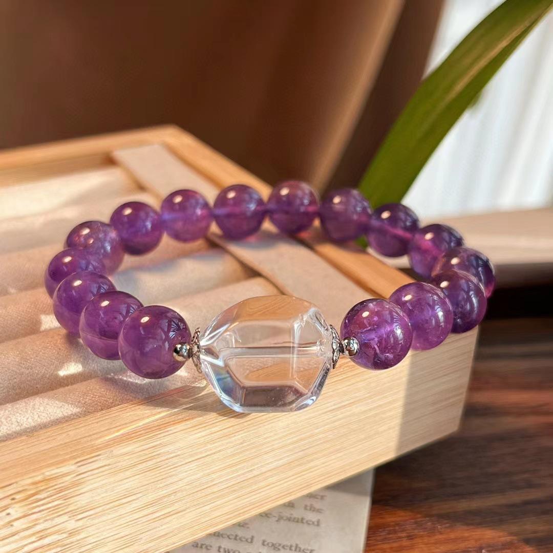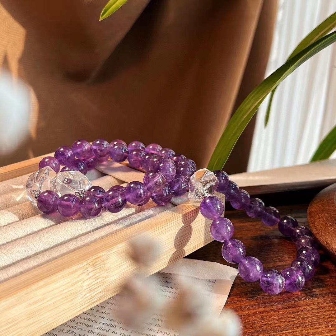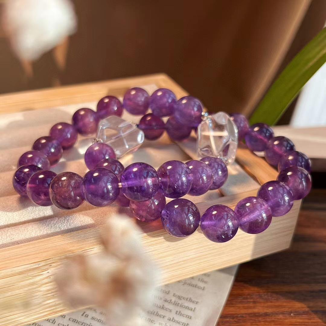 Diseño Original Pulsera de Amatista Natural de Alta Calidad de 10MM Pulsera de Cristal Blanco Natural