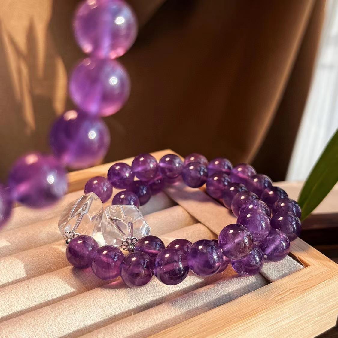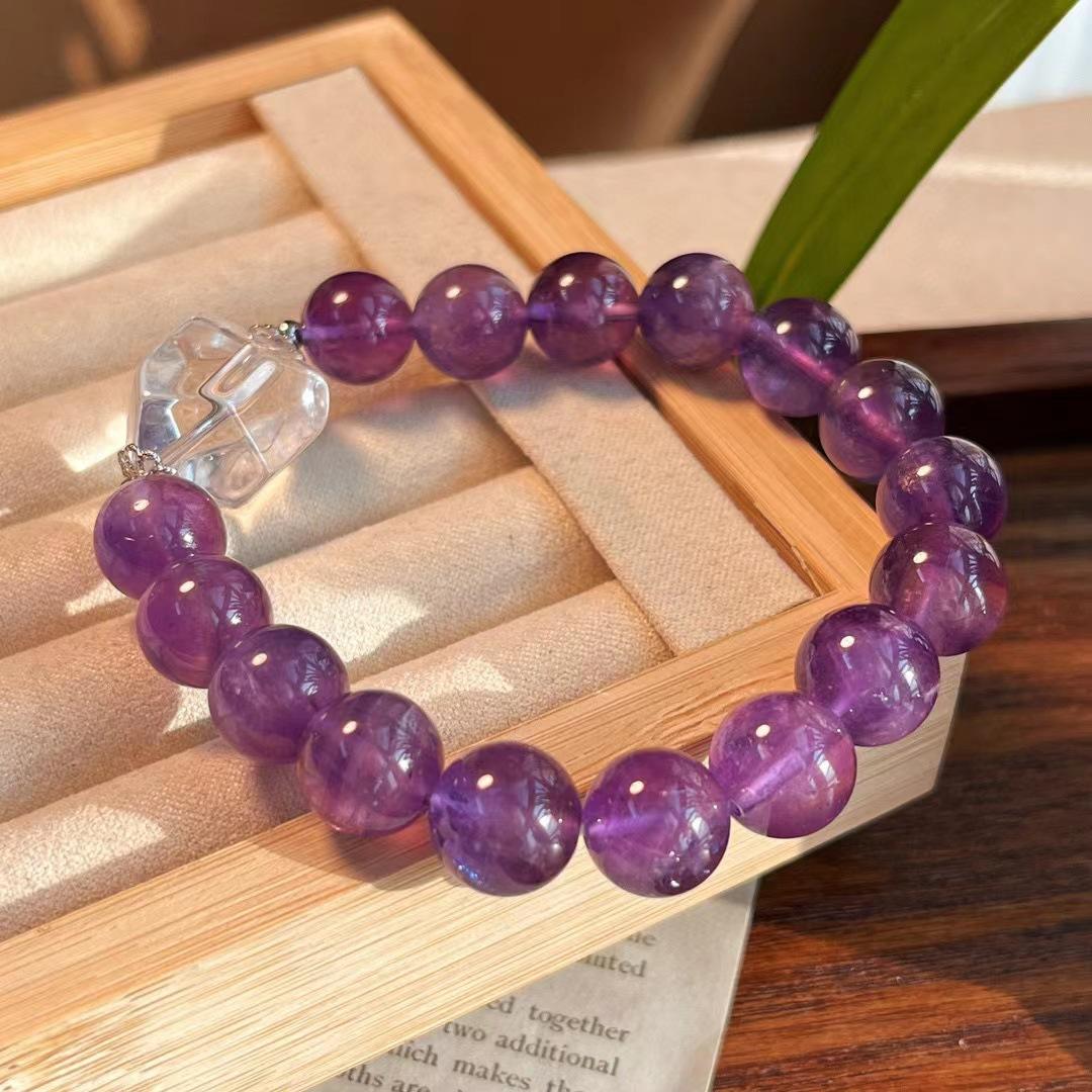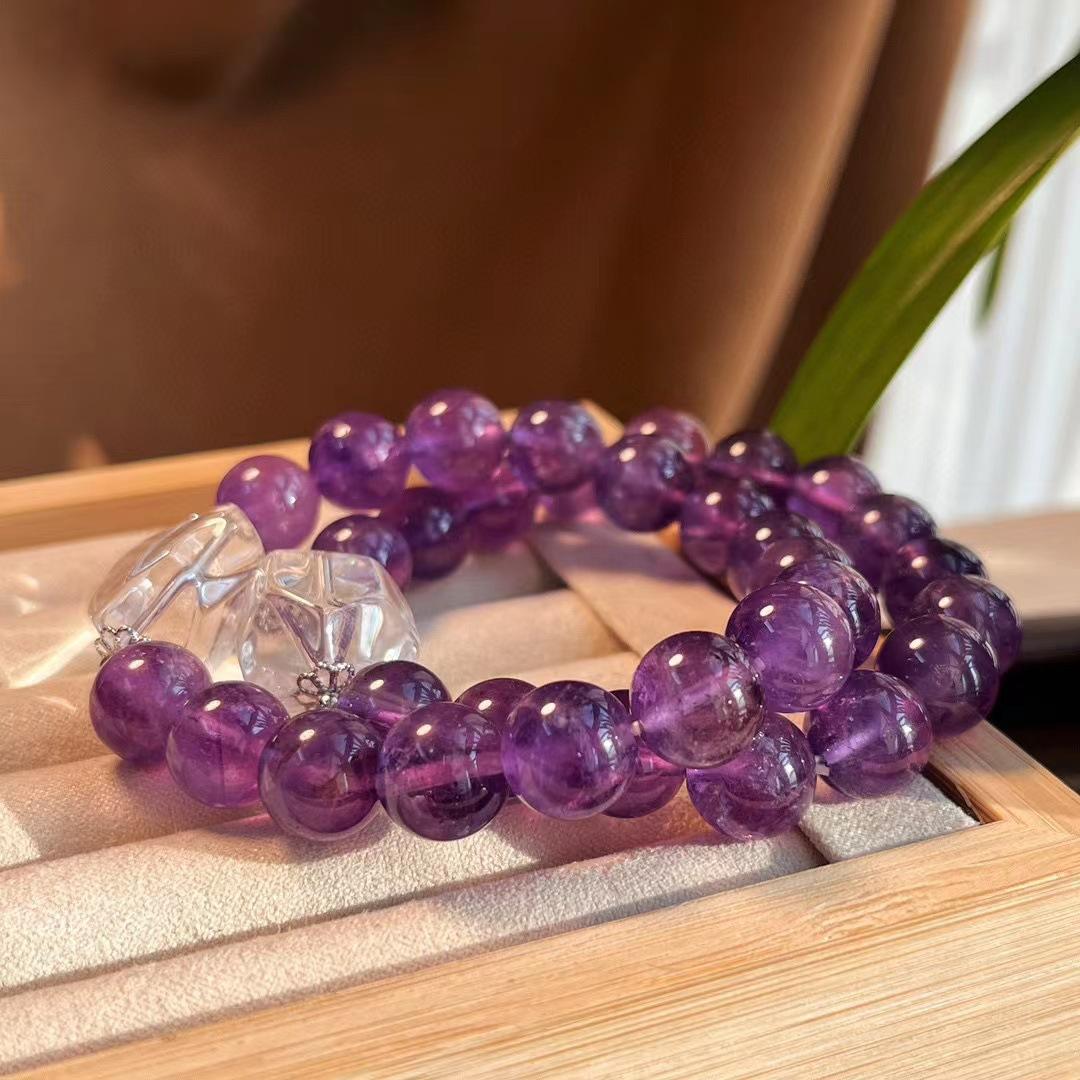 Diseño Original Pulsera de Amatista Natural de Alta Calidad de 10MM Pulsera de Cristal Blanco Natural