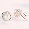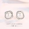 Nuevos aretes coreanos de moda de trébol de cuatro hojas con perlas para mujer, diseño nicho chapado en oro rosa, joyería linda para la oreja para estudiante