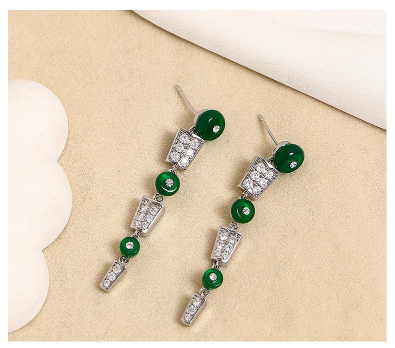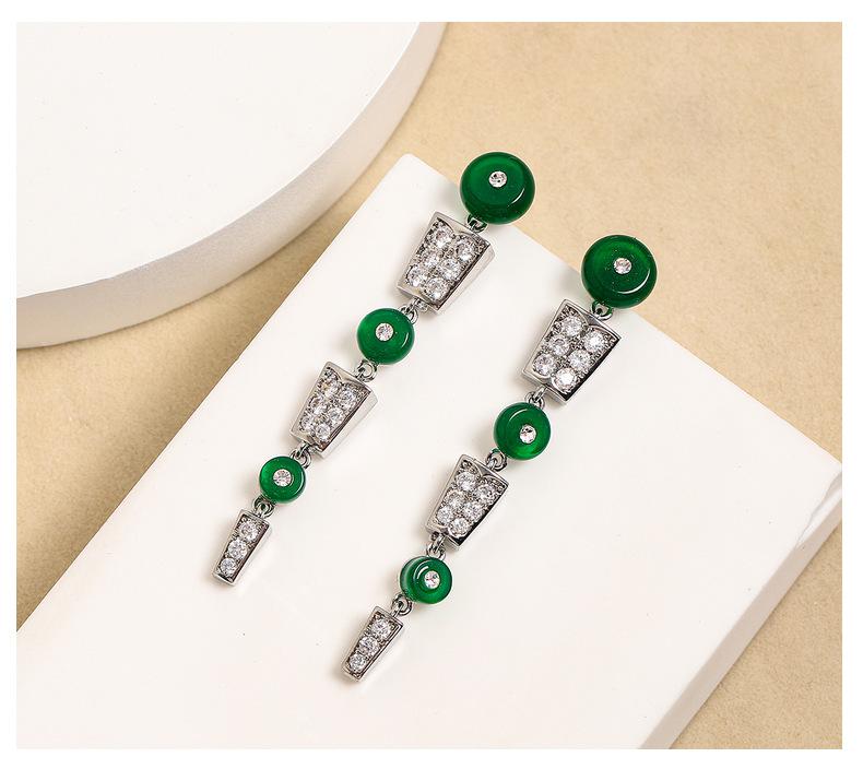 Pendientes largos con costuras geométricas, pendientes de personalidad de tendencia de moda, pendientes de temperamento de circonita con incrustaciones de Joker, fabricantes al por mayor