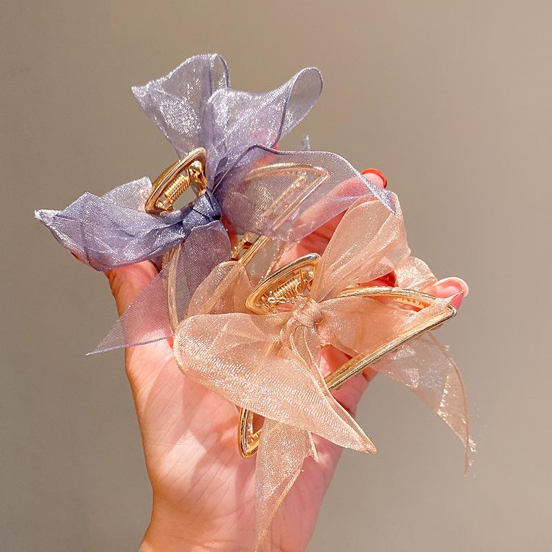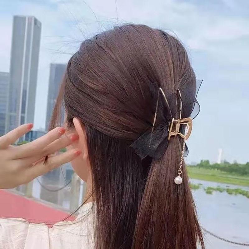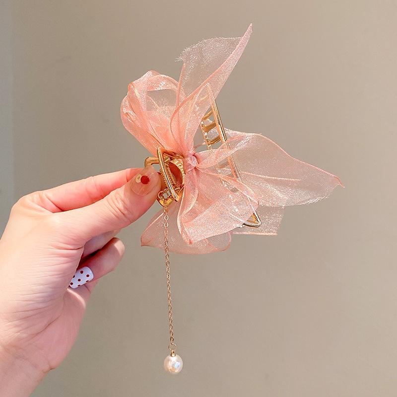 Compra Horquilla de malla con lazo y perla, estilo coreano, con borlas de metal, pinza para la parte trasera de la cabeza y pinza de tiburón al por mayor en Joom.pro