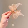 Horquilla de malla con lazo y perla, estilo coreano, con borlas de metal, pinza para la parte trasera de la cabeza y pinza de tiburón