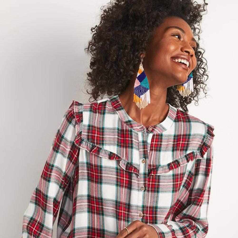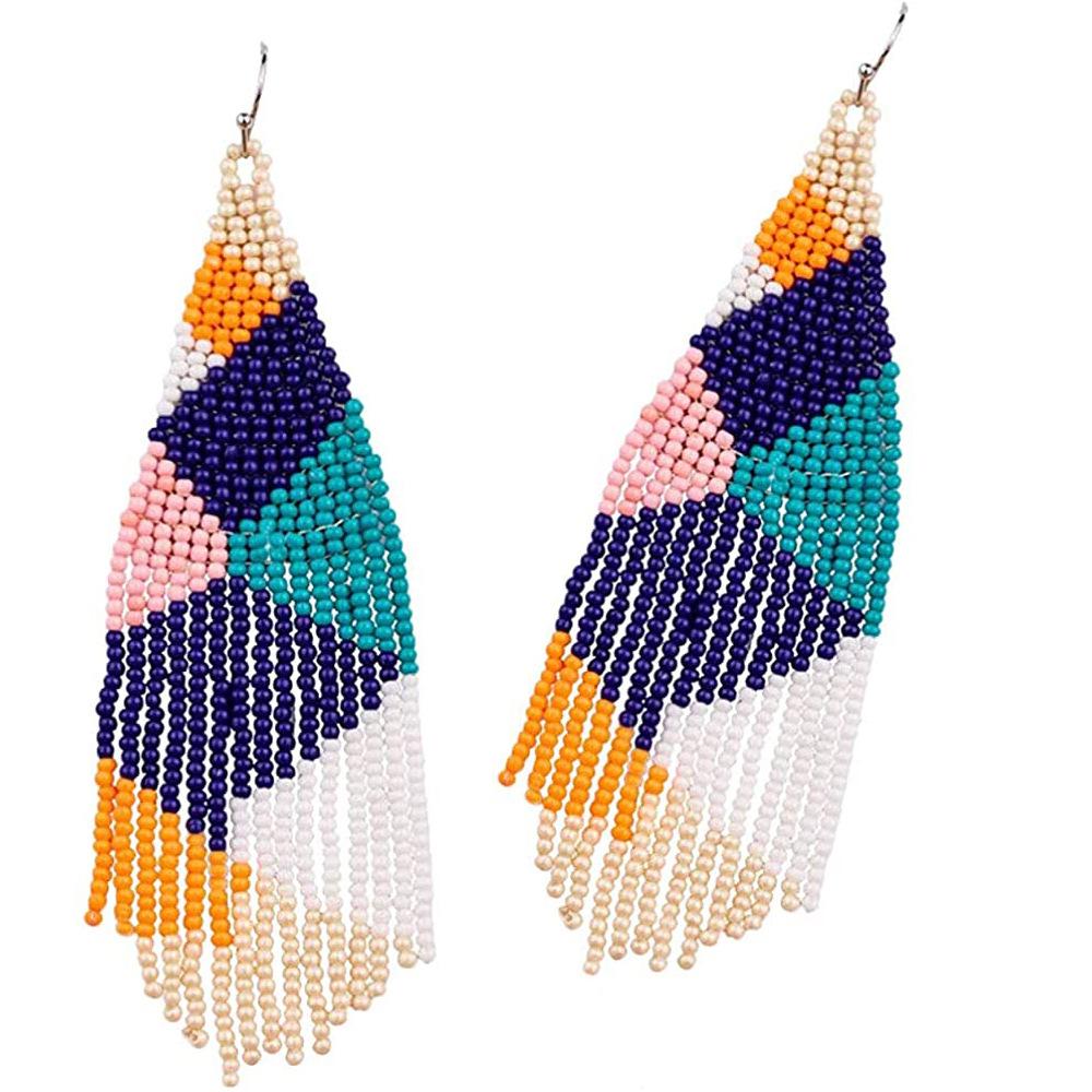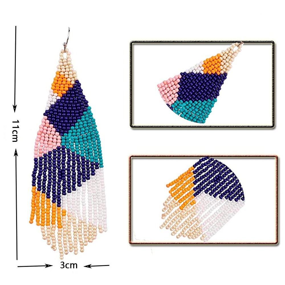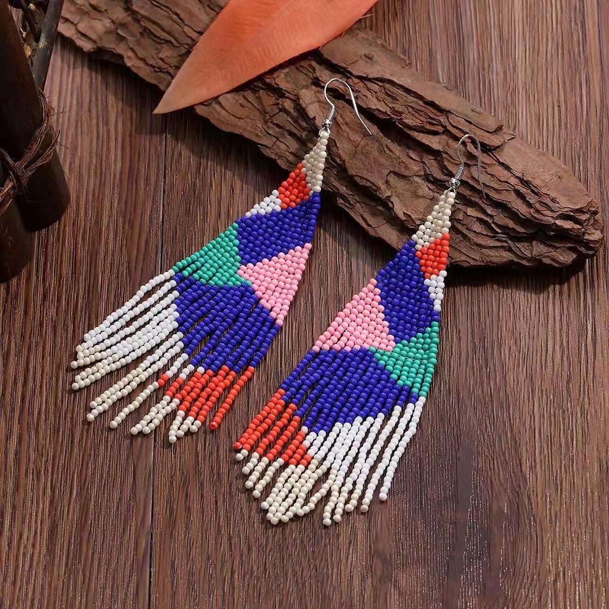 Pendientes exquisitos con borlas y costuras geométricas de estilo étnico transfronterizo, pendientes de moda bohemios europeos y americanos al por mayor