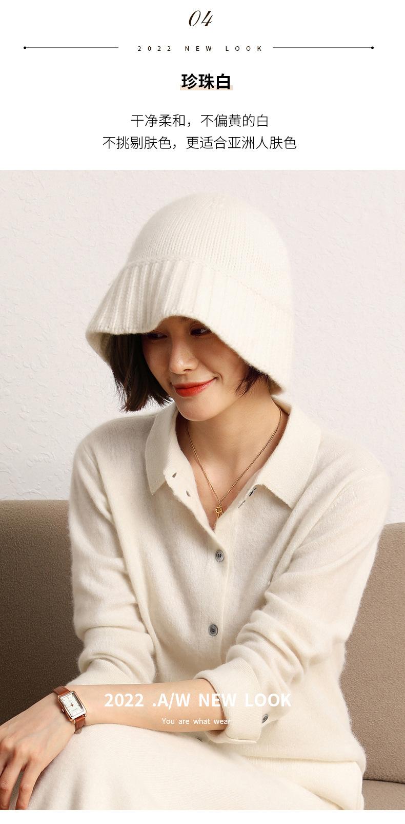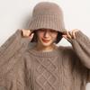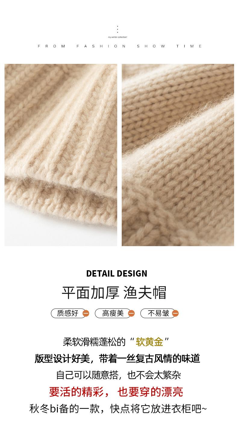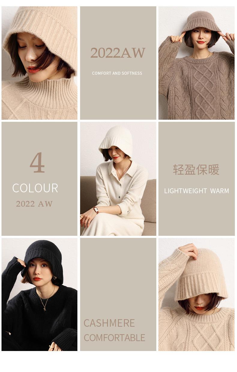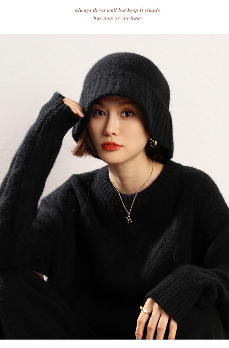 Sombrero de pescador de cachemira para mujer, gorro de pescador de punto a juego, estilo coreano, con cara pequeña y cabeza grande, para otoño e invierno