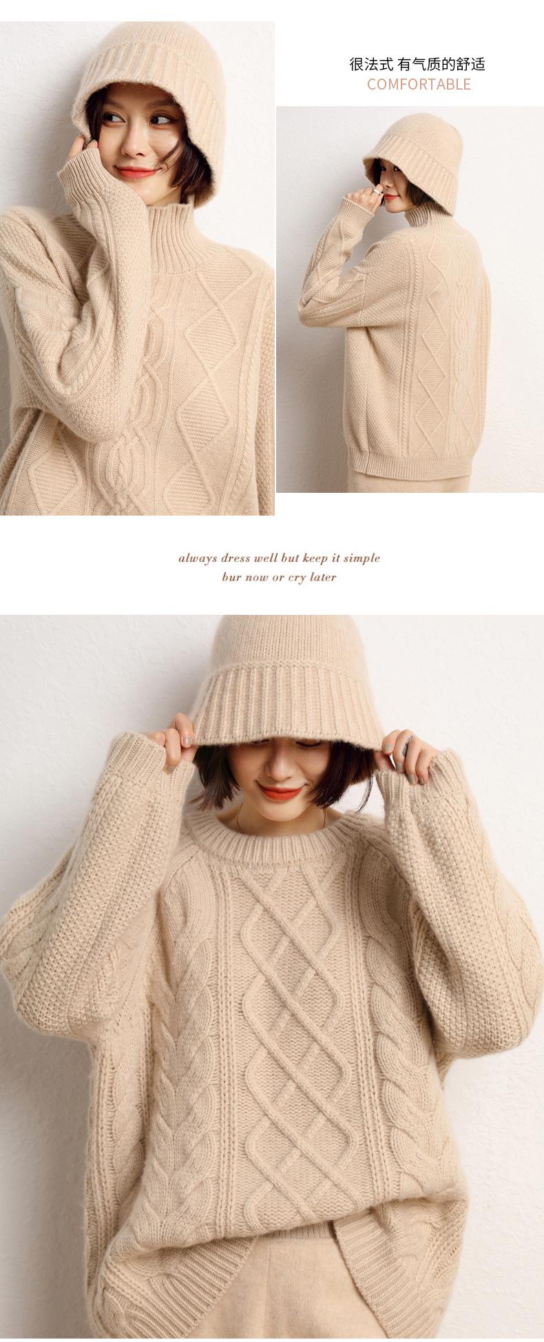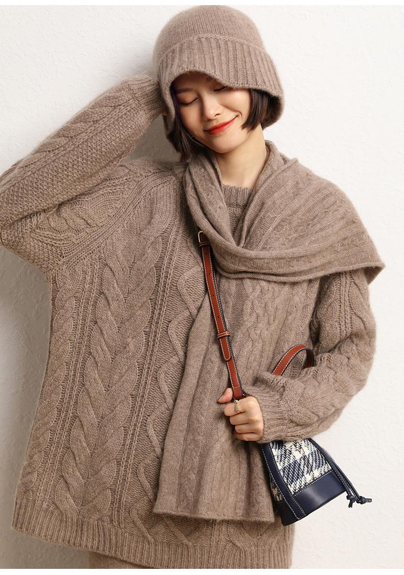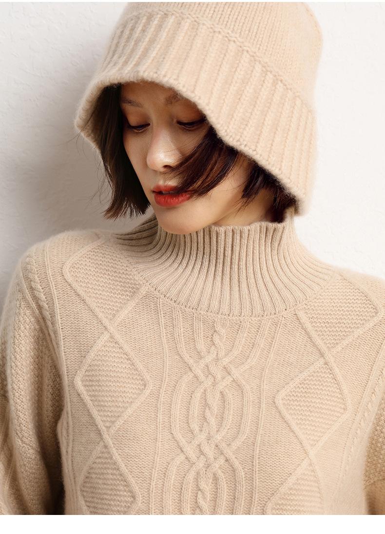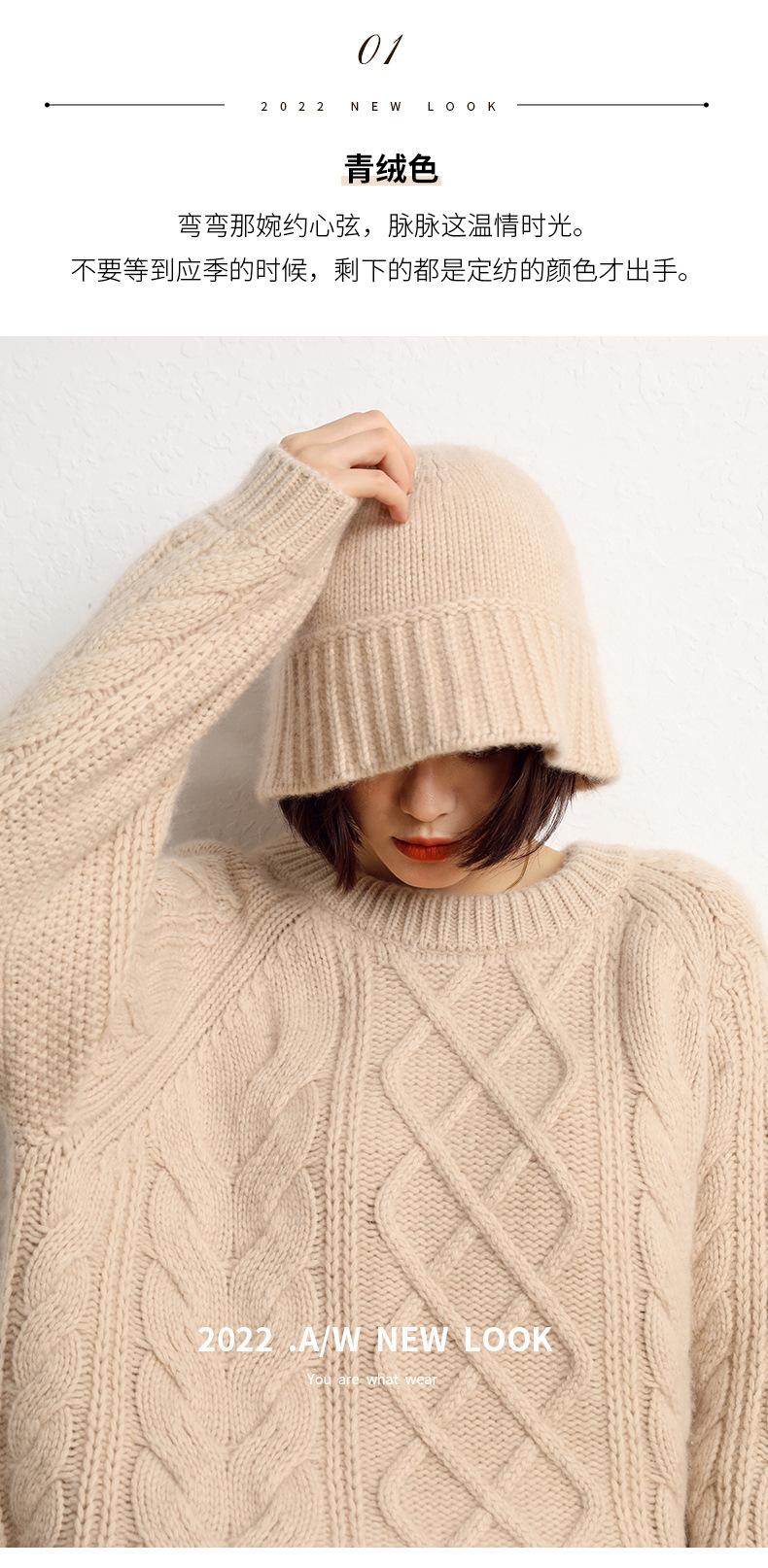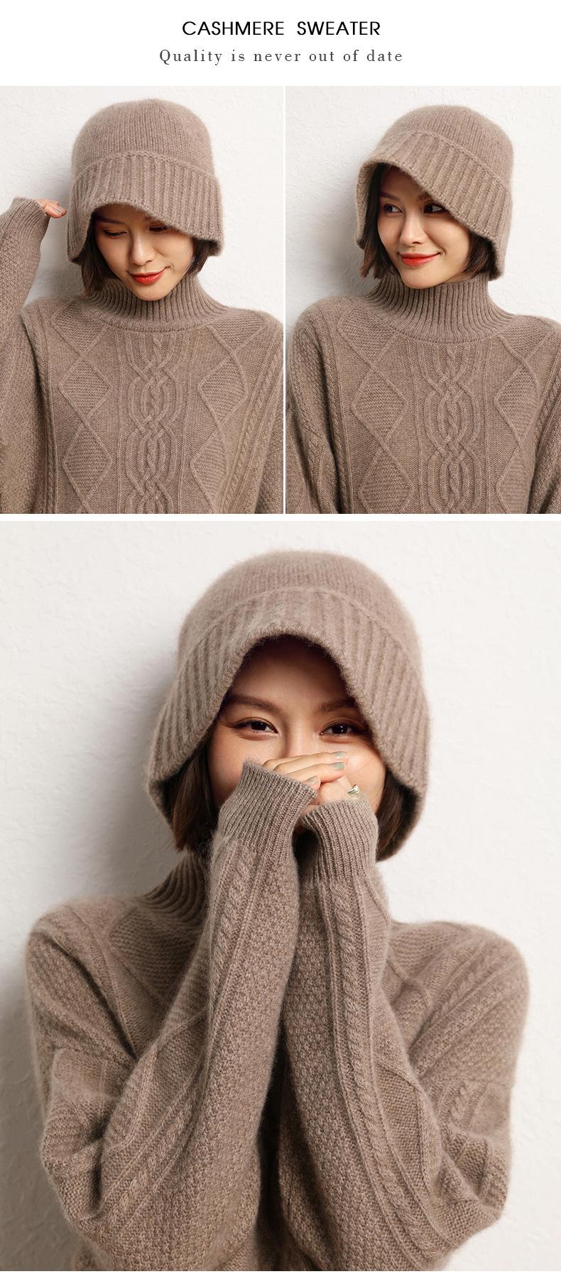 Sombrero de pescador de cachemira para mujer, gorro de pescador de punto a juego, estilo coreano, con cara pequeña y cabeza grande, para otoño e invierno