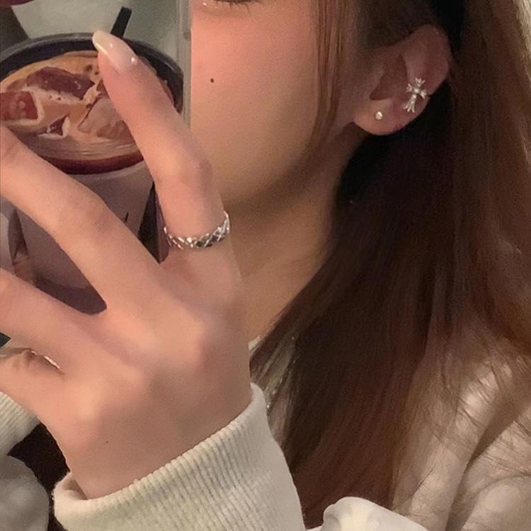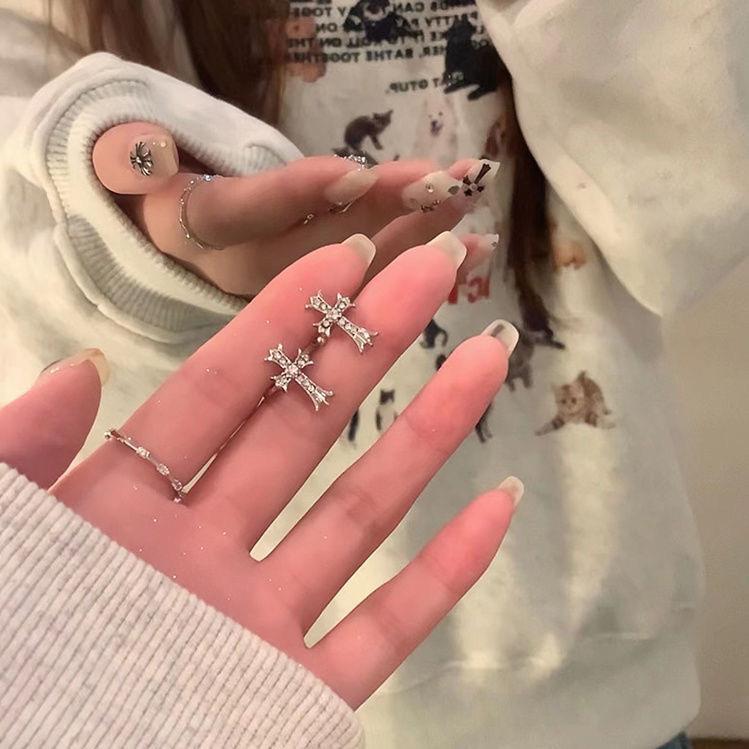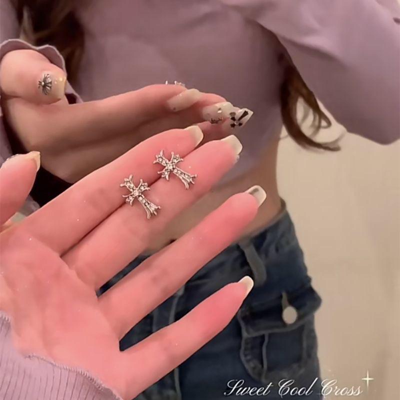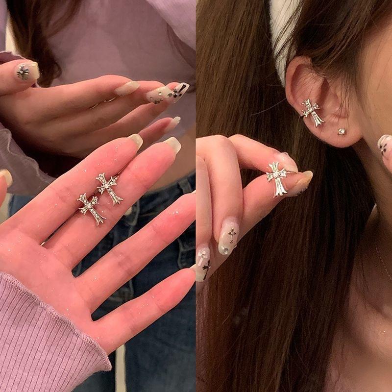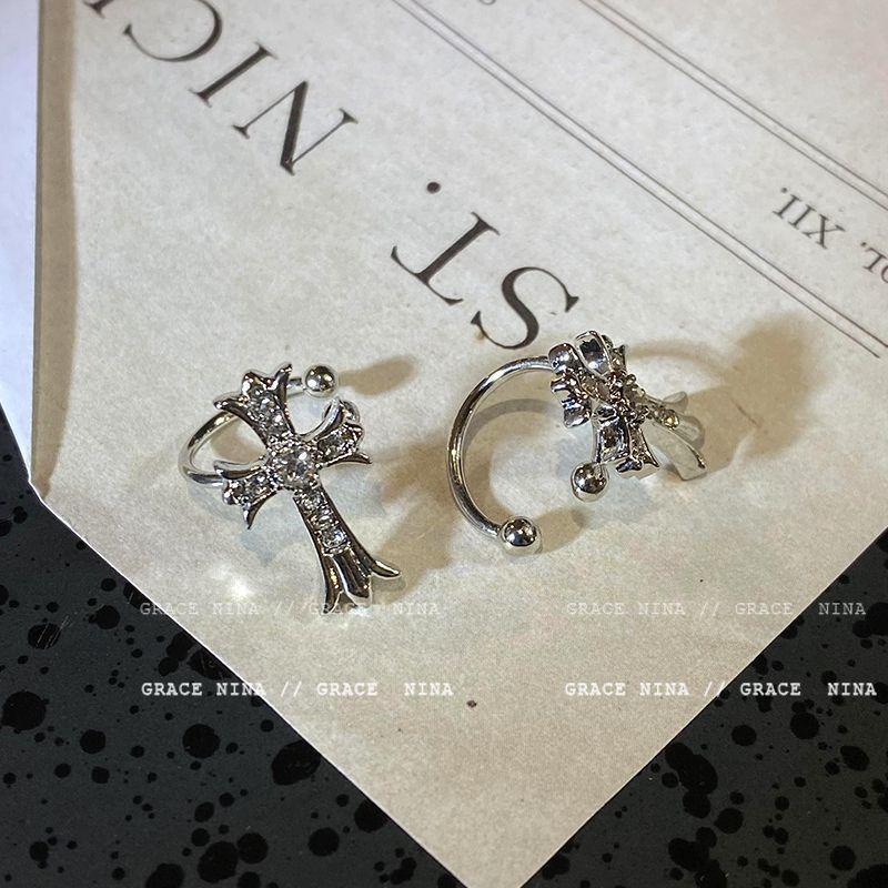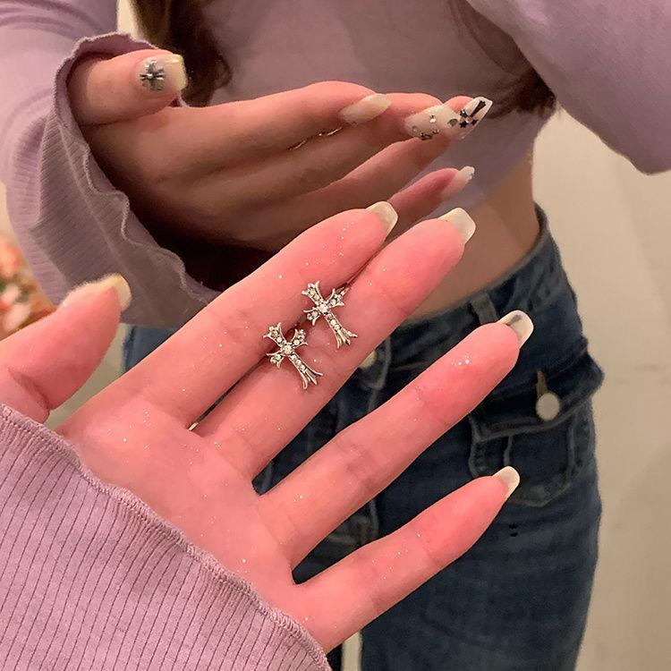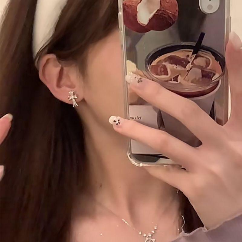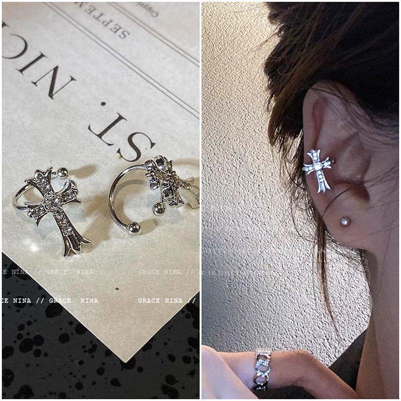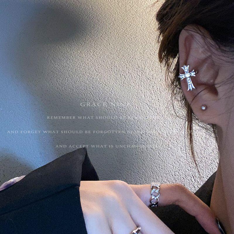 Clip para Oreja de Cruz de Circonita Femenino Dulce Cool Diseño Nicho Clip para Hueso de la Oreja de Alta Gama Sin Agujeros en la Oreja Arete de Corazón
