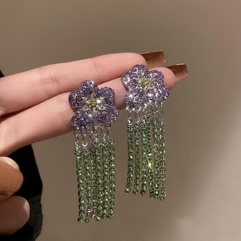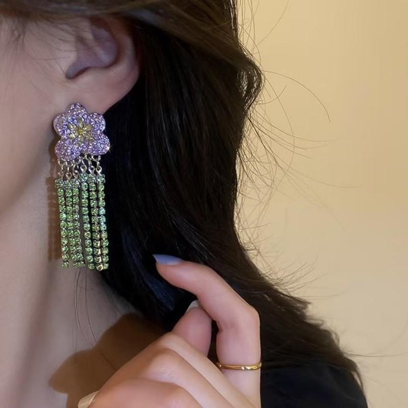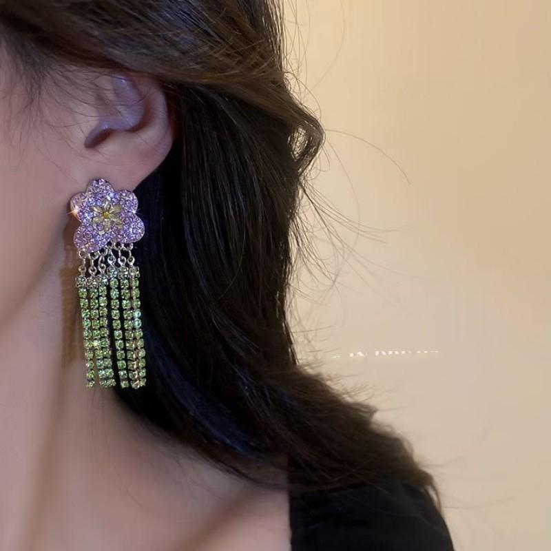 Pendientes de Borla Flor Diamante Aguja de Plata Pendientes de Moda de Lujo Ligero de Alta Gama Pendientes de Temperamento Personalizado para Mujer