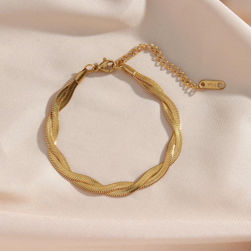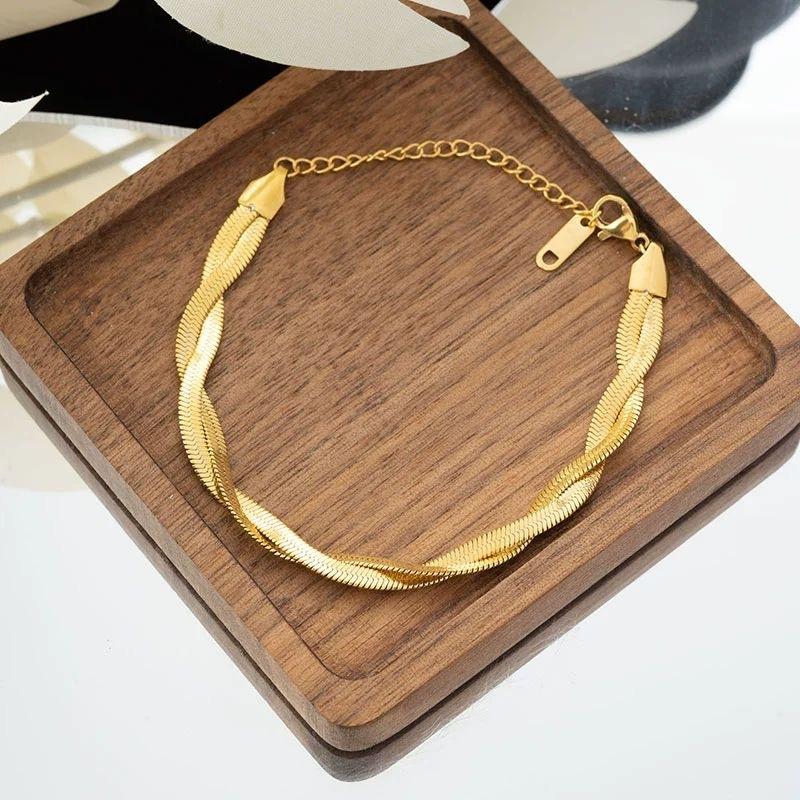 Handmade Double-layer Braided Bracelet in Gold, Hand-made double-layer woven necklace gold
