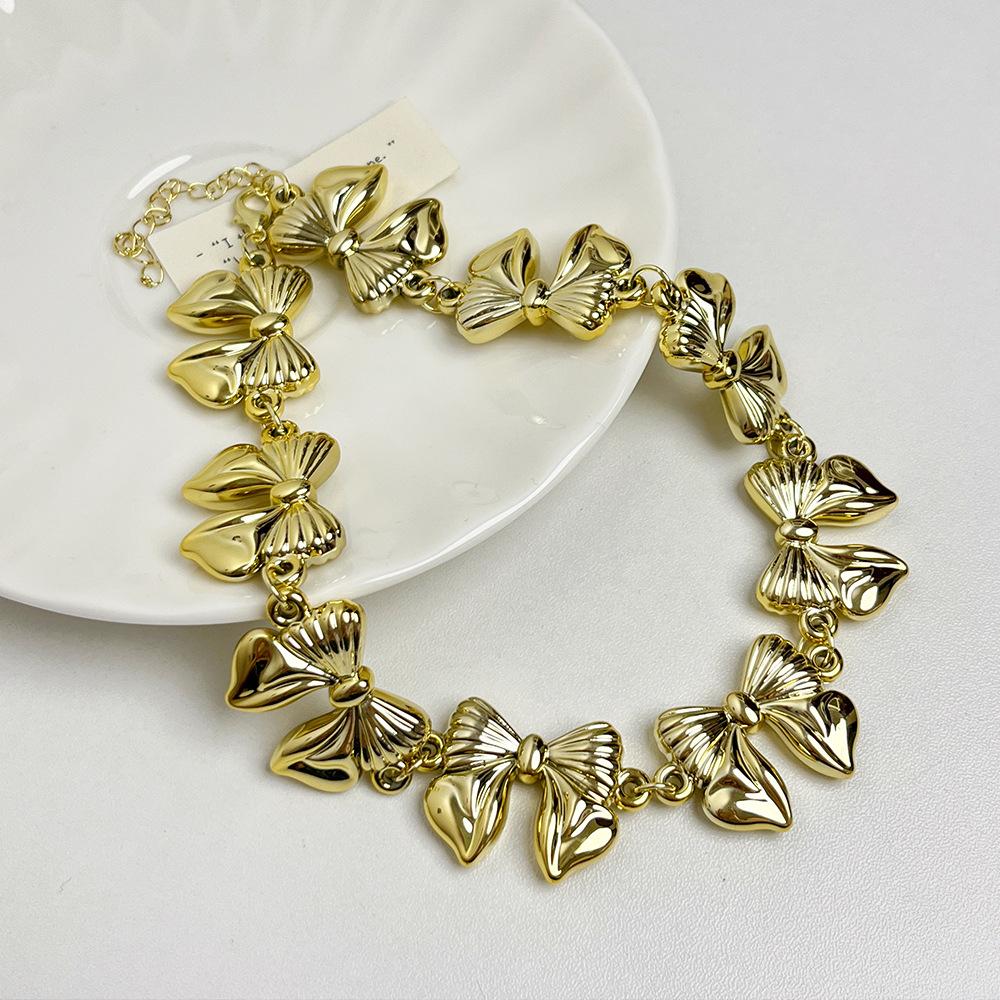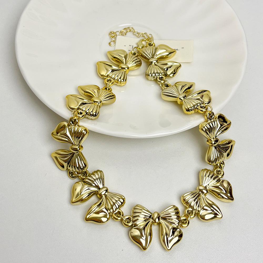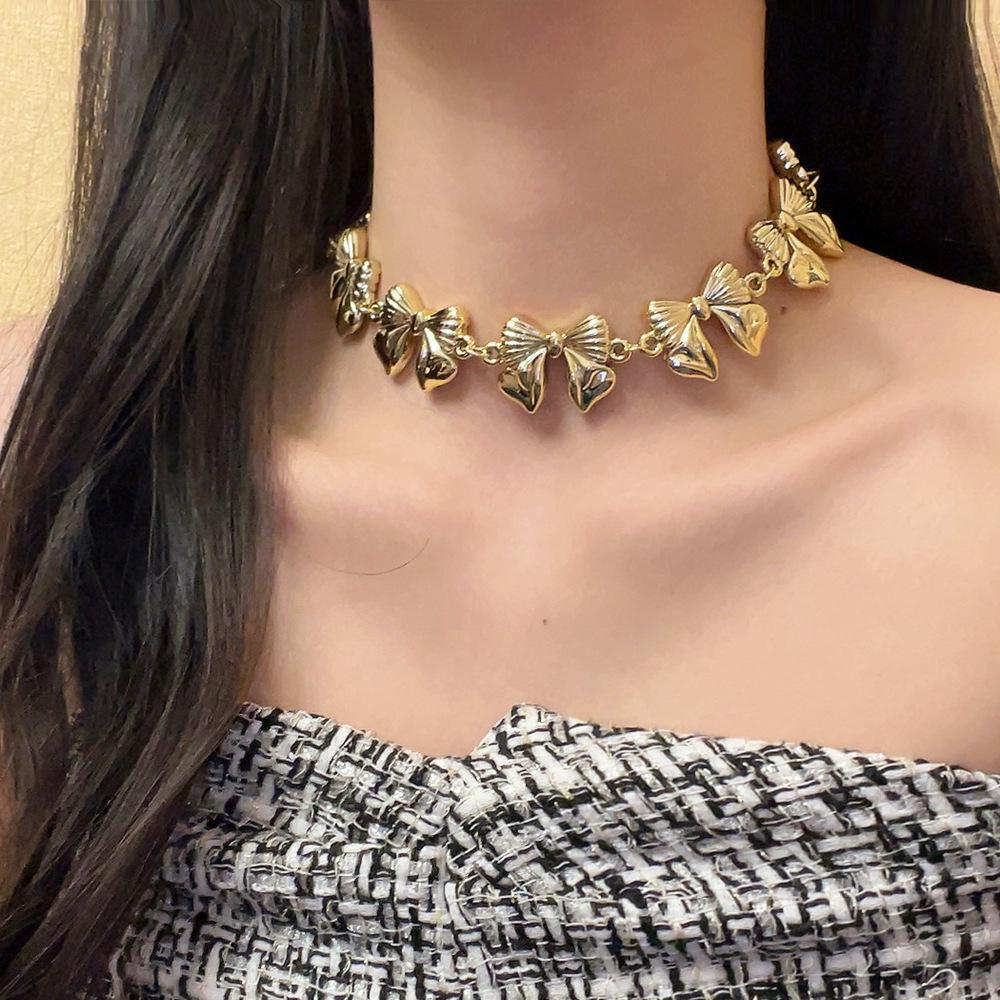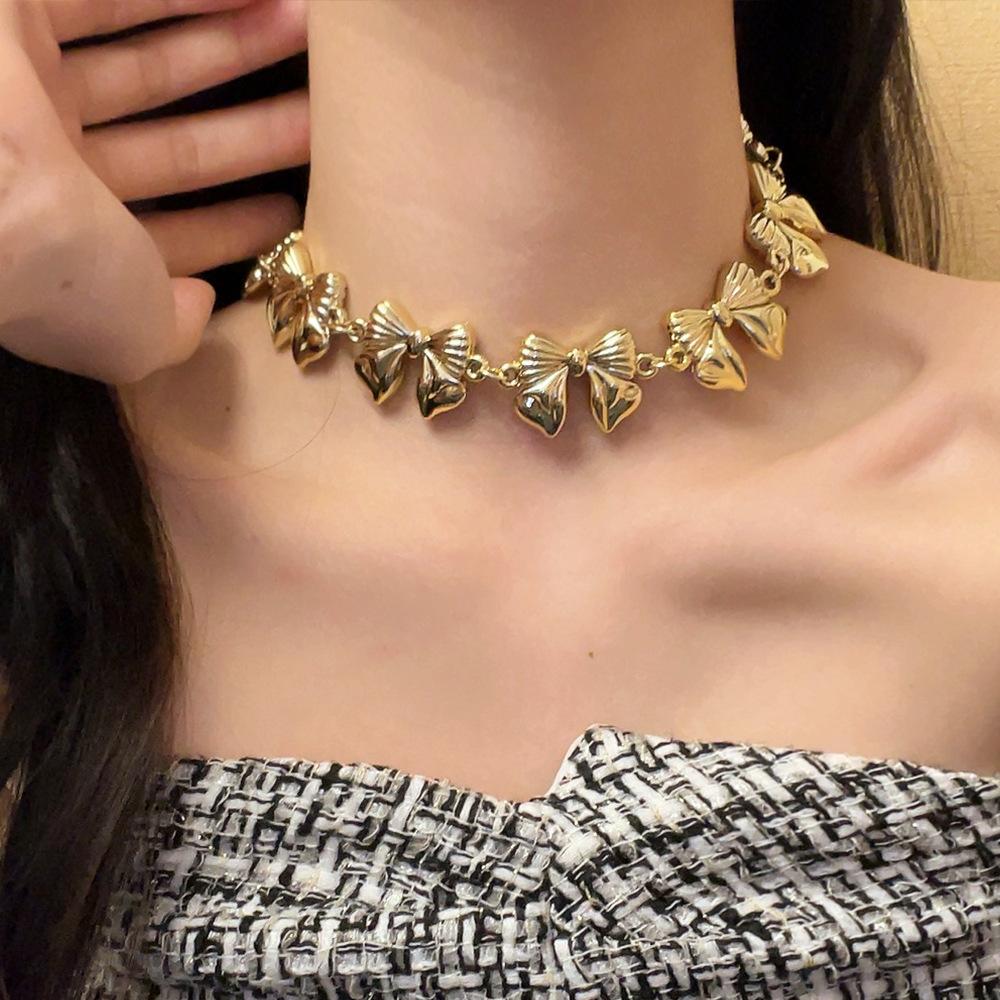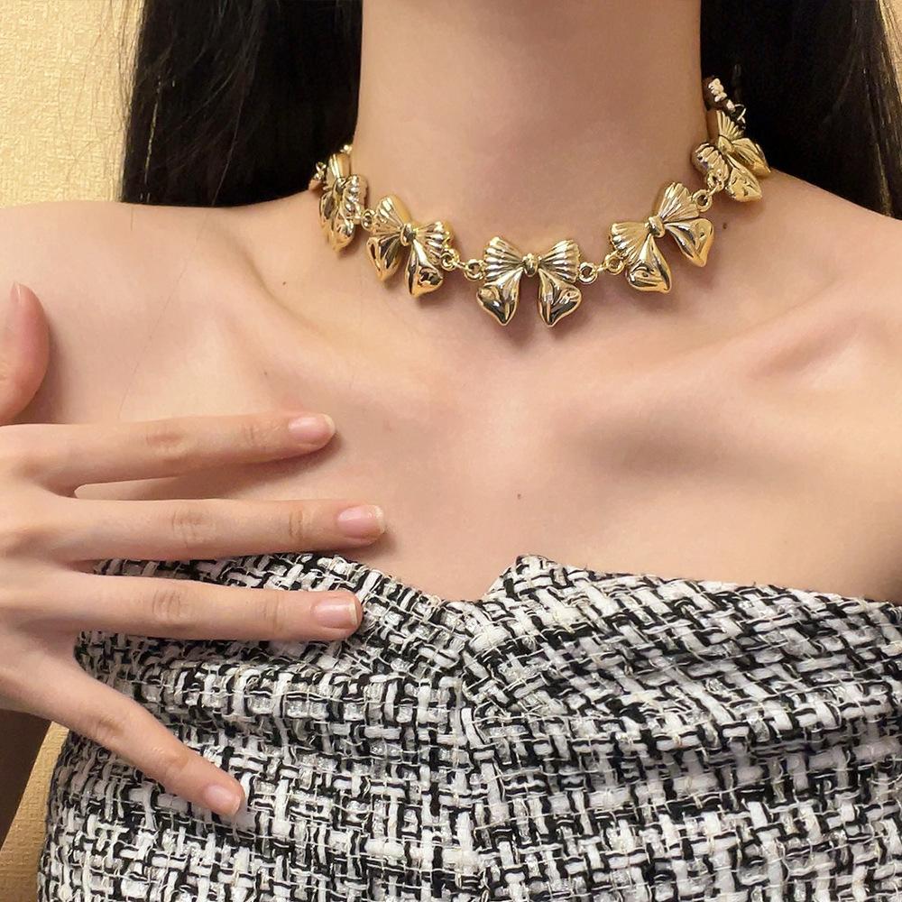 Collar de lazo vintage de metal pesado para mujer, cadena de collar de alta gama que combina con todo, cadena de collar de moda ligera y de lujo que combina con todo.