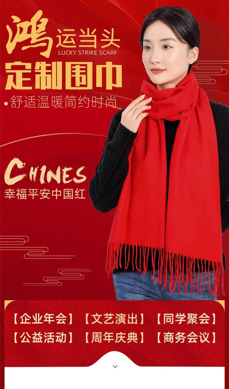 Bufanda Roja Festival Chino Bordado Personalizado L Reunión Evento de Apertura Reunión Bufanda Roja Impresión de logotipo