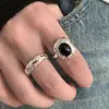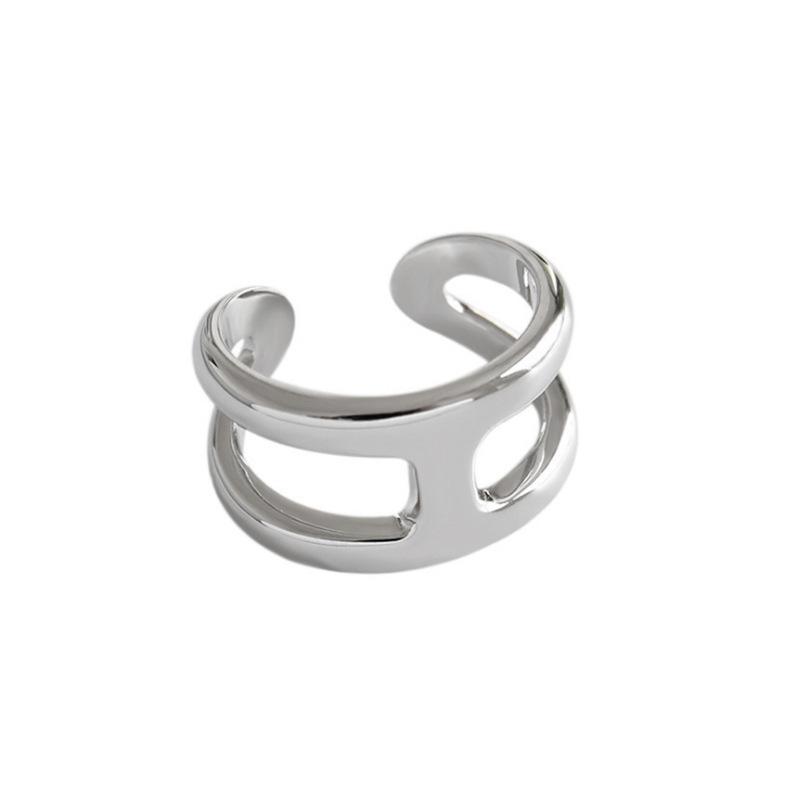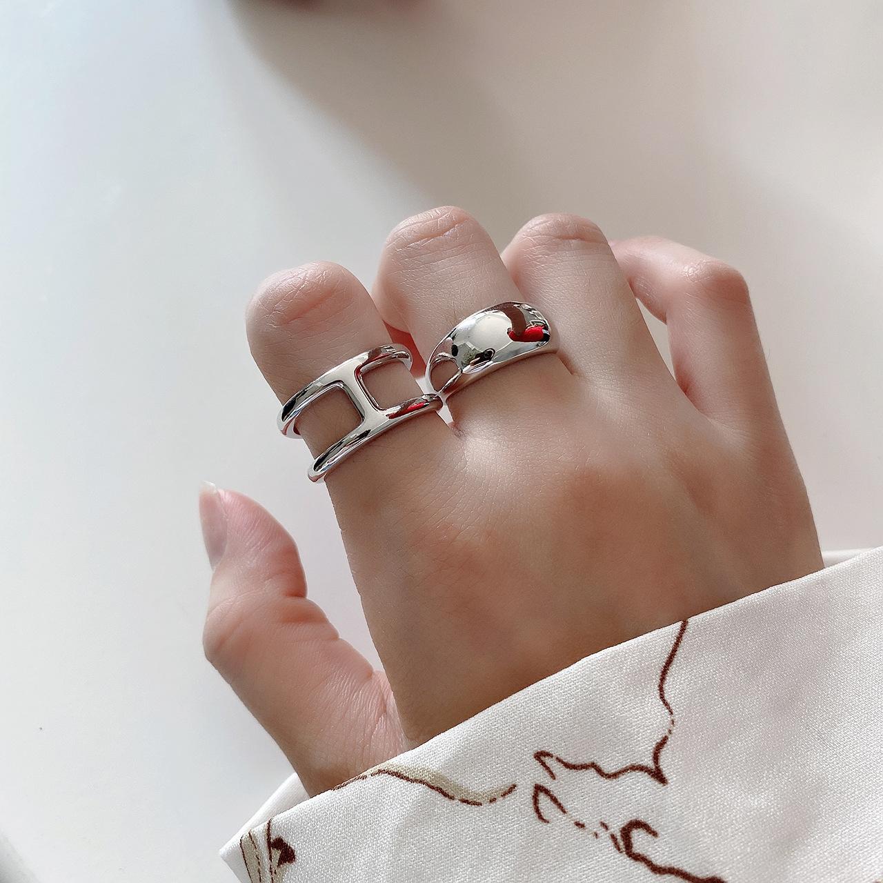 Anillo Letra H Hueca para Mujer Anillo Abierto Geométrico de Doble Capa Forma I Estilo Frío Coreano Anillo de Dedo Apilable