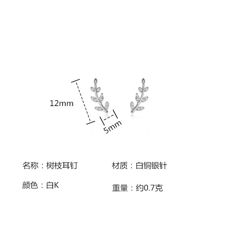 Pendientes de circonita con forma de rama transfronteriza de Europa y Estados Unidos, pendientes de hojas sencillas para mujer, diseño de nicho de moda, joyería para las orejas al por mayor