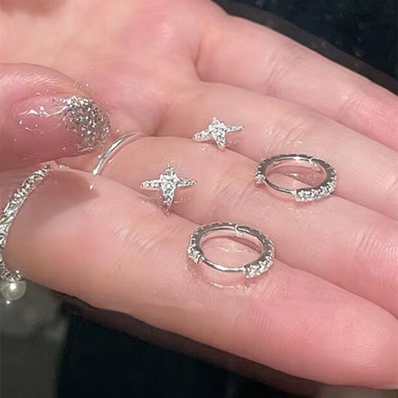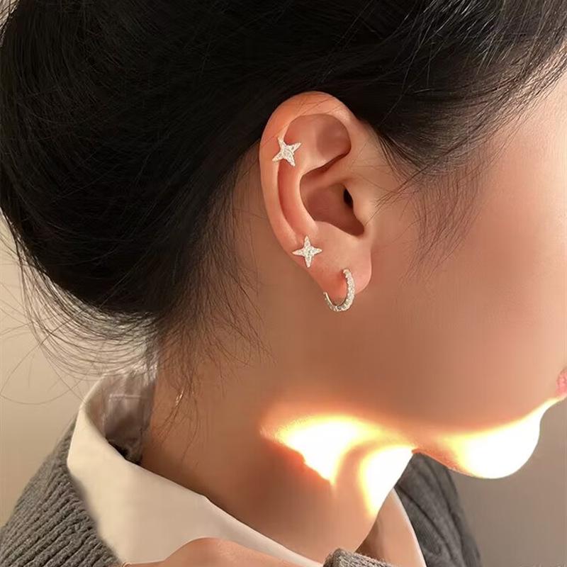 Pendientes para mujer, diseño de nicho s925, de alta calidad, con forma de hueso de oreja, clavos, estrellas, circonitas, pendientes, pendientes de otoño e invierno para mujer.