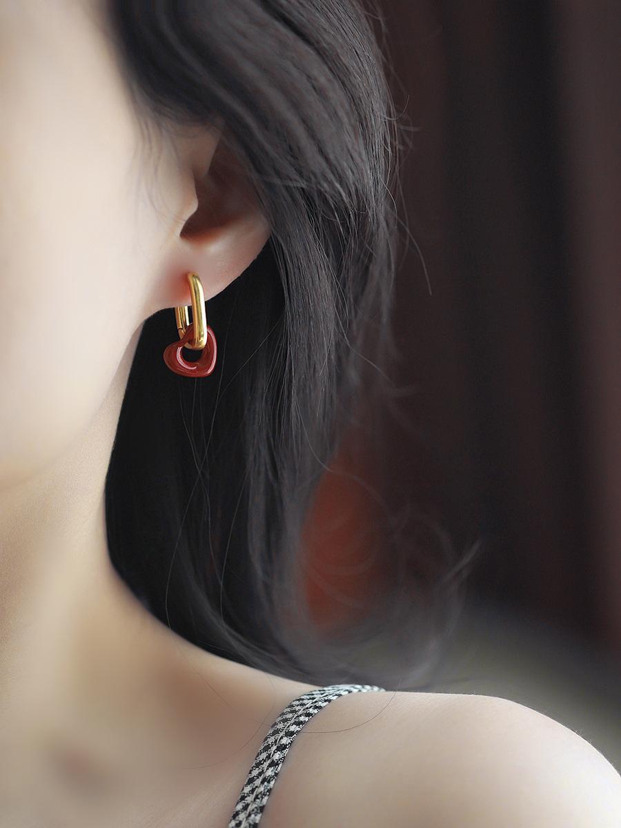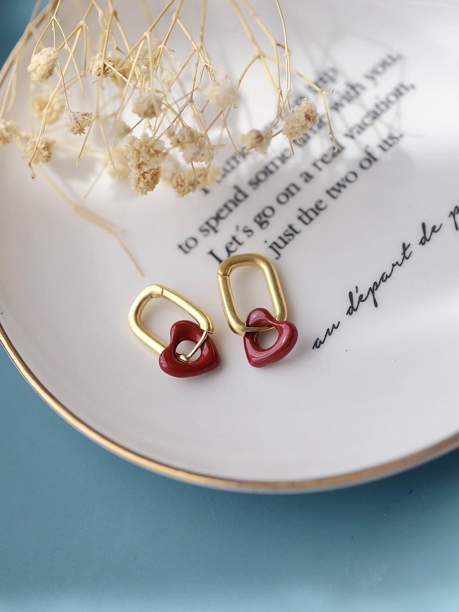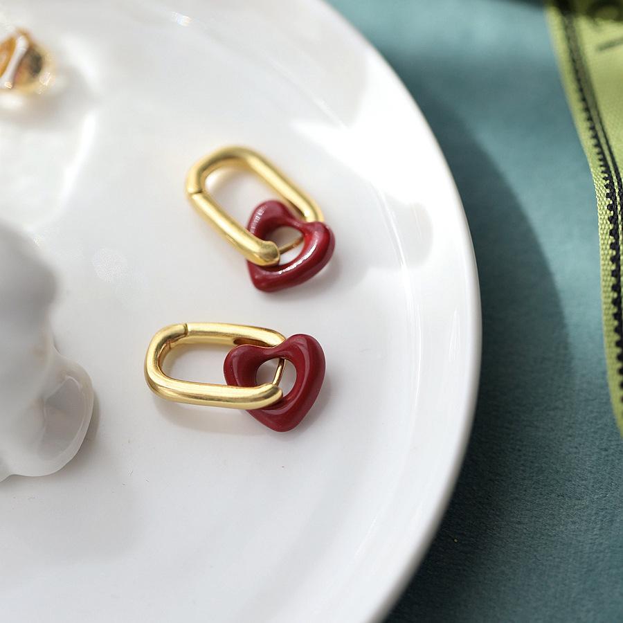 Compra Pendientes rojos retro franceses de amor para mujer, nueva moda 2022, elegantes pendientes coreanos de celebridades de Internet de alta gama que combinan con todo. al por mayor en Joom.pro