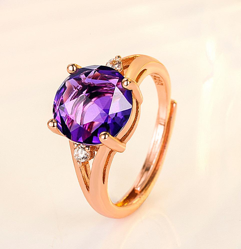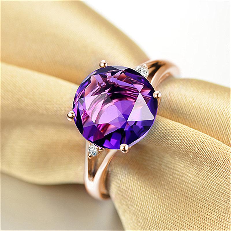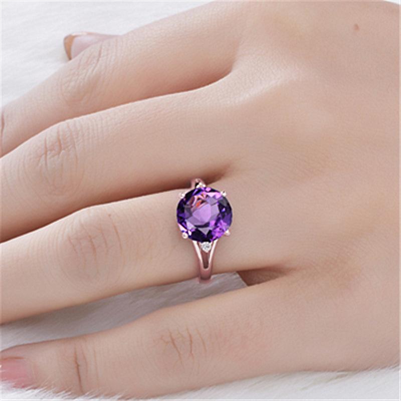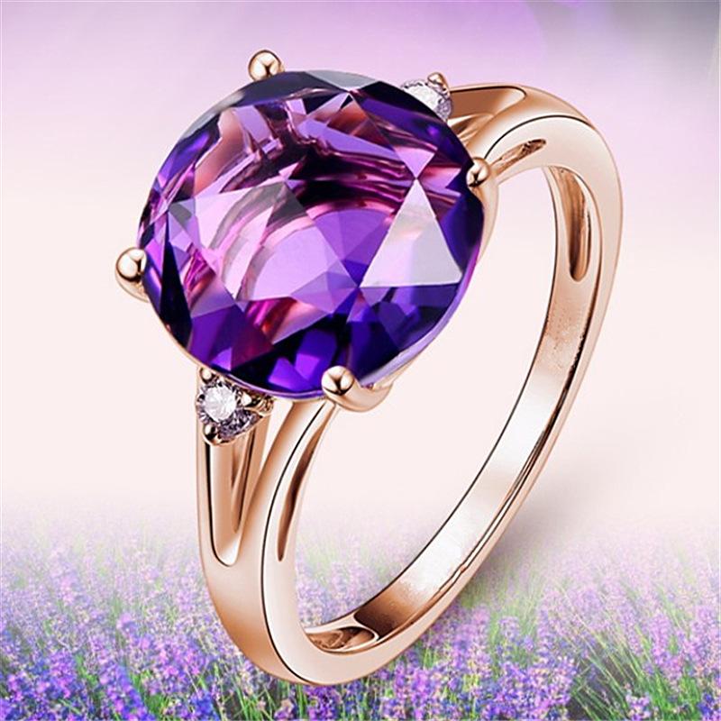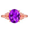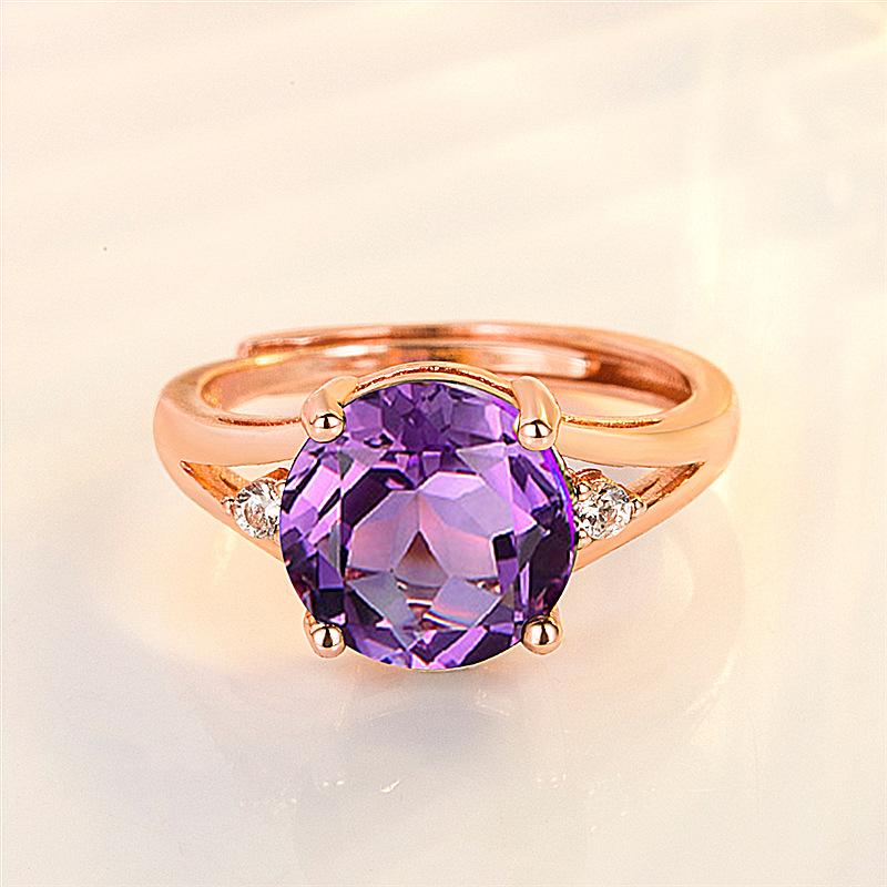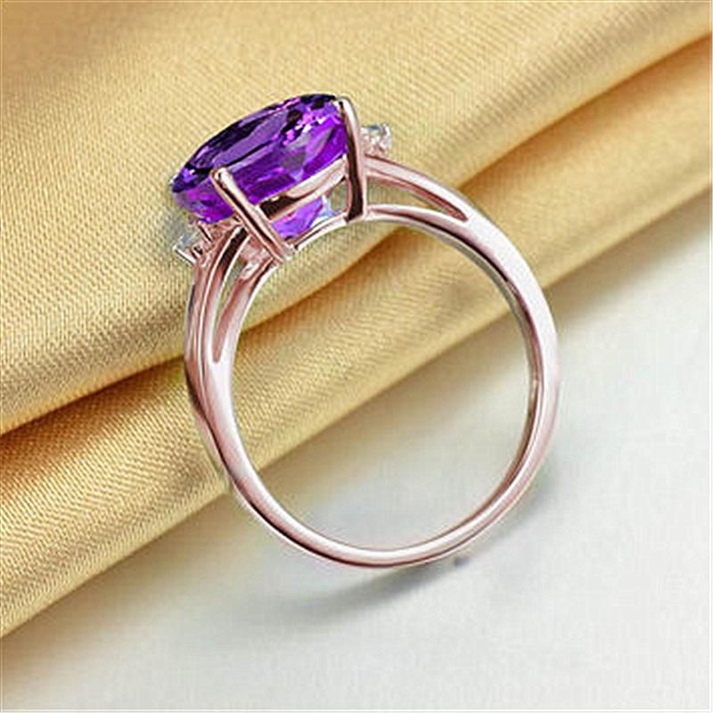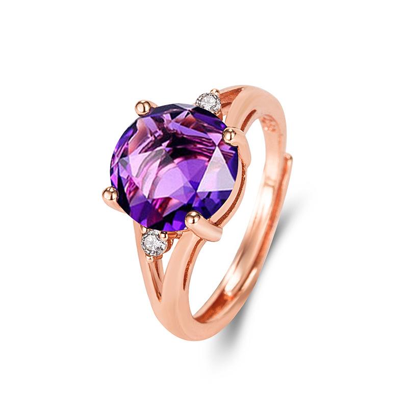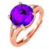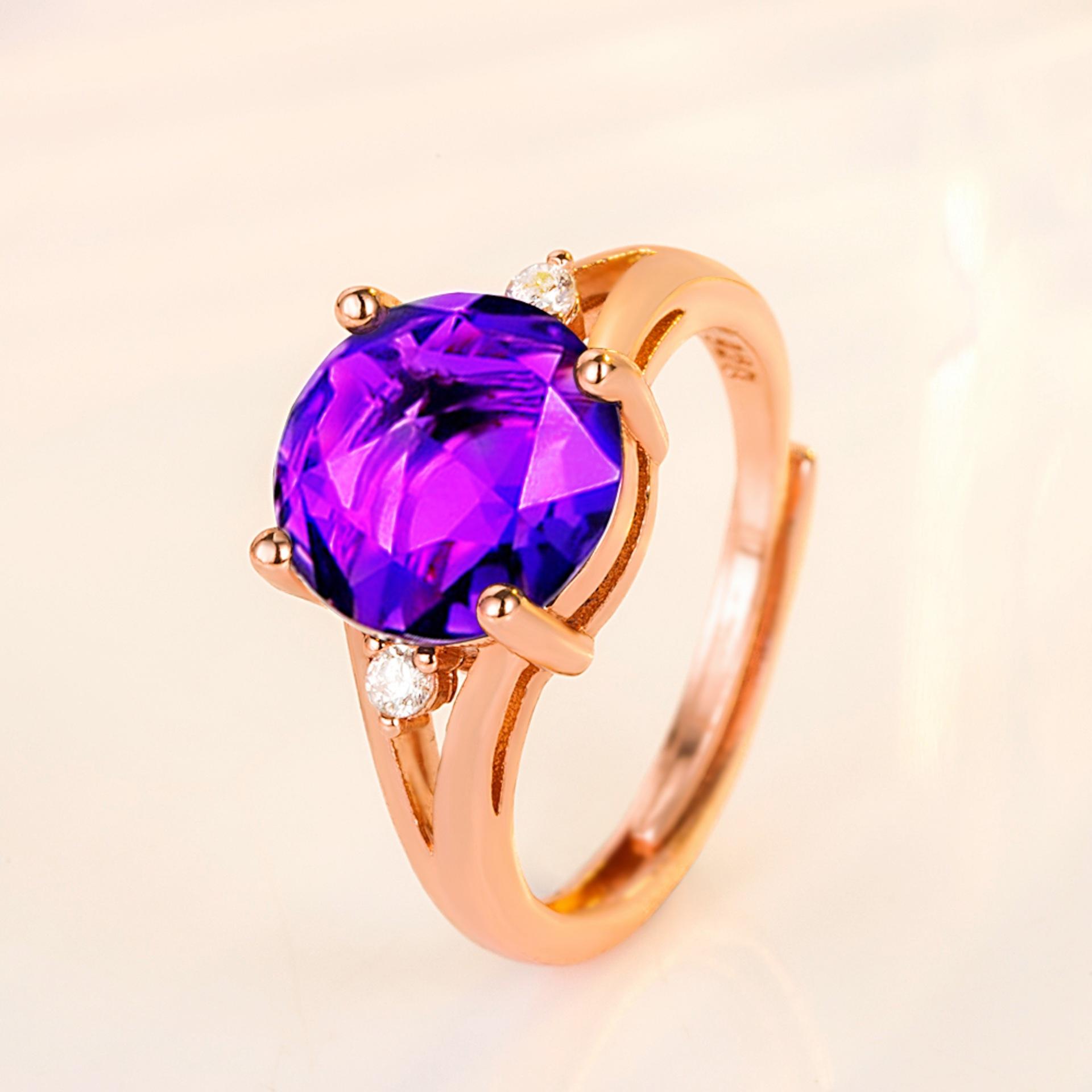 Anillo de amatista con diamante redondo violeta bañado en oro rosa de 18 quilates. Romántico y elegante anillo de amor morado.