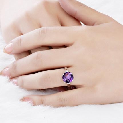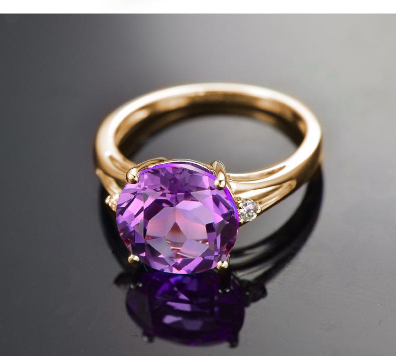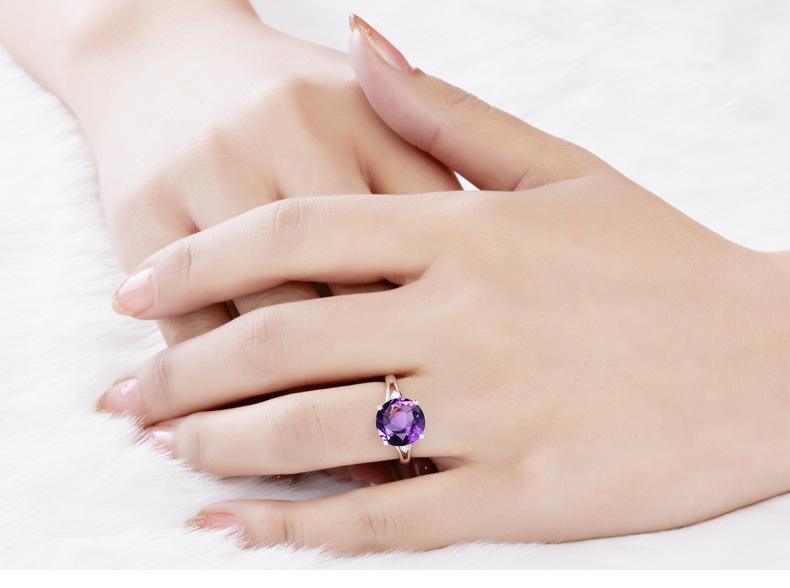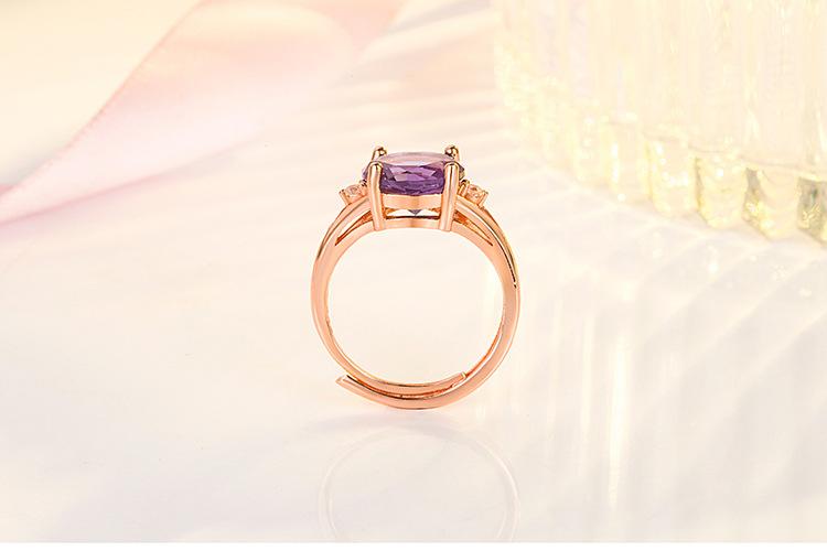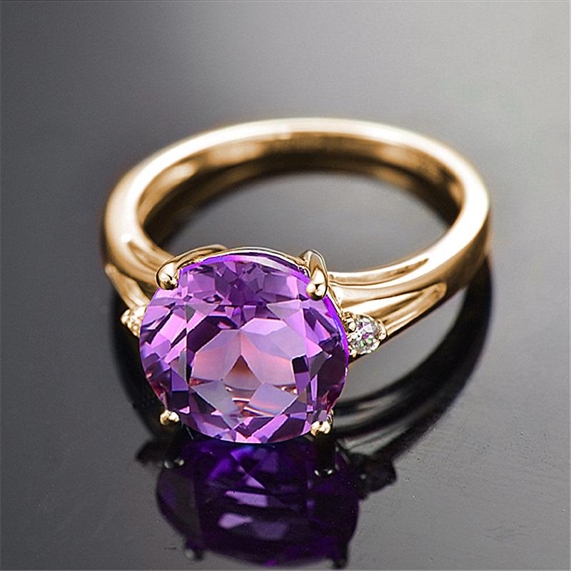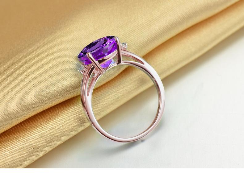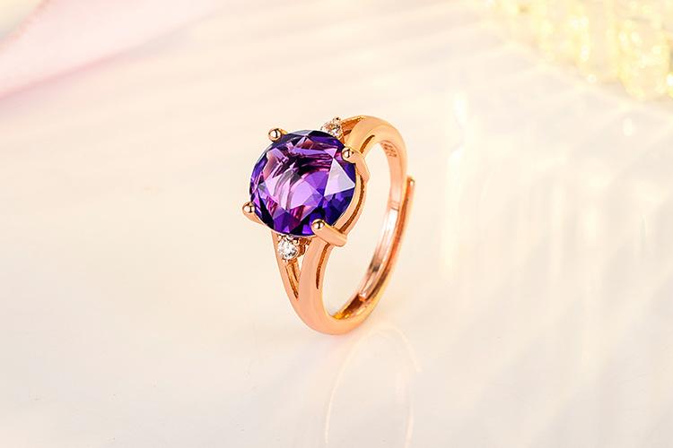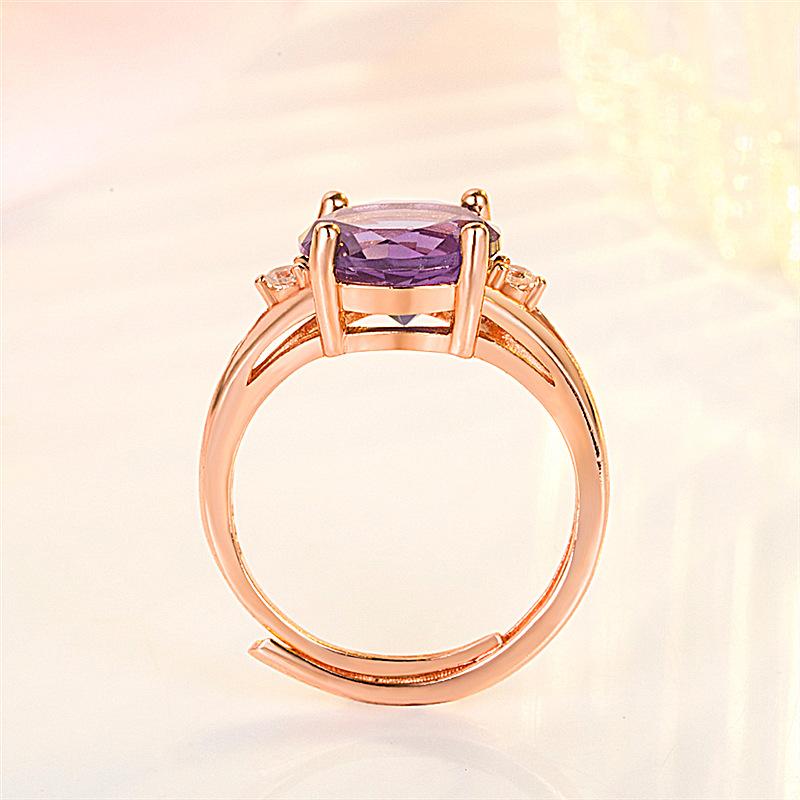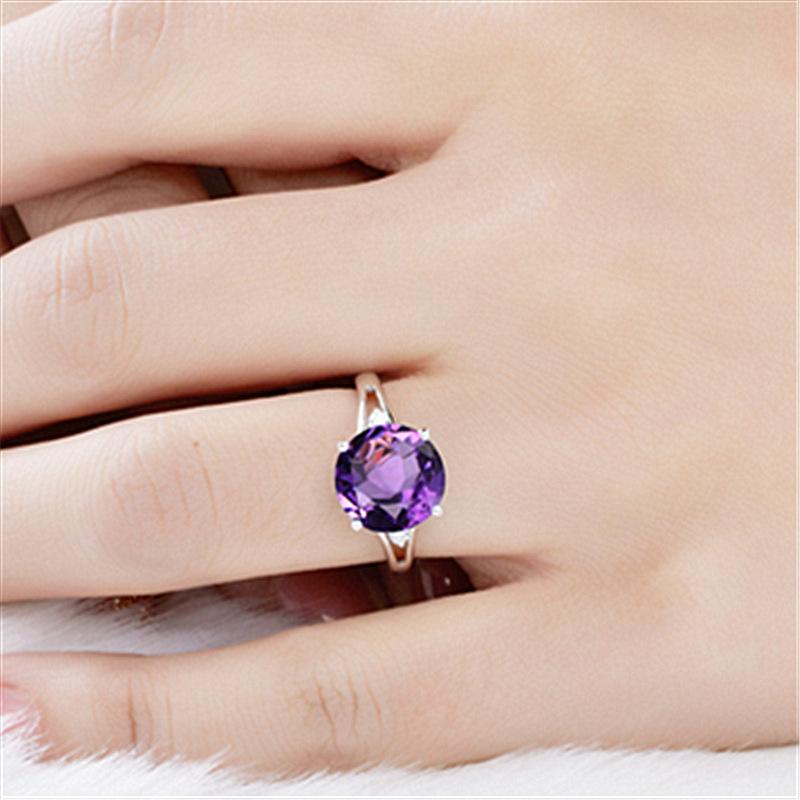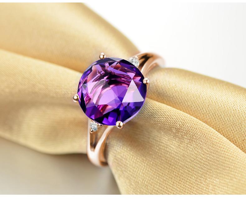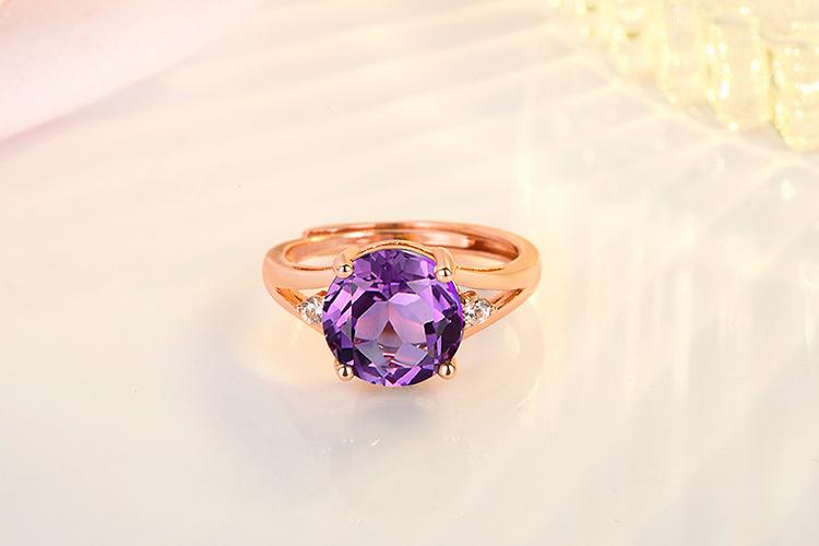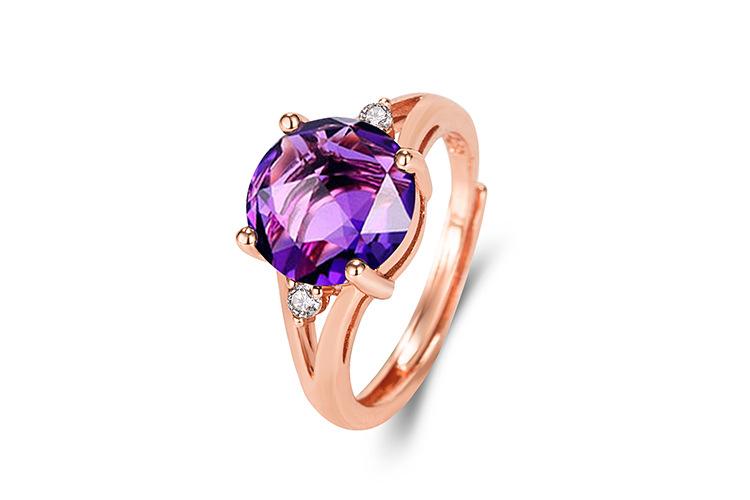 Anillo de amatista con diamante redondo violeta bañado en oro rosa de 18 quilates. Romántico y elegante anillo de amor morado.