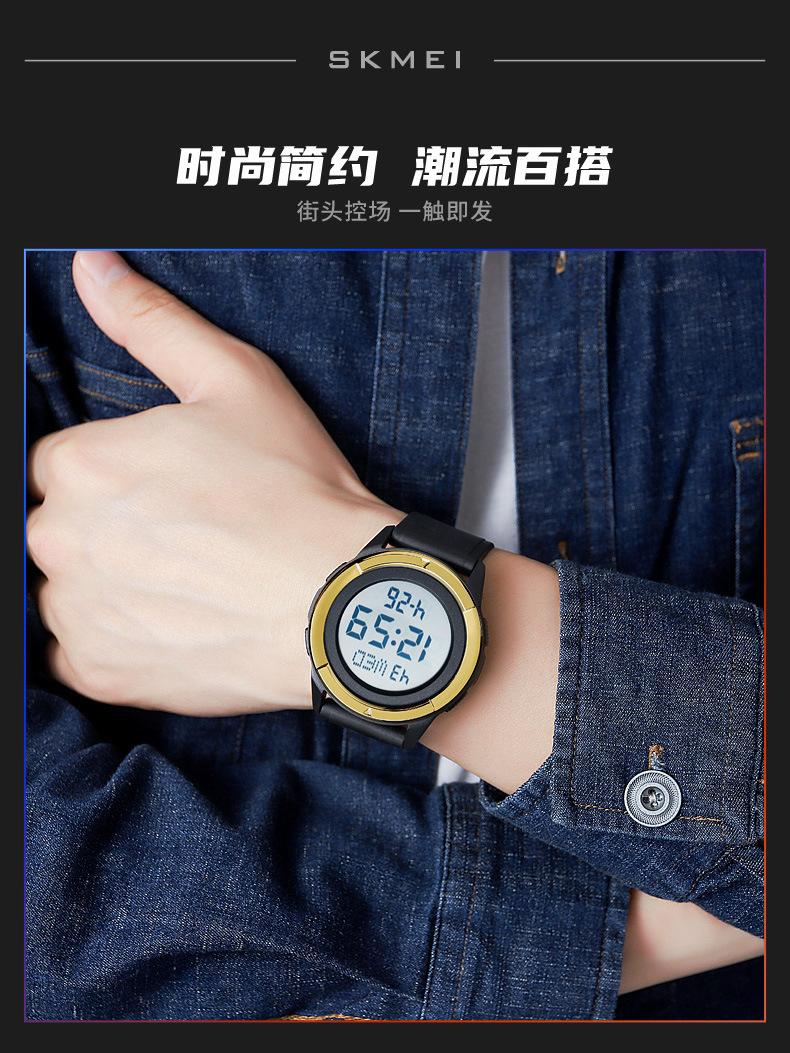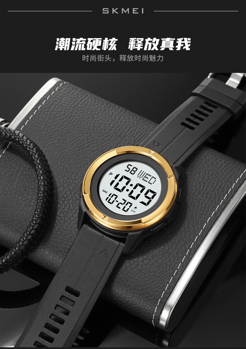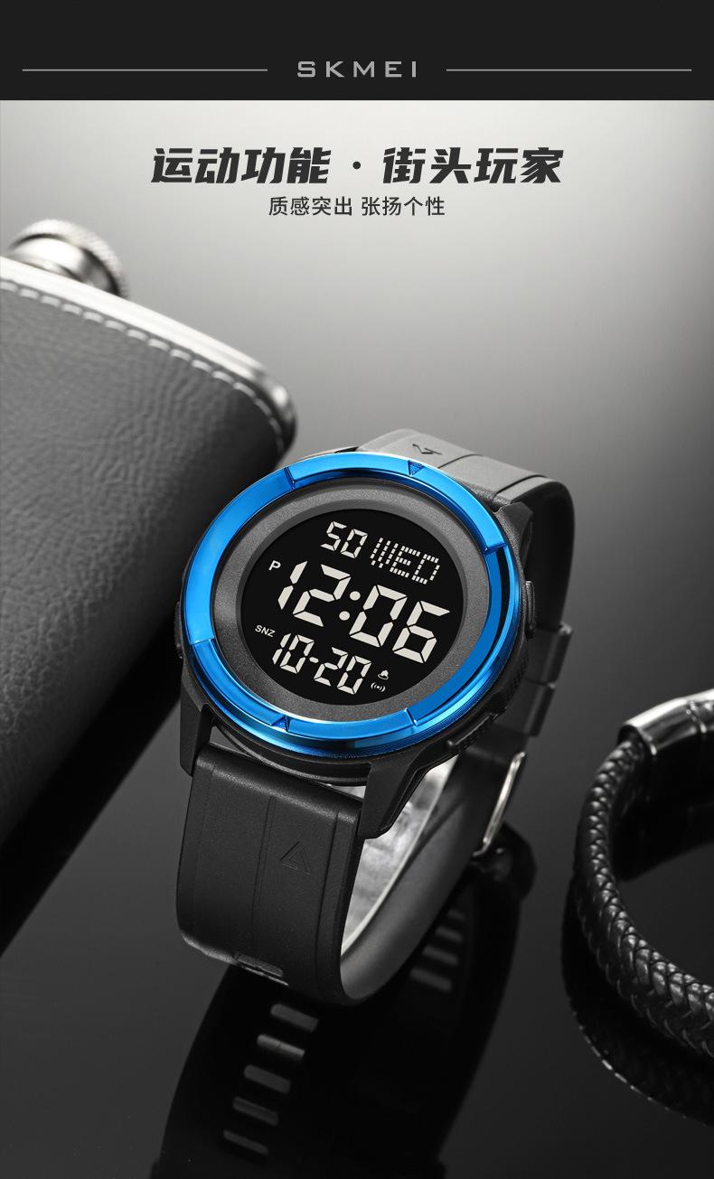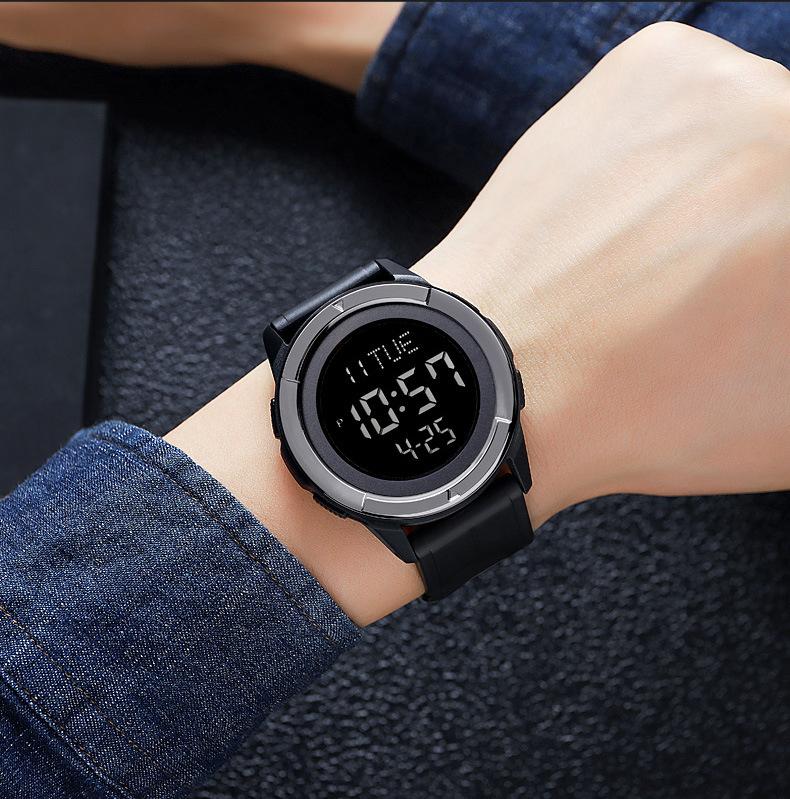 Reloj electrónico multifuncional de doble hora Skmei de pantalla digital simple, reloj electrónico de moda juvenil deportiva con correa impermeable