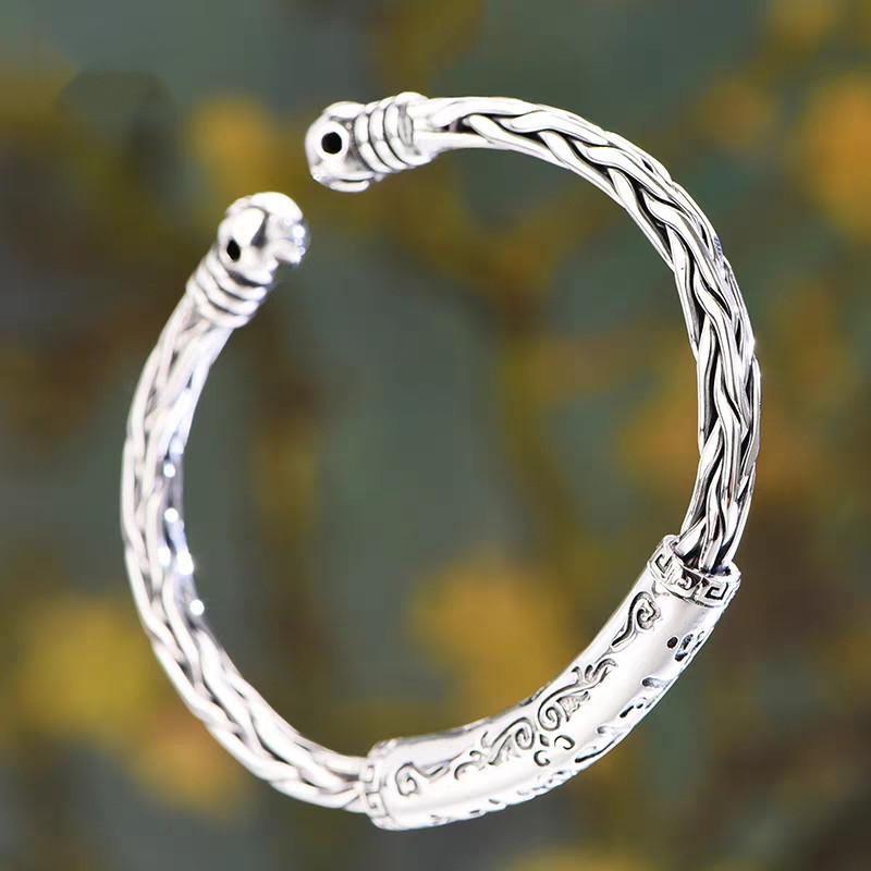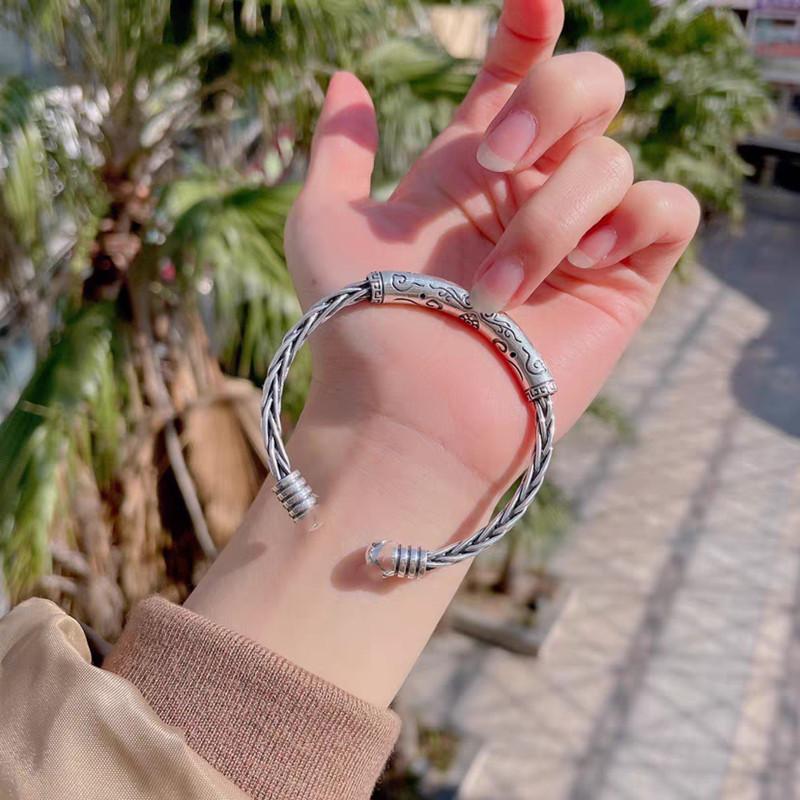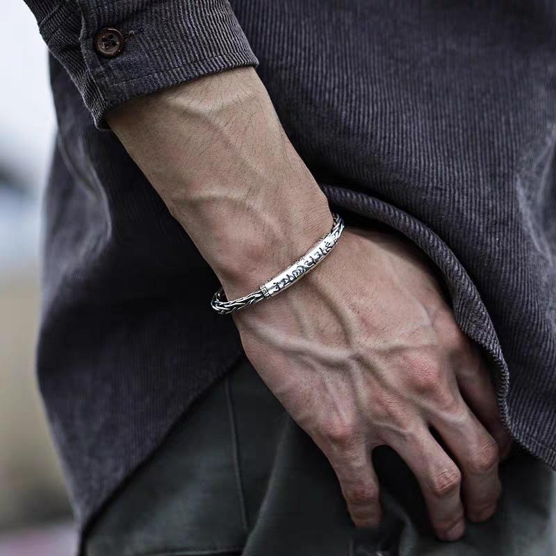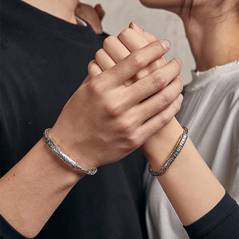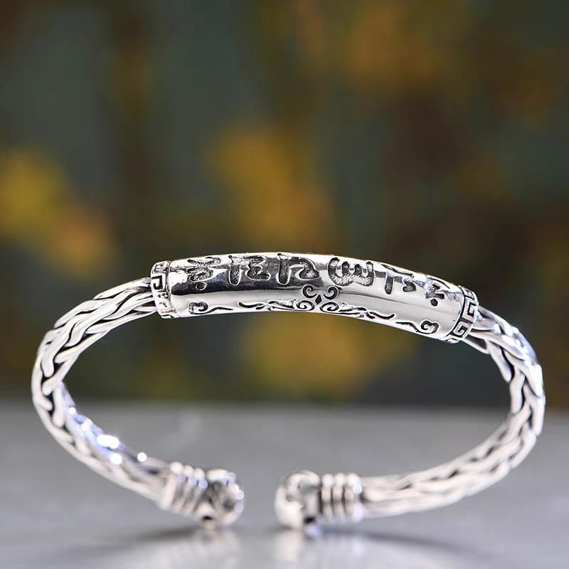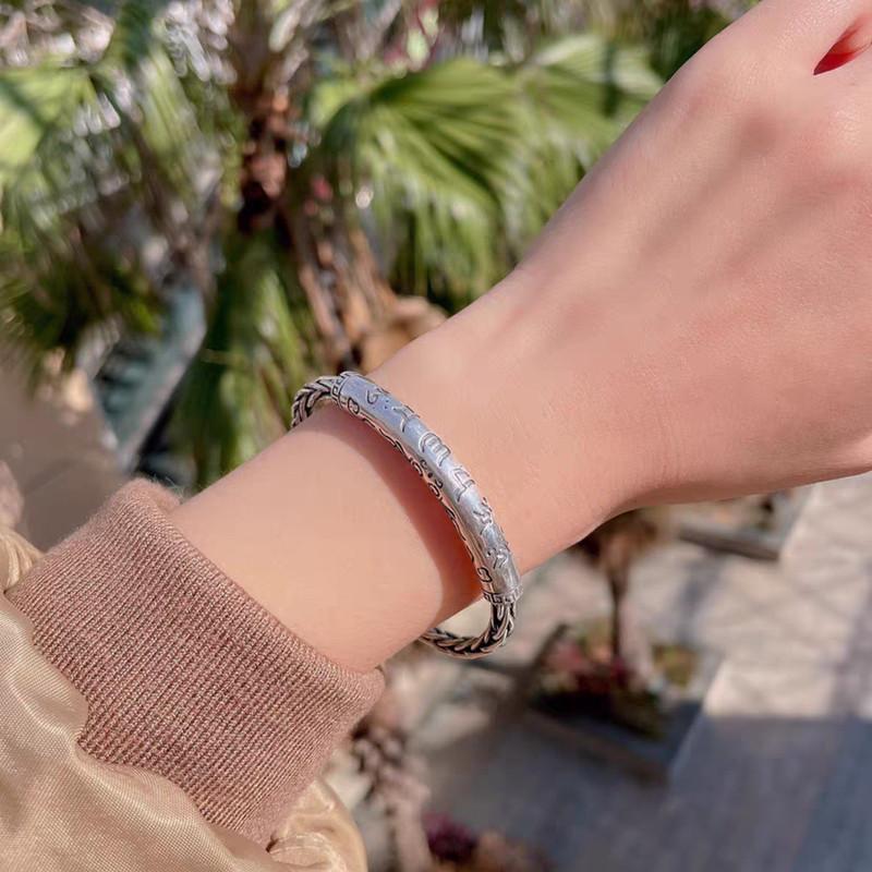 Pulsera de Proverbios de Seis Caracteres con Voz Temblorosa en Vivo Cobre Plateado Plata Pulsera Torcida Sánscrita de Moda Retro para Pareja de Hombres y Mujeres Joyería
