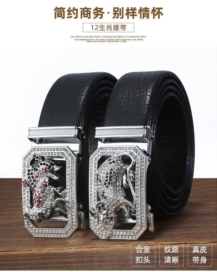 Cinturón del zodiaco para hombre, de piel de vaca, con hebilla automática, para negocios, regalo de cuero, informal, tipo Joker, cadena para la cintura, venta al por mayor