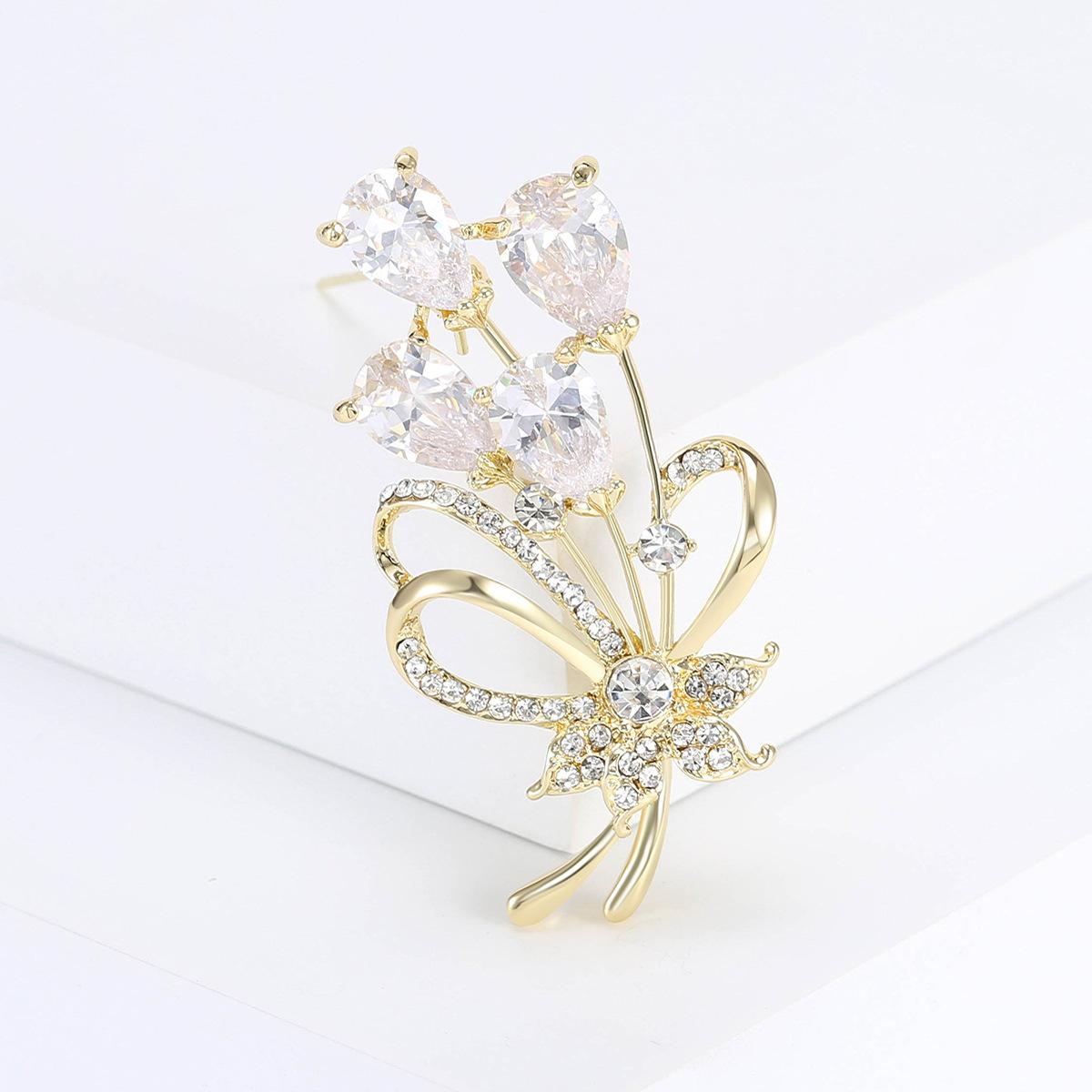 Broche de ramo de circonitas de cristal elegante y ligero de alta calidad, accesorio femenino, alfiler de ramillete, joyería, accesorios de ropa
