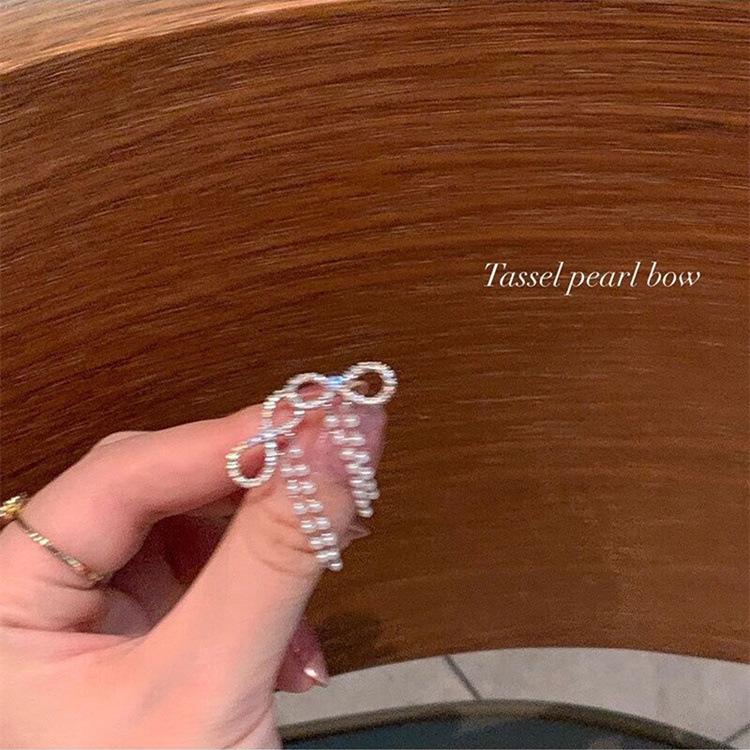 Pendientes de borla de perla con lazo de plata S925, diseño de nicho de circonita con microincrustaciones de aguja de plata, ligeros y dulces.