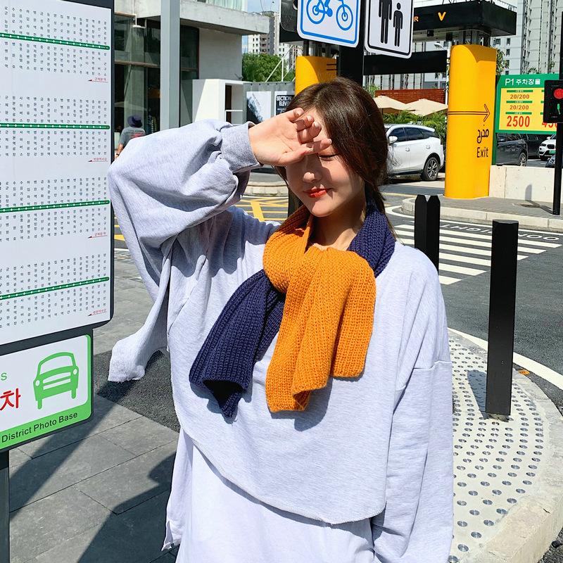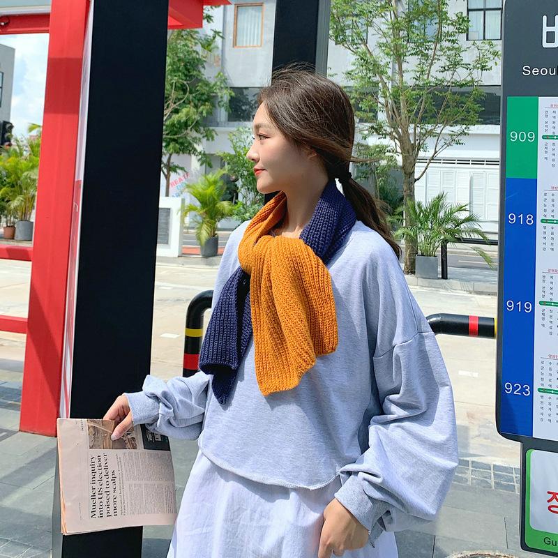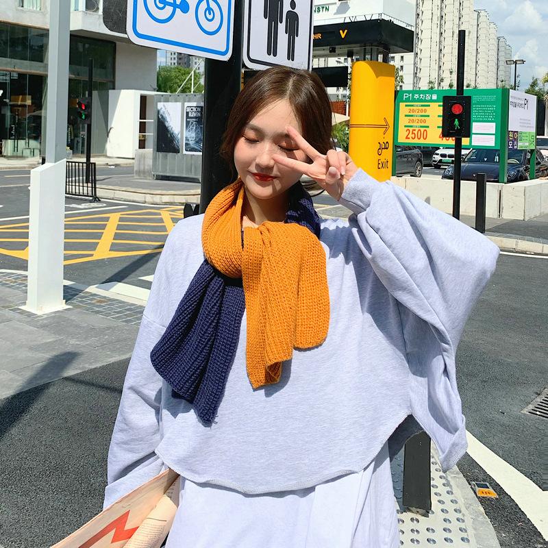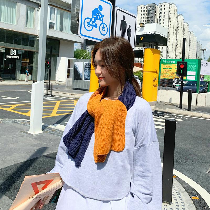 Muy simple, artístico, elegante y hermoso, una bufanda de lana con bloques de color